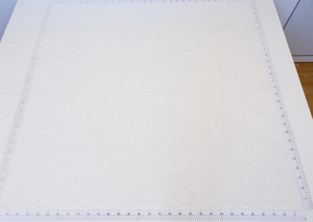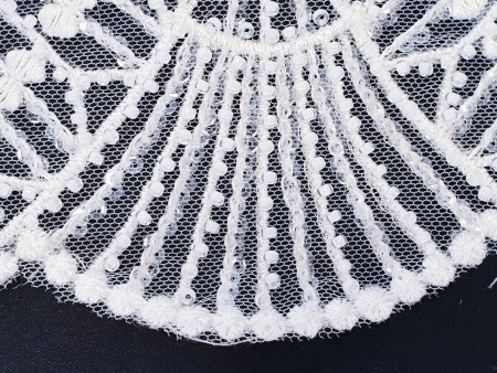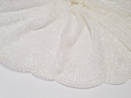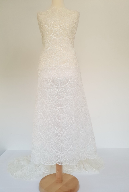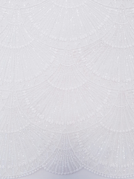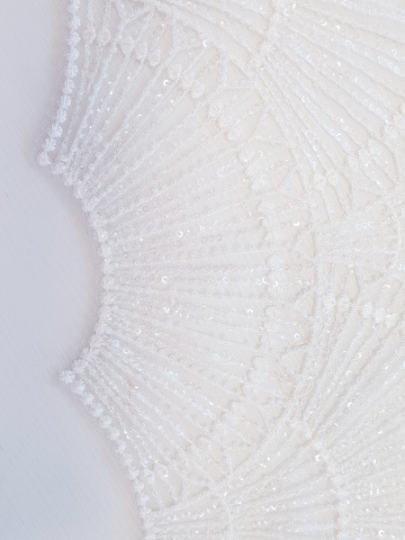 Broderie ivory cu siraguri din margelute si paiete transparente cusute atent pe o baza din bumbac.