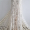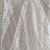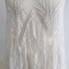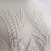 Broderie ivoire realizata manual Maya, accesorizata cu micropaiete transparente si ivoire si margele tubulare si rotunde ivoire, cusute pe tulle in acelasi ton cu broderia, usor elastic.