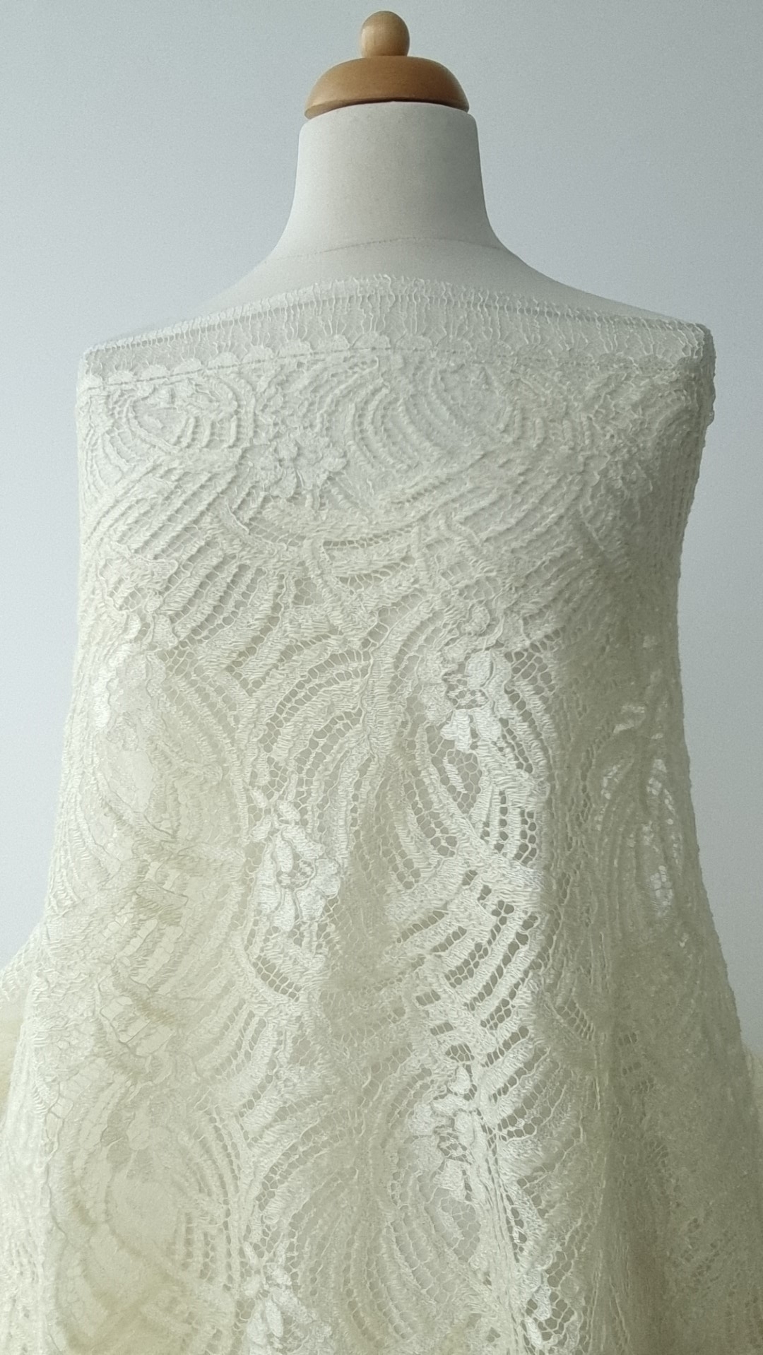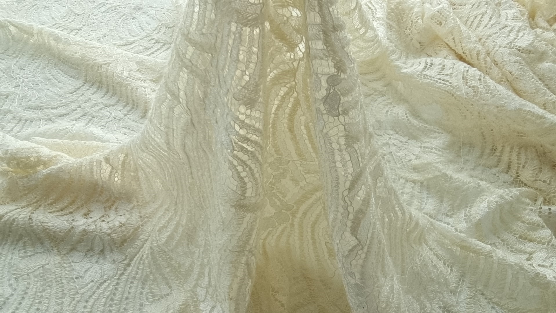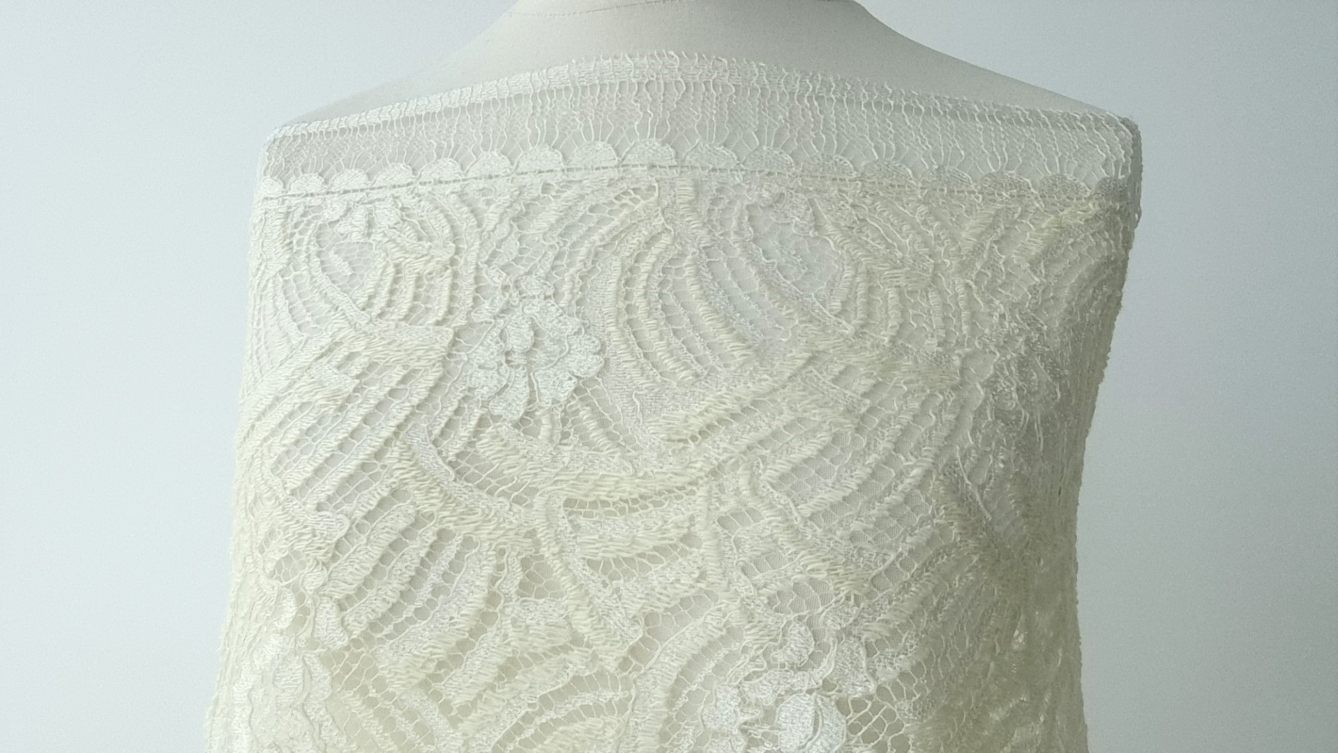 Dantela frantuzeasca cu lana ivoire Solstiss, recunoscuta si apreciata de cele mai prestigioase nume din lumea modei.