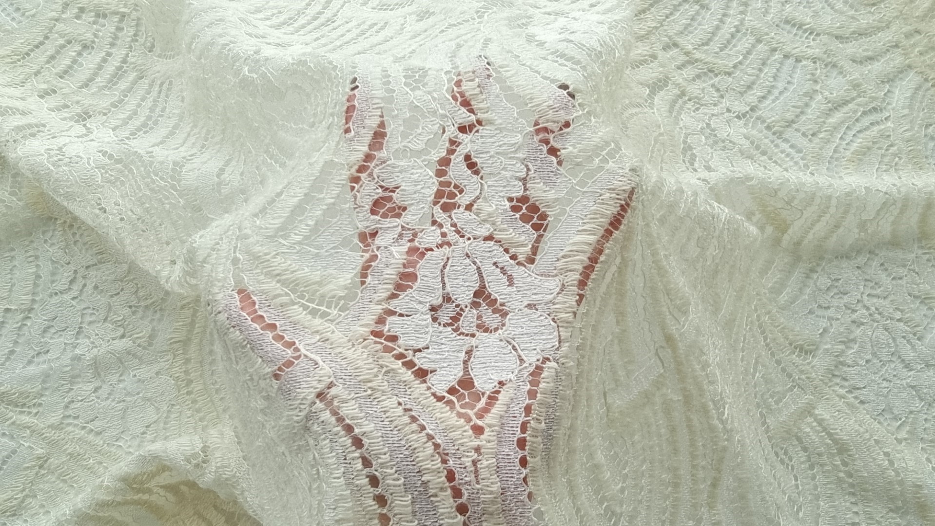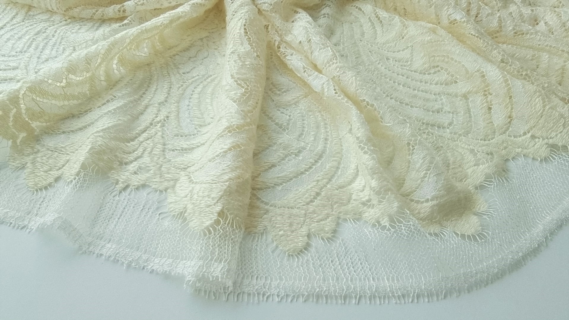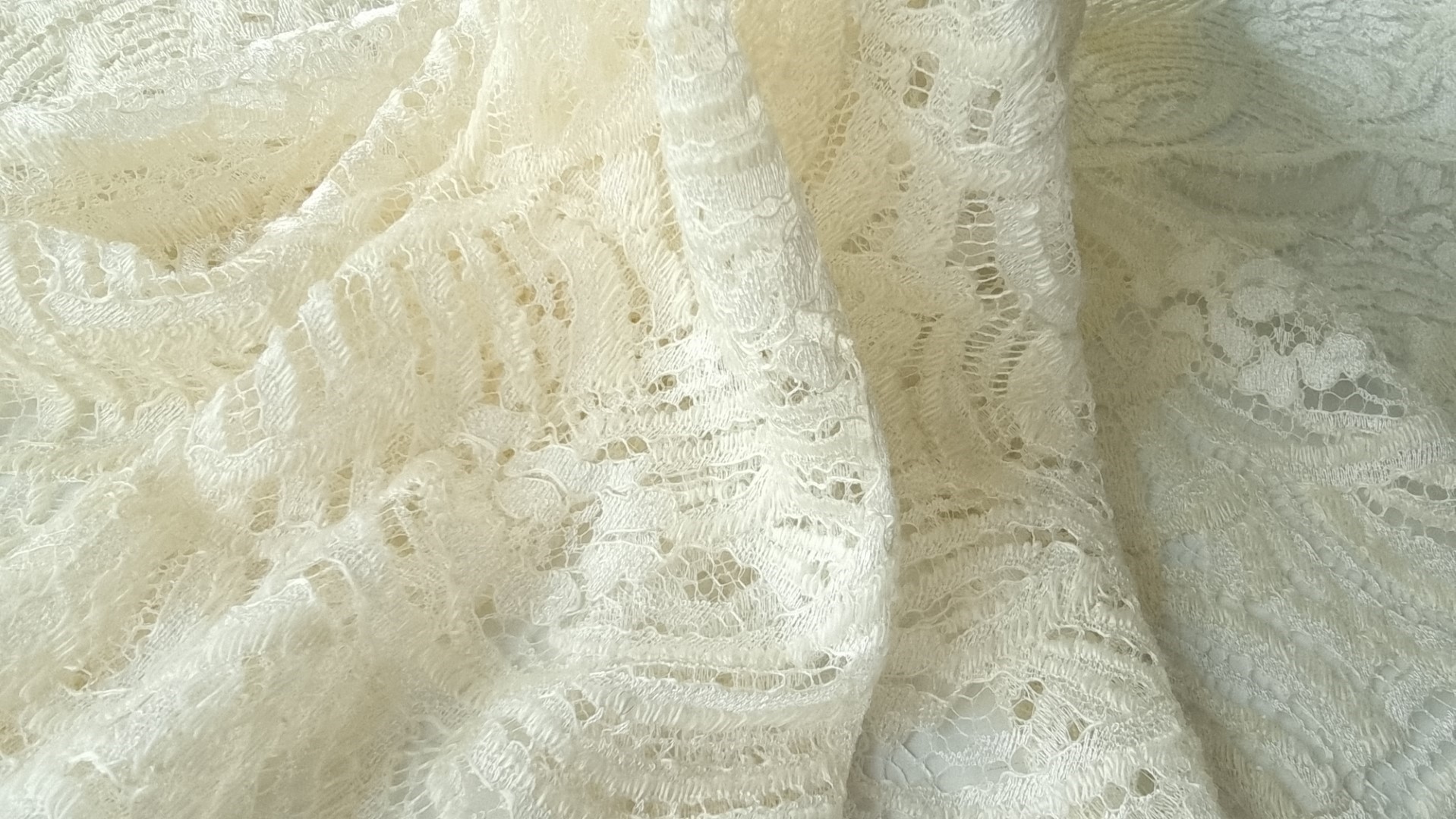 Dantela frantuzeasca cu lana ivoire Solstiss, recunoscuta si apreciata de cele mai prestigioase nume din lumea modei.