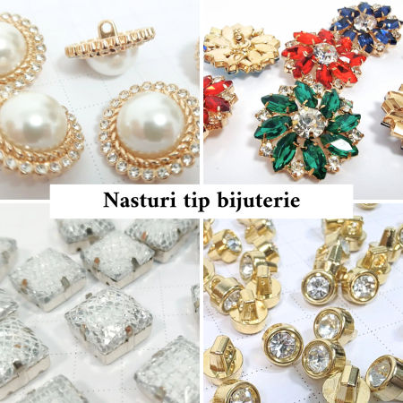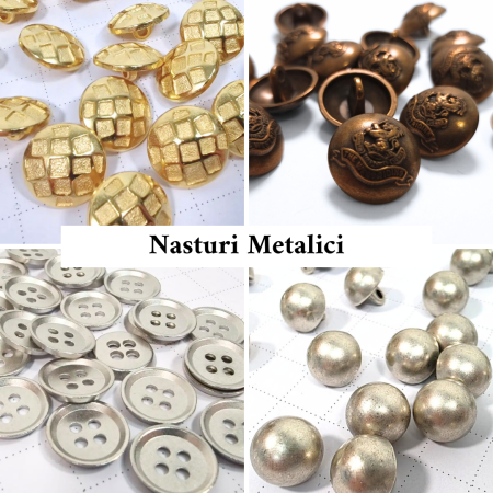Fie că îți dorești un detaliu discret sau un accent care să atragă toate privirile, aici găsești nasturi pentru toate stilurile: de la modele metalice clasice sau moderne, la nasturi tip bijuterie decorați cu cristale sau perle. Îți punem la dispoziție capse elegante pentru închideri practice și nasturi de inspirație internațională, semnați de designeri renumiți. Modelele variază de la nasturi cu prindere cu picior, cu ochiuri sau prin coasere, până la forme plate sau ușor reliefate, în designuri rotunde, ovale, pătrate și multe alte variante care completează perfect proiectele vestimentare sau ornamentale.