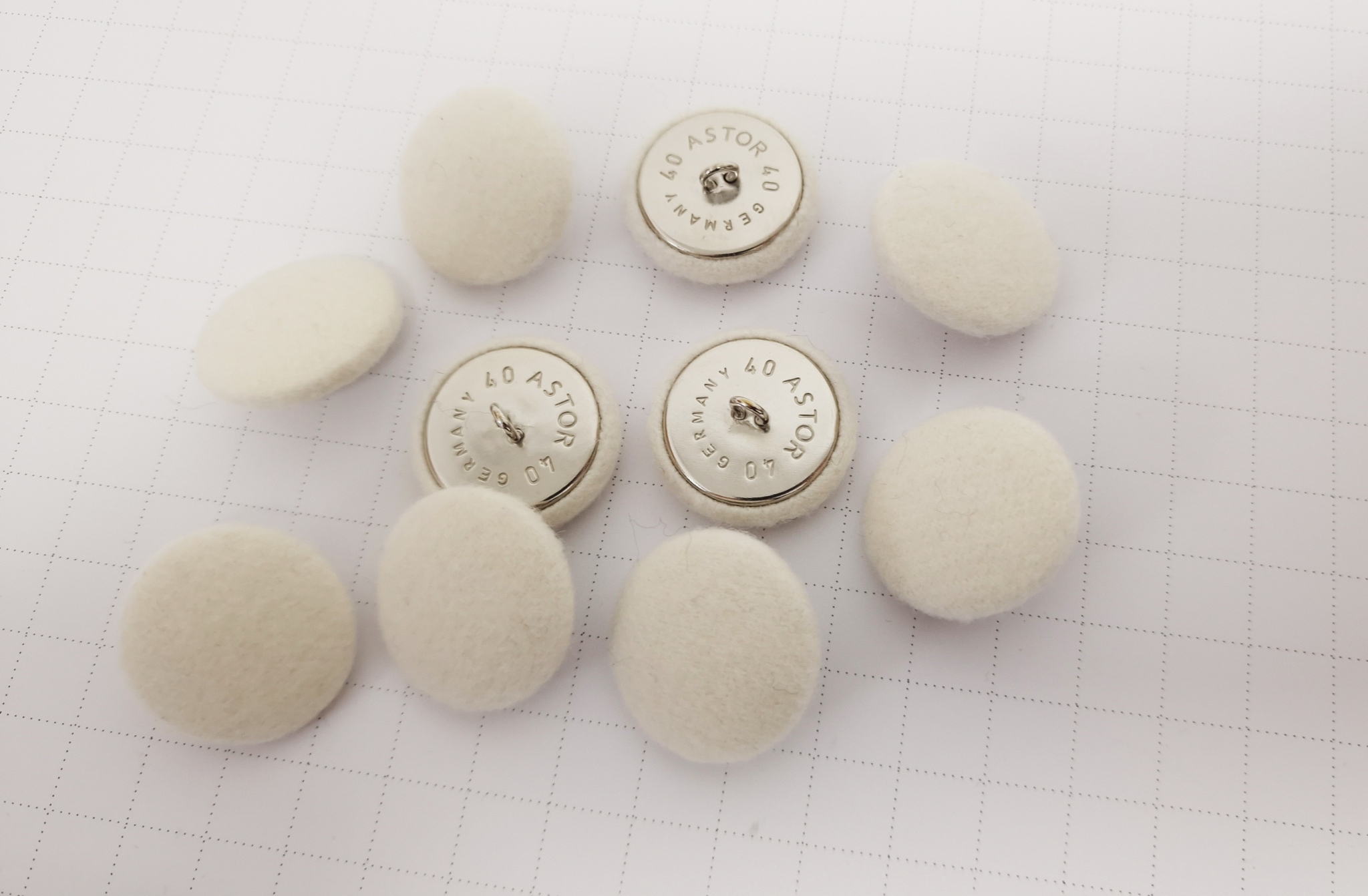 Nasturi imbracati Ø25mm – 193N – set 5buc. , prindere cu picior metalic , potriviți pentru închiderea sau accesorizarea articolelor vestimentare ce adaugă un element de design prin culoare, material sau forma. Acest model are o eleganta aparte fiind imbracat in stofa ivory.