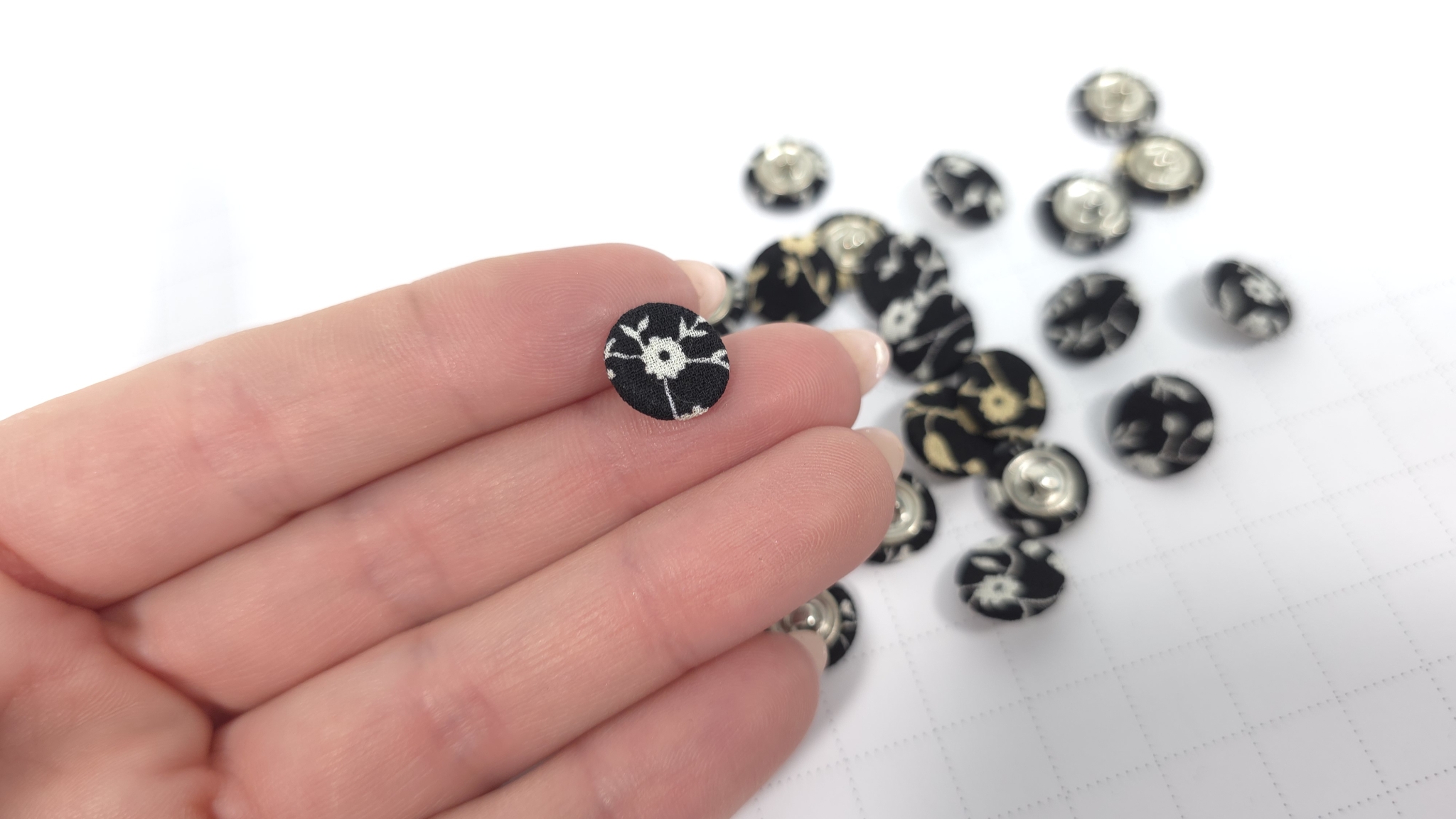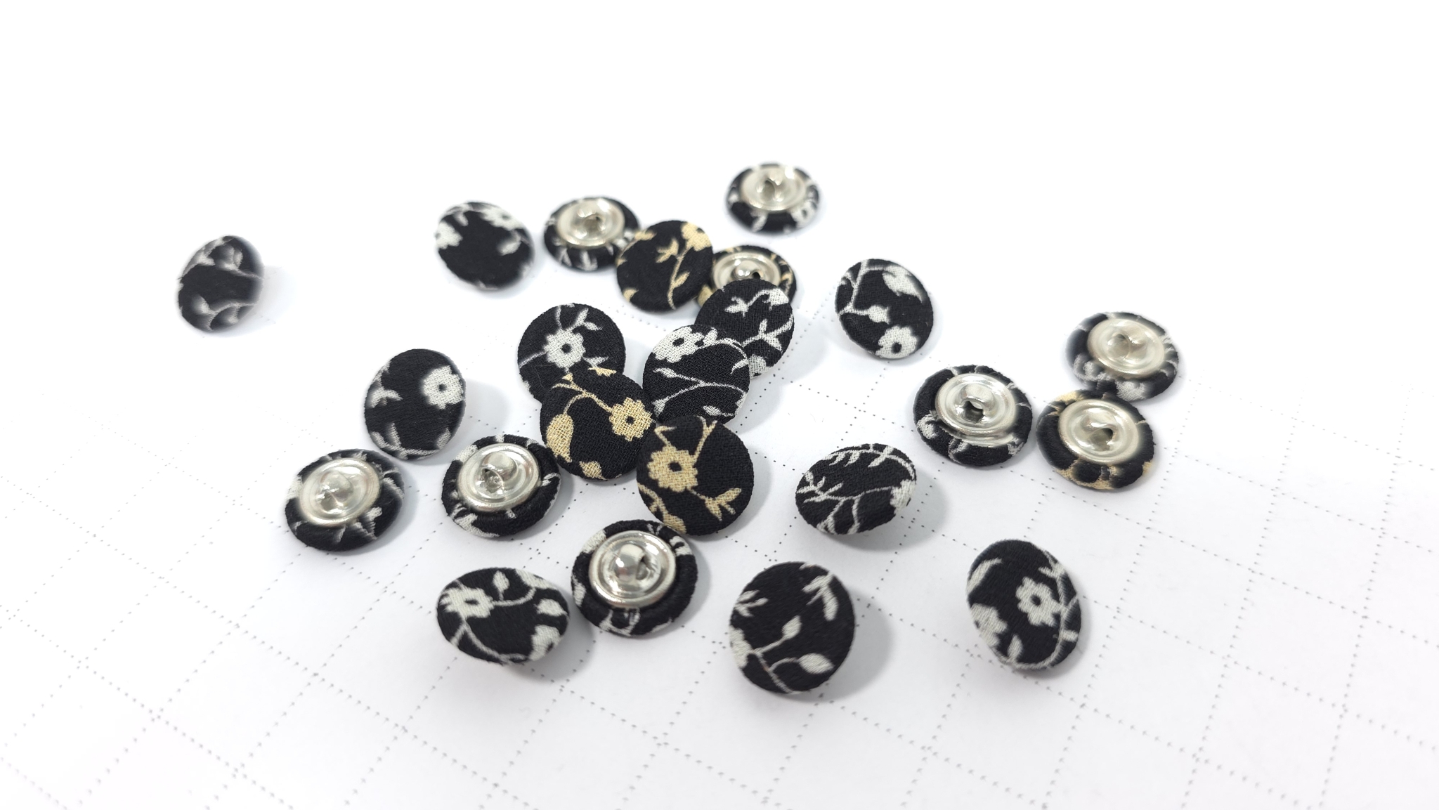 Nasturi mici imbracati Ø10mm-215N, set format din 5 bucati, potriviti pentru accesorizarea rochiilor, camasilor, bluzelor, fustelor, se aplica prin coasere.