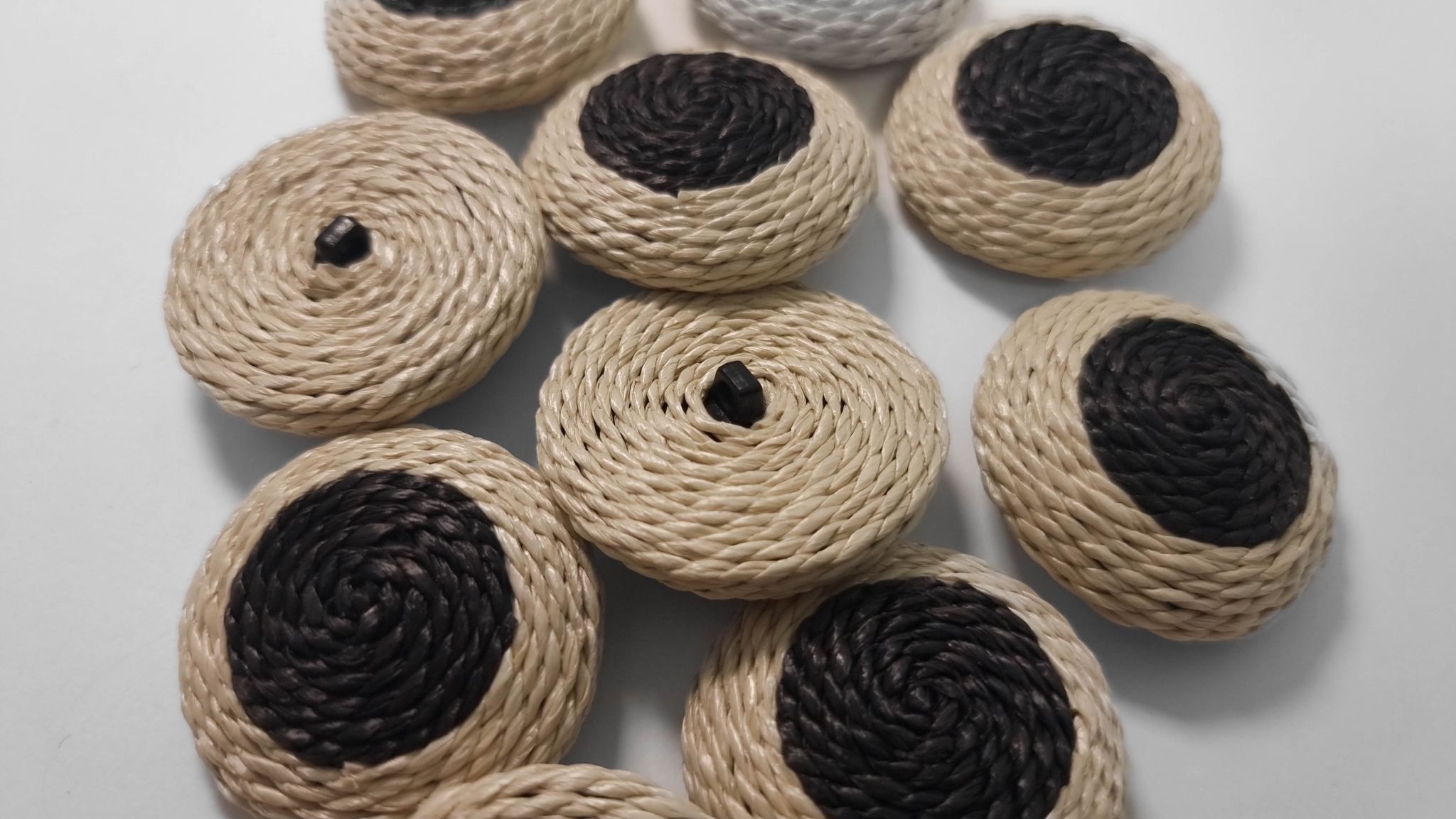 Nasturi imbracati cu rafie Ø40 mm , prindere cu picior, potriviți pentru închiderea sau accesorizarea articolelor vestimentare ce adaugă un elemente de design prin culoare, material sau forma unică.