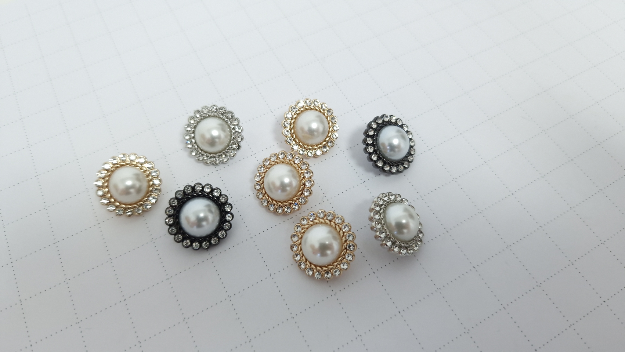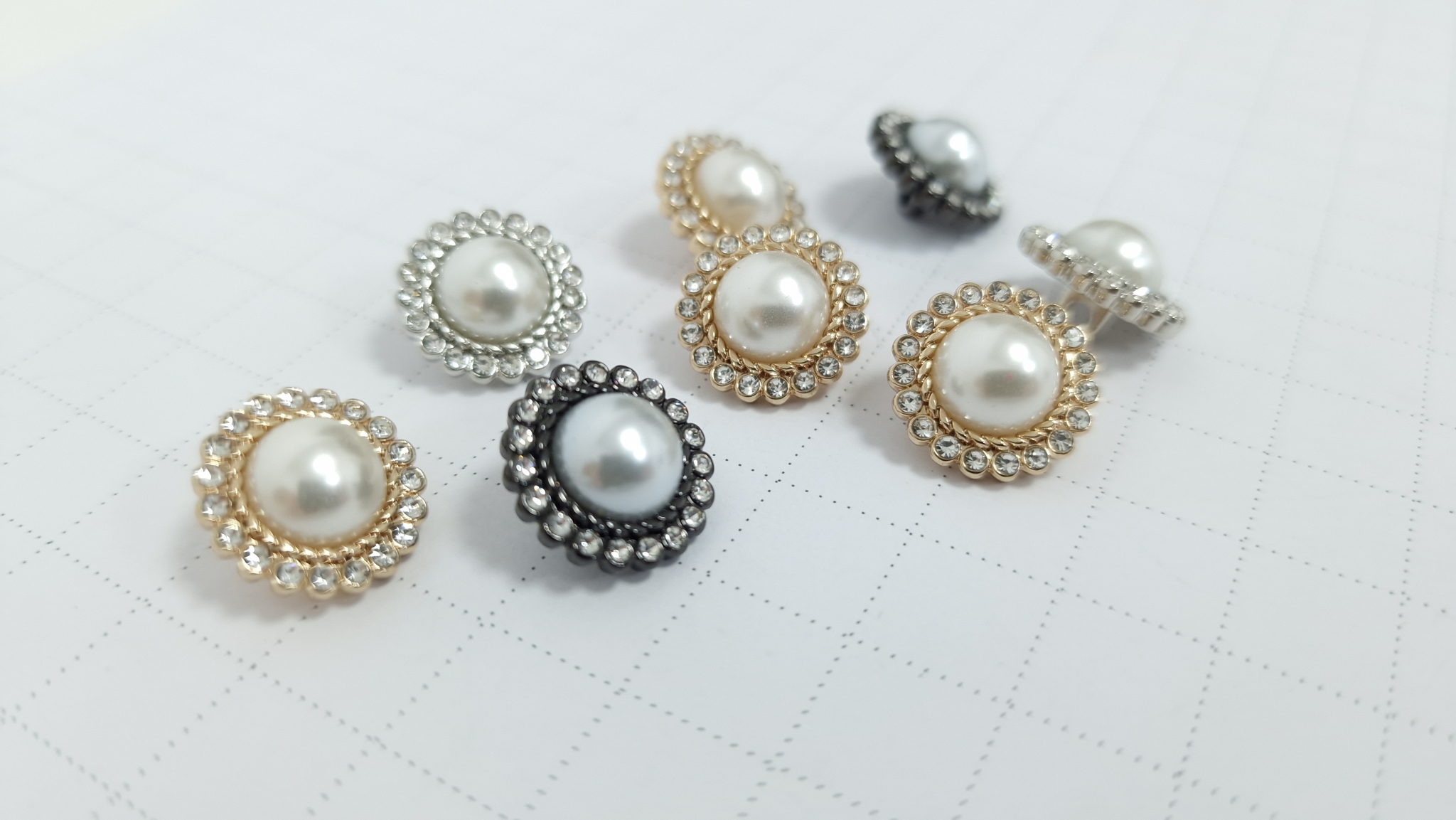 Nasturi cu perla si strasuri-15mm – prindere cu picior, perfecți pentru a adăuga un strop de strălucire rochiilor, cămășilor, bluzelor sau fustelor. Se aplică prin coasere și transformă instant orice piesă vestimentară într-una deosebită!
