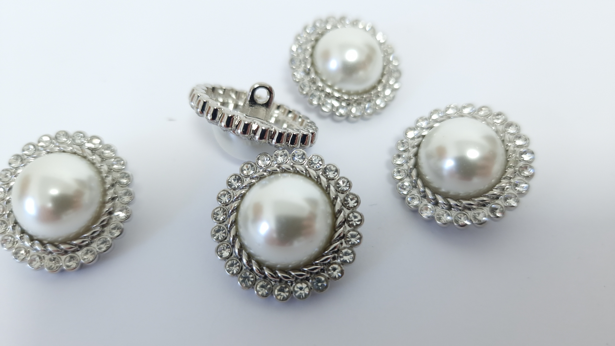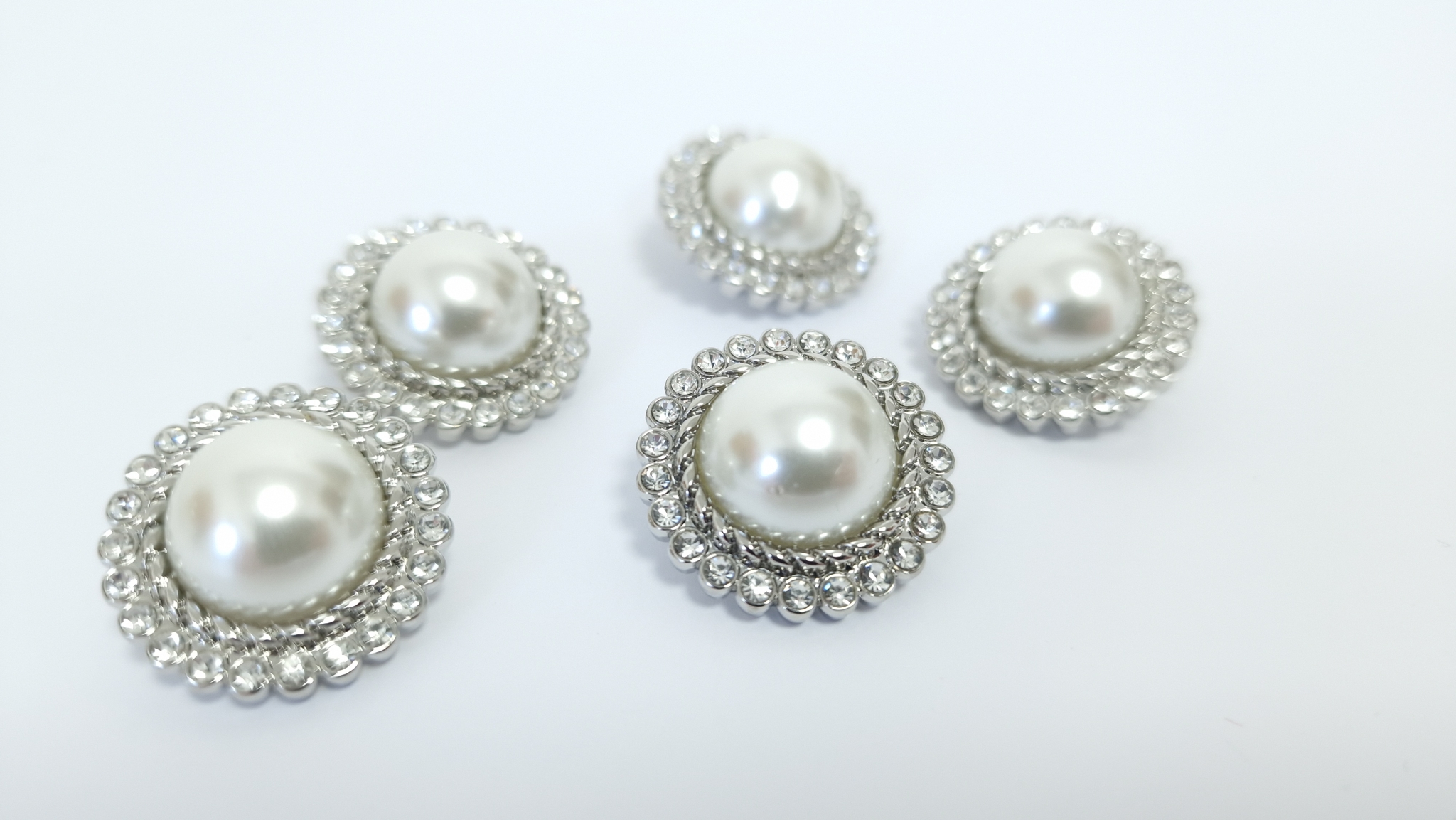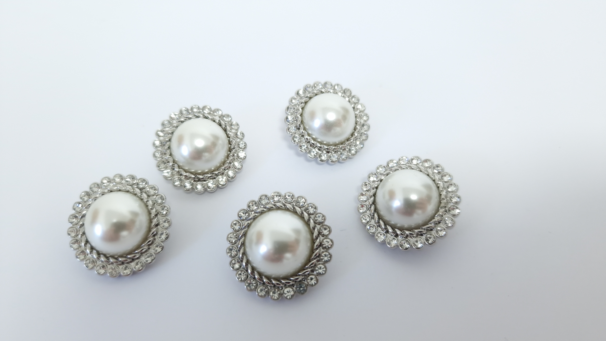Nasturi cu perla si strasuri- 23 mm- 297N –prindere cu picior, set format din 5 bucati, potriviti pentru accesorizarea rochiilor, camasilor, bluzelor, fustelor, se aplica prin coasere.