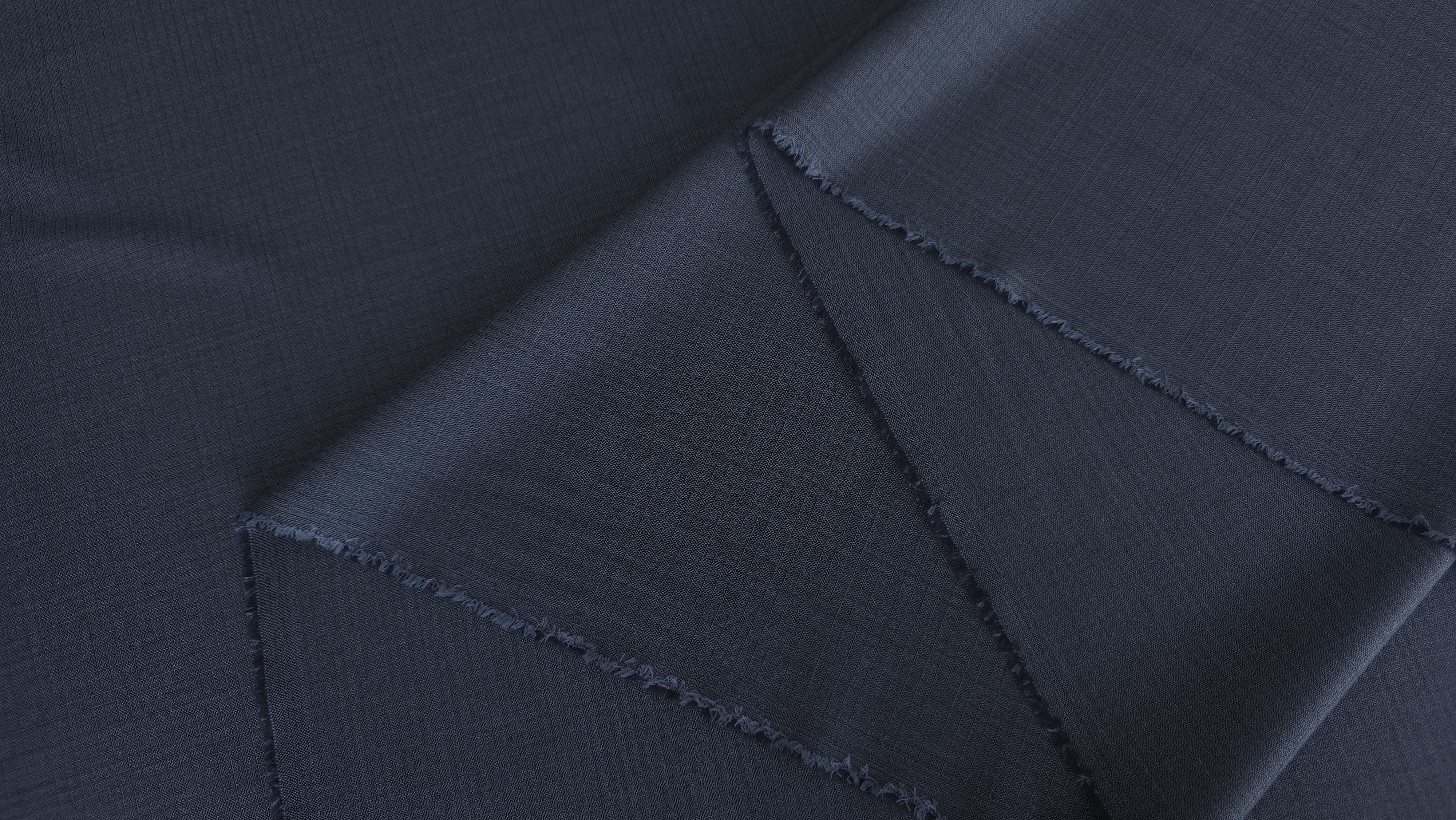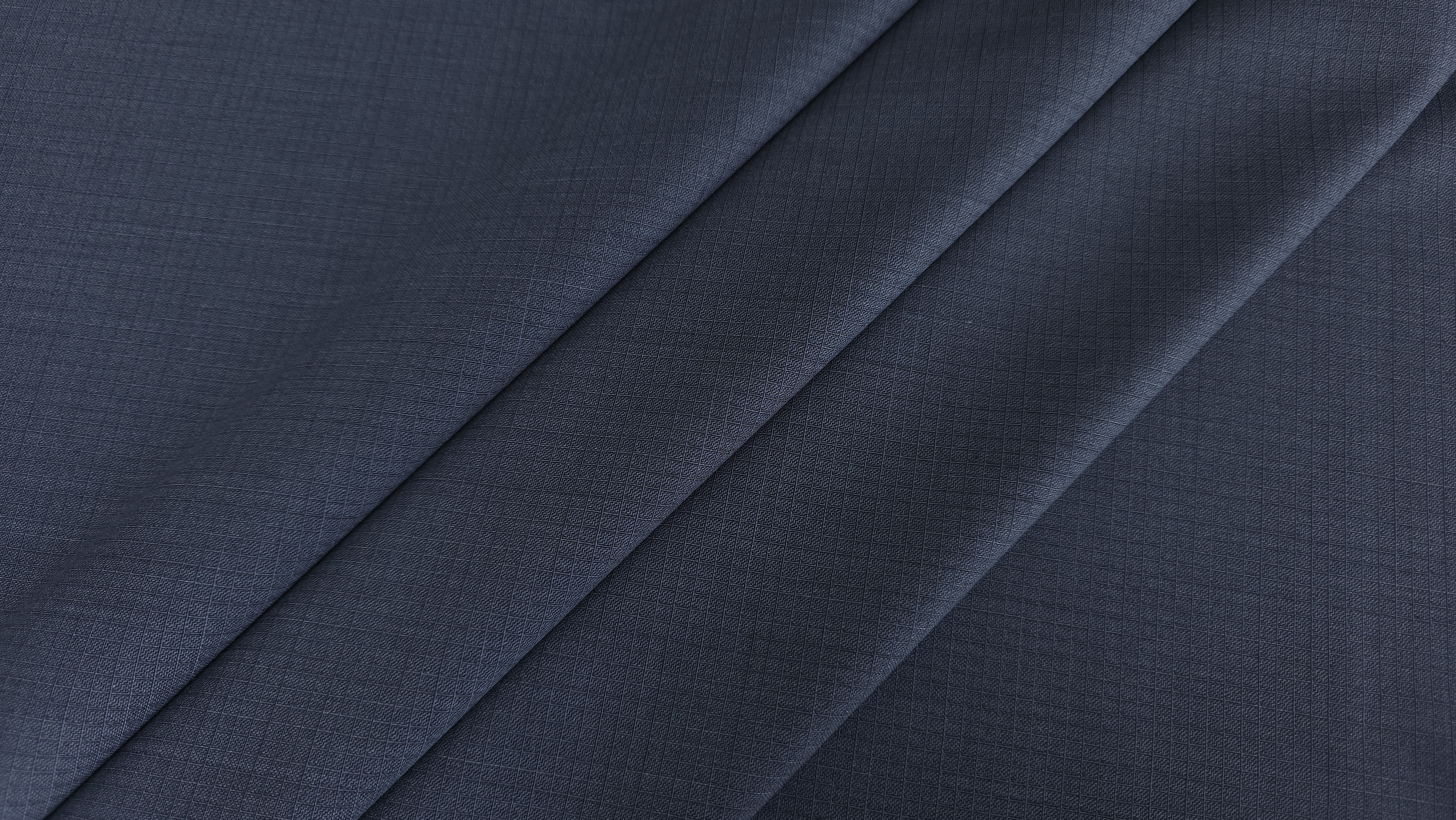 Stofă bleumarin din lână cu matase naturala, materialul are microcarouri fine. Aspectul este modern și rafinat. Țesătura este potrivită pentru piese elegante.