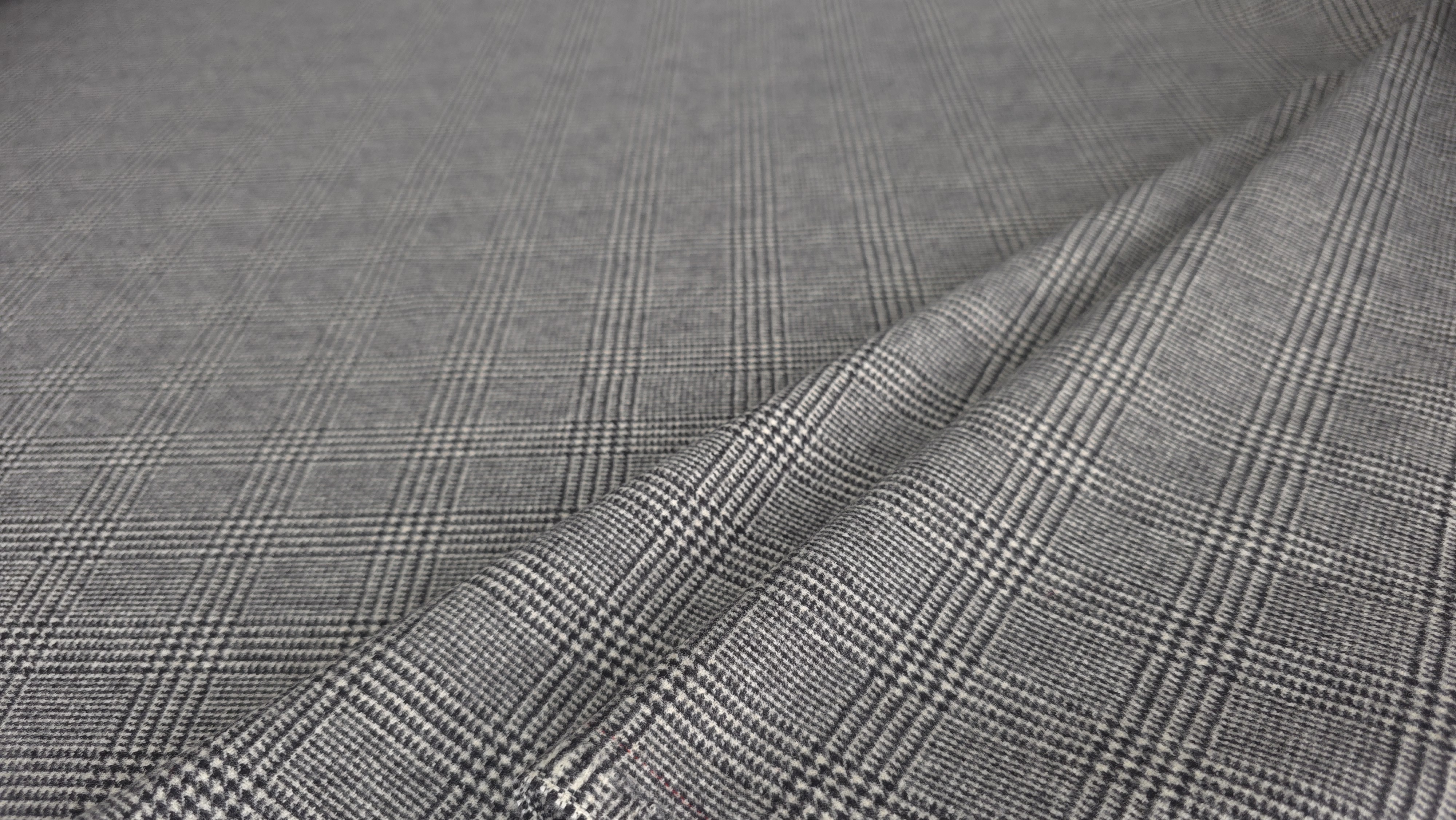 Caracteristici tehnice – Stofă gri în dungi din lână și cașmir: