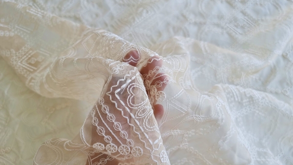 Caracteristici Organza nude din matase naturala brodata: