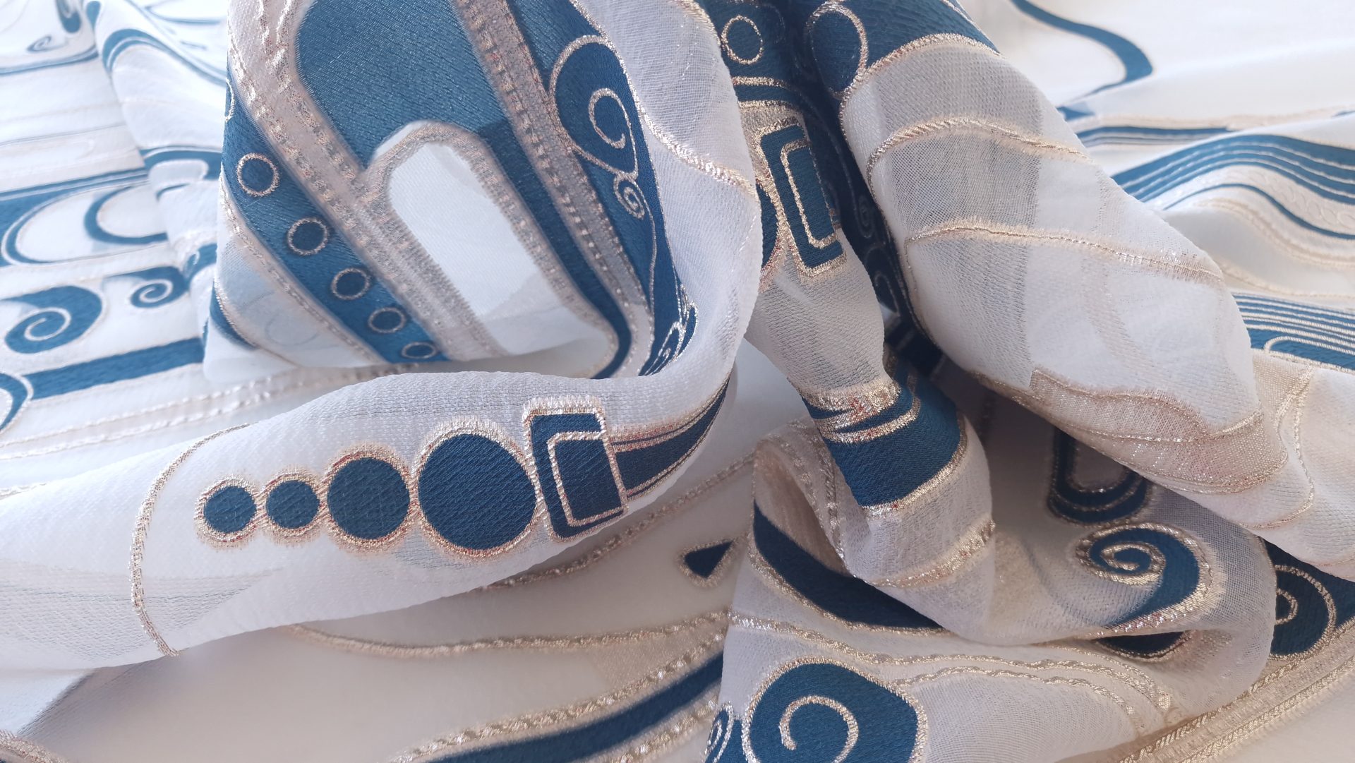 Caracteristici Organza dubla din matase naturala cu model reliefat RCAV798: