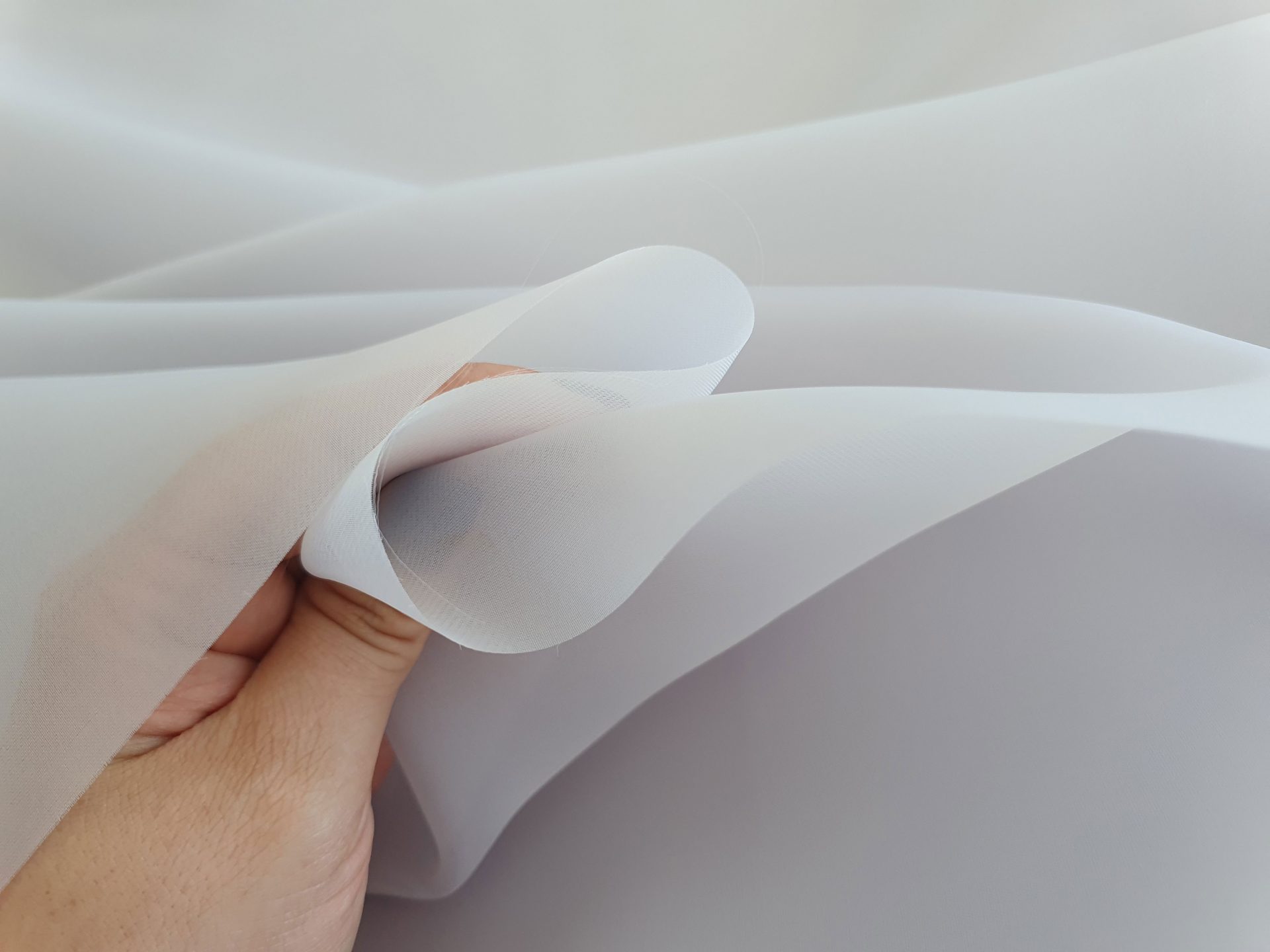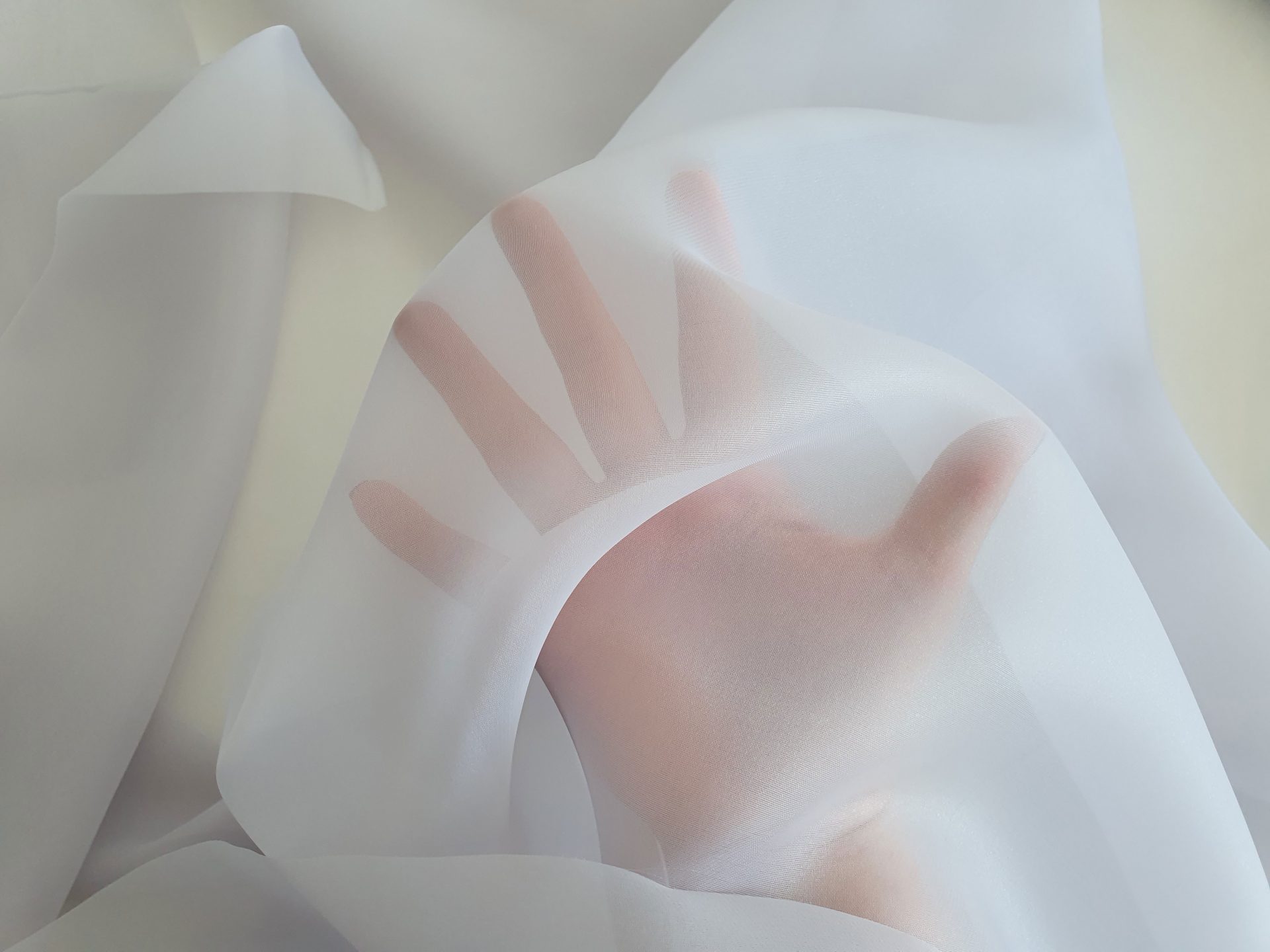 Organza gri este o tesatura fina cu transparenta medie, dar rezistenta si cu volum. Poate fi croita si modelata cu lejeritate, avand o cadere ampla. Cu o textura neteda si un luciu sidefat, aceasta organza este o tesatura versatila, putand fi folosita atat pentru a da amploare rochiilor cat si ca material de baza pentru tinute diafane.