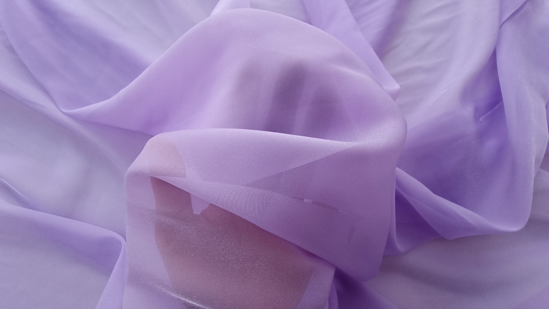 Organza lila sidefata este o tesatura fina cu transparenta medie, dar rezistenta si cu volum. Poate fi croita si modelata cu lejeritate, avand o cadere ampla. Cu o textura neteda si un luciu sidefat, aceasta organza este o tesatura versatila, putand fi folosita atat pentru a da amploare rochiilor, cat si ca material de baza pentru tinute diafane.
