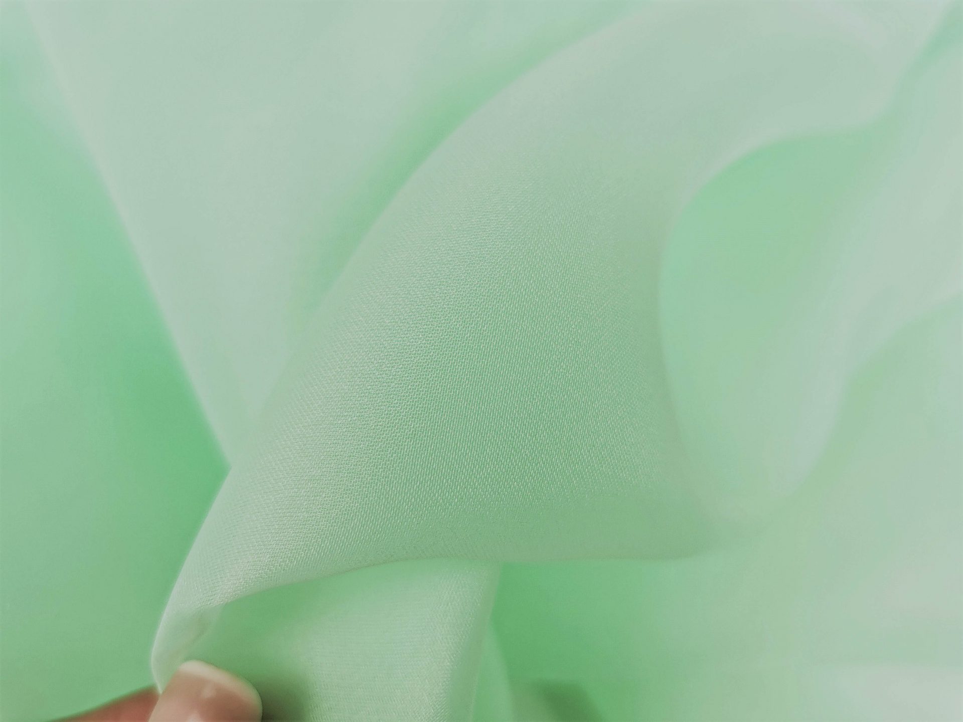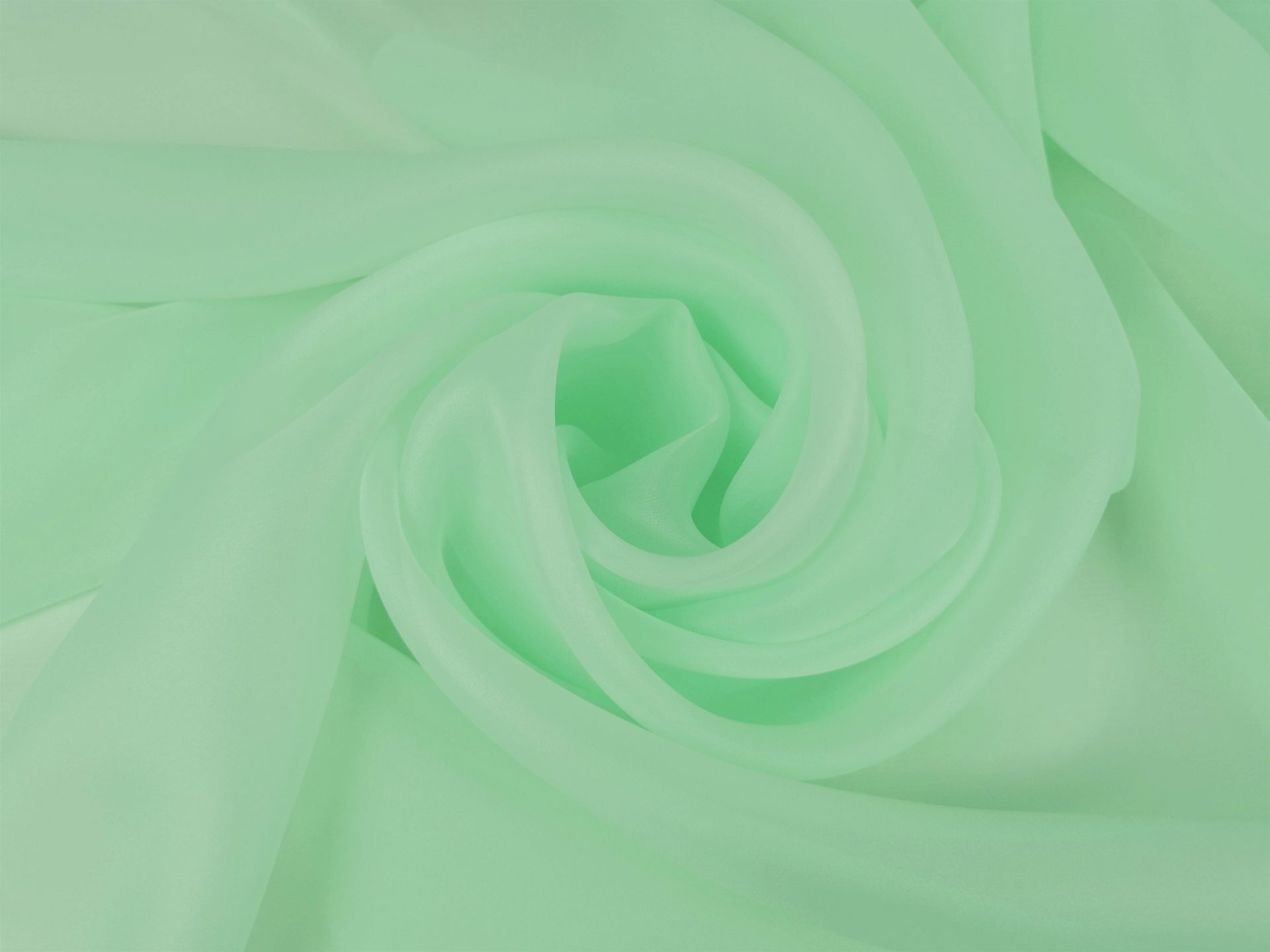 Organza minty pastel este o tesatura fina cu transparenta medie, dar rezistenta si cu volum. Poate fi croita si modelata cu lejeritate, avand o cadere ampla. Cu o textura neteda si un luciu sidefat, aceasta organza este o tesatura versatila, putand fi folosita atat pentru a da amploare rochiilor cat si ca material de baza pentru tinute diafane.