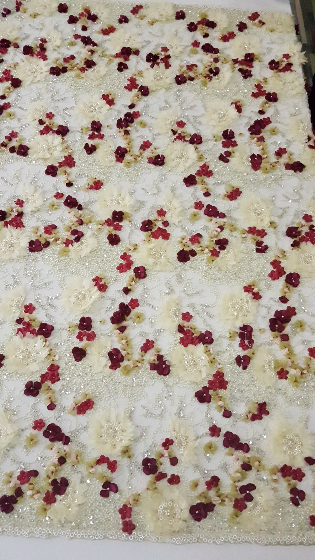 Broderie pe tulle, bogat accesorizata cu perlute si flori 3D din voal.
