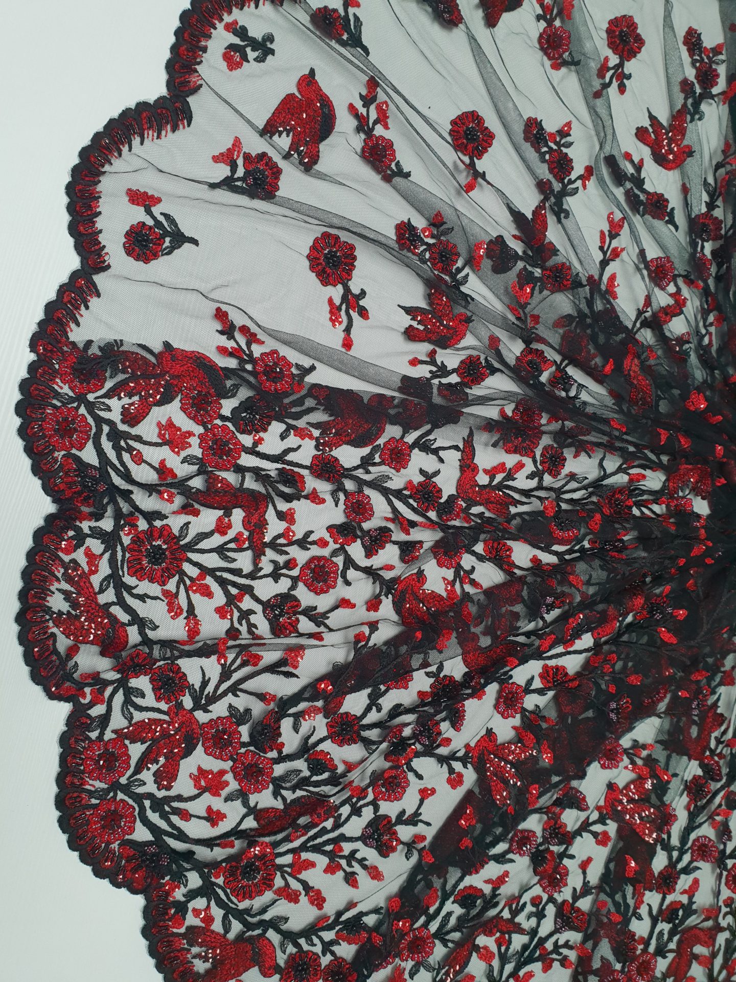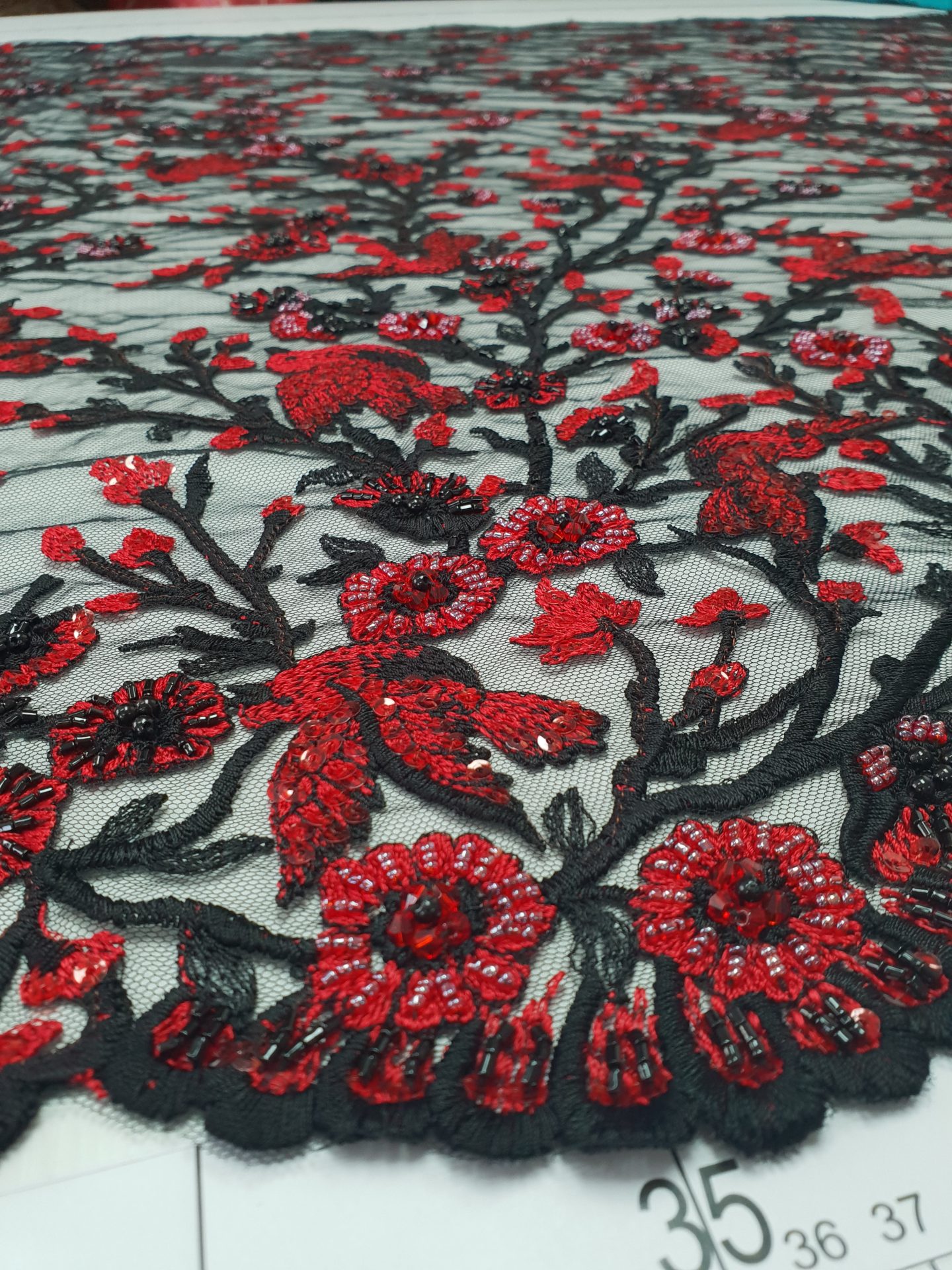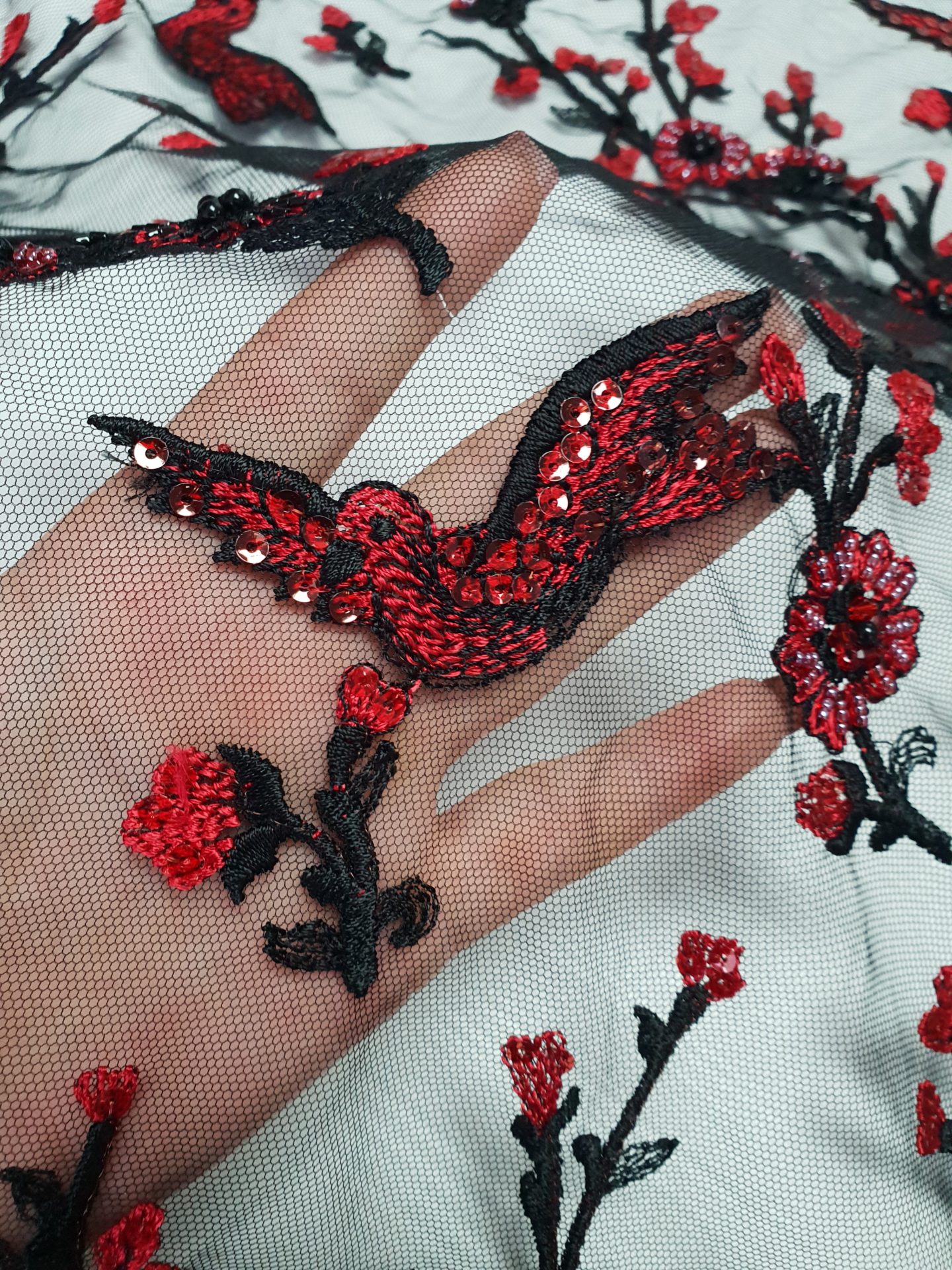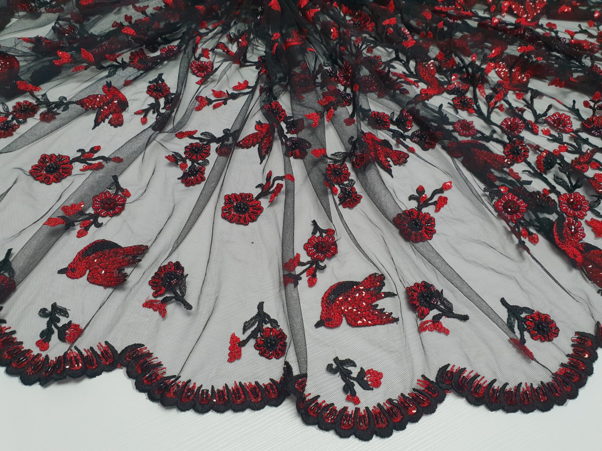 Caracteristici Broderie accesorizata – rosu & negru: