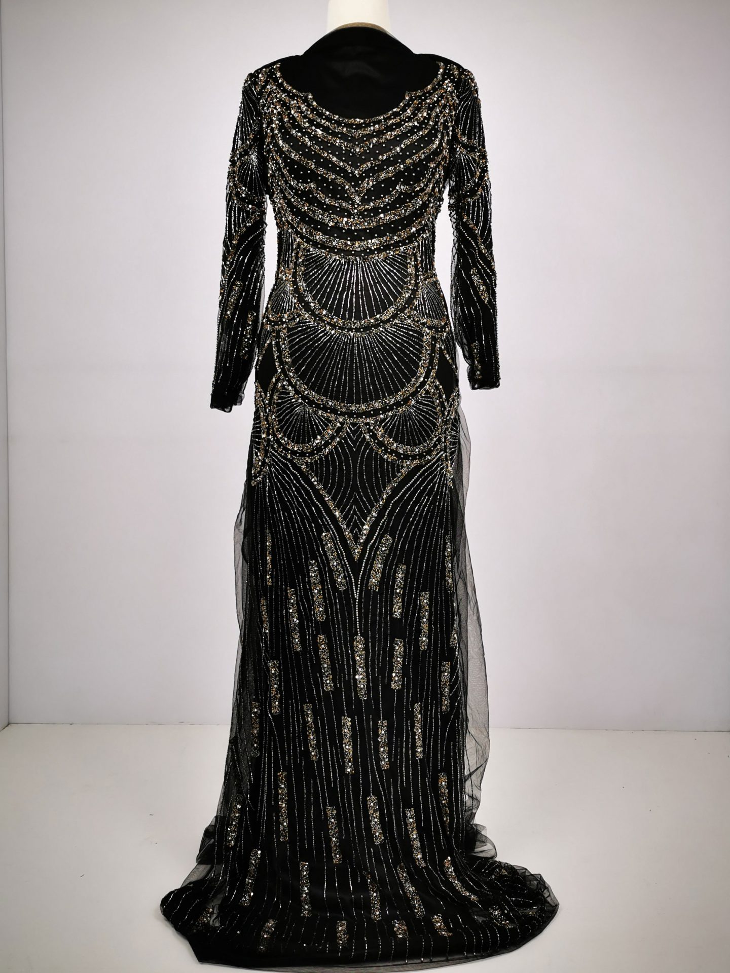 Magic Sparkle Dress, set din 4 panouri realizate 100% manual din margele gri metalic si aurii, accesorizata cu cristale.