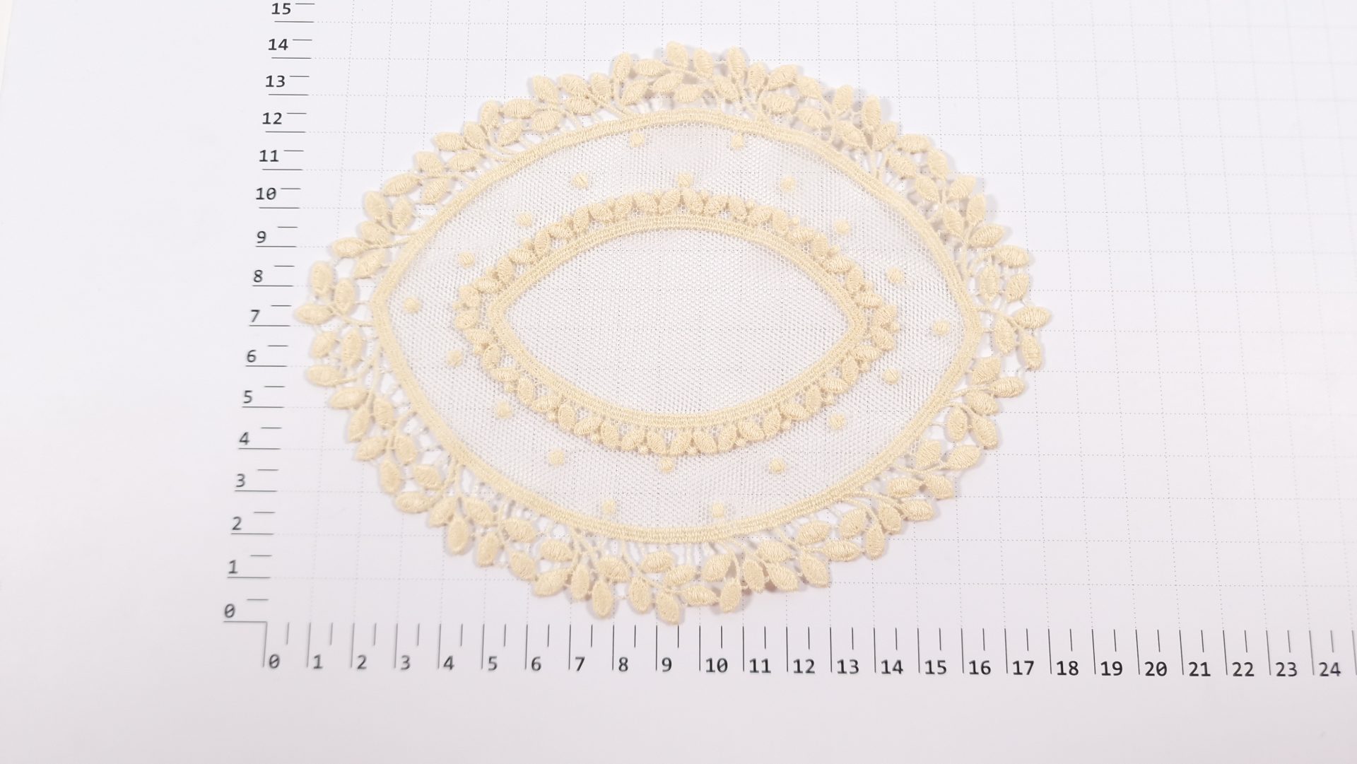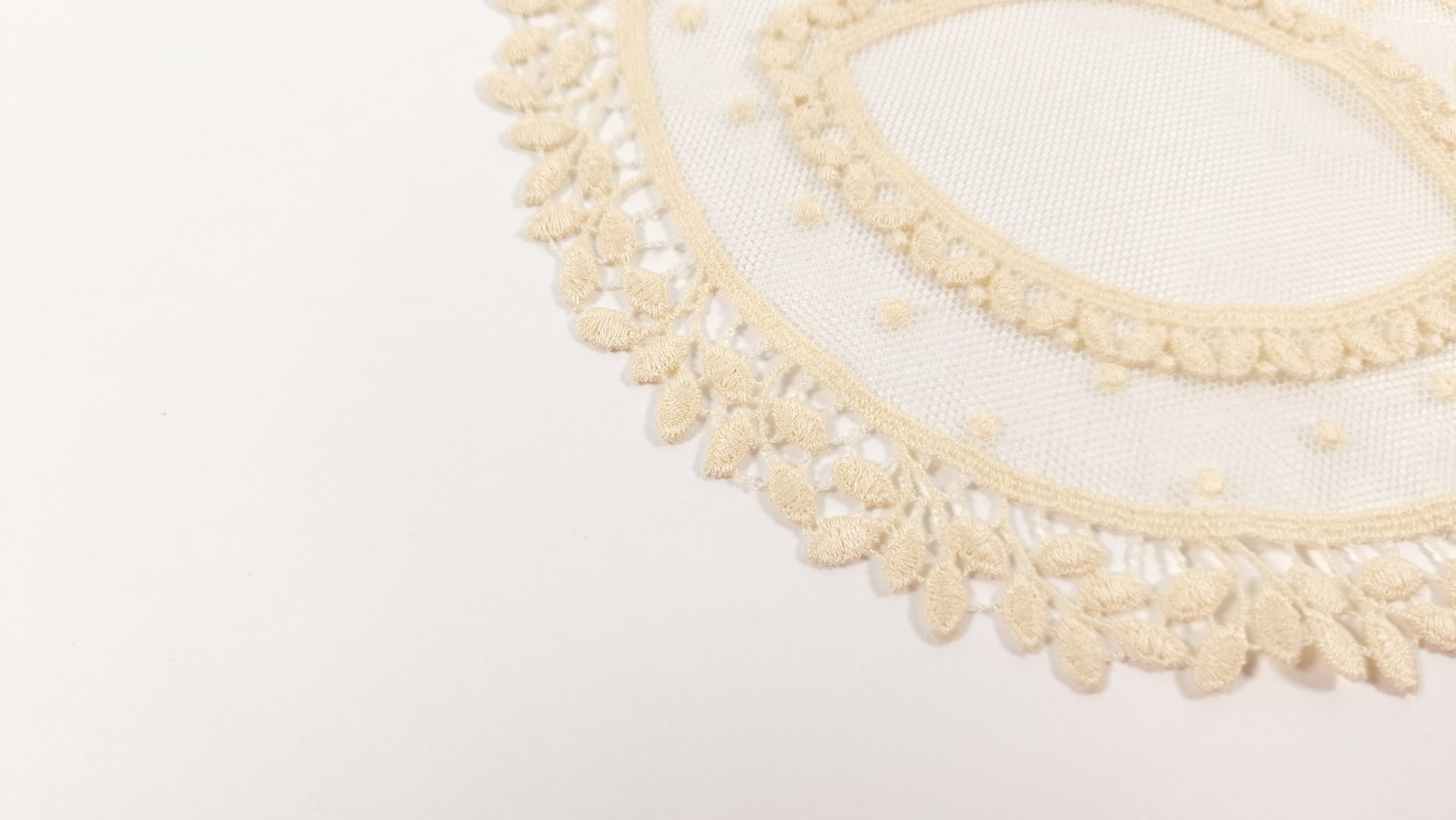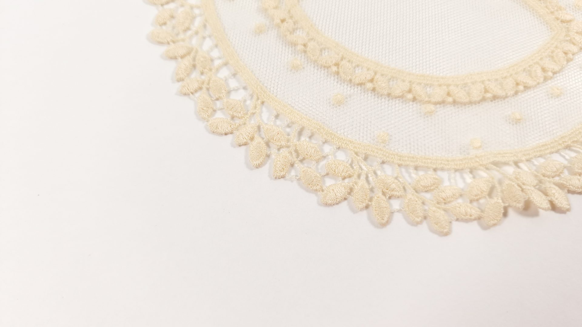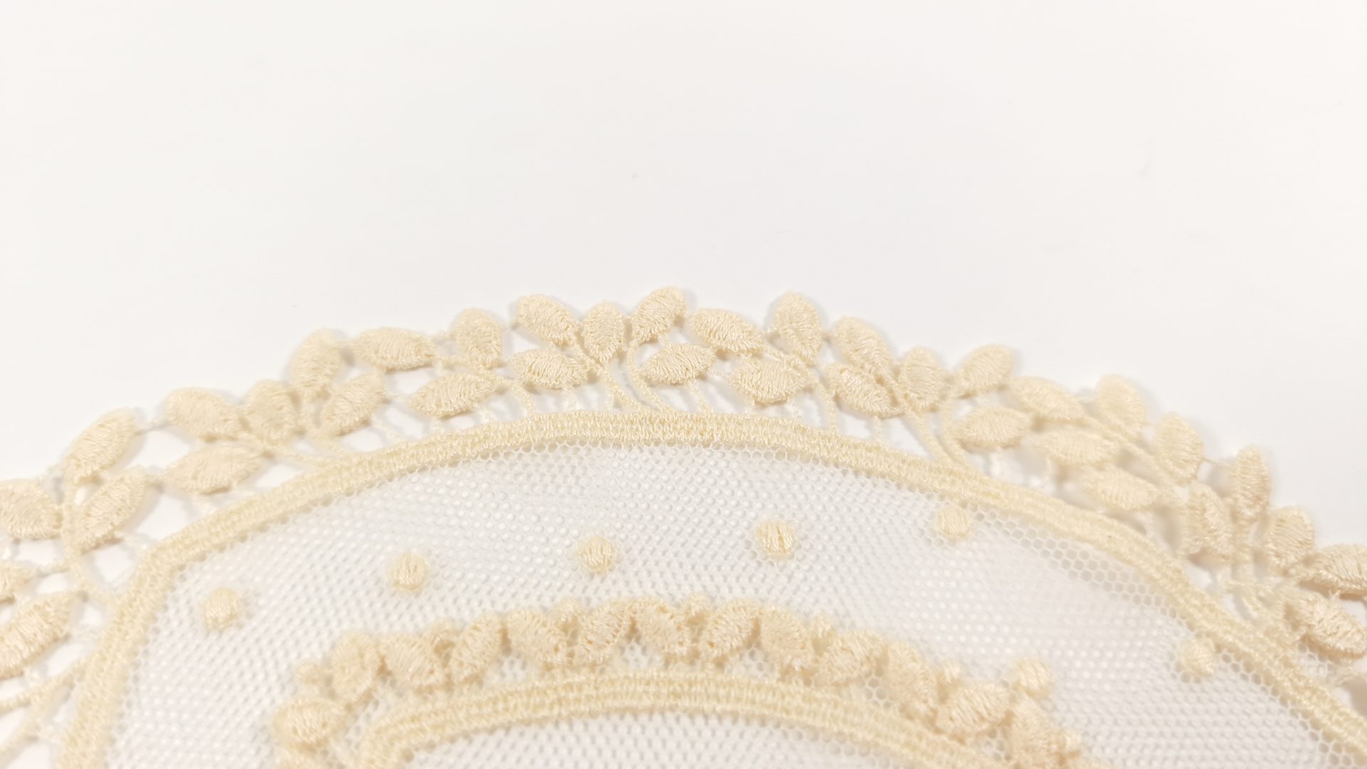 Aplicatie decorativa din bumbac pe tulle nature, calitate inalta, fabricata in Italia.