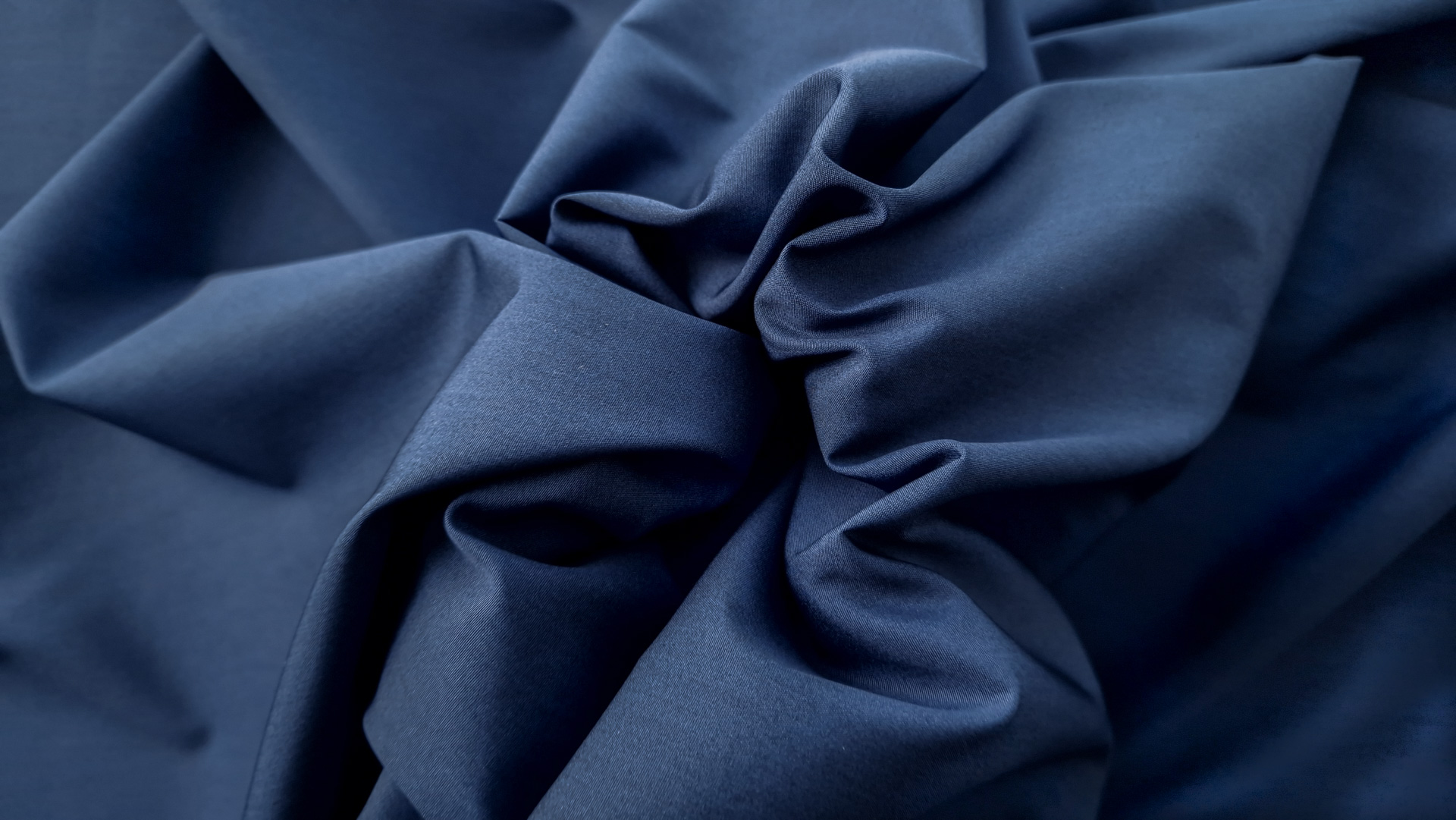 Poplin bleumarin usor teflonat din bumbac si elastan, cu o textura foarte placuta la atingere, calitate ireprosabila.