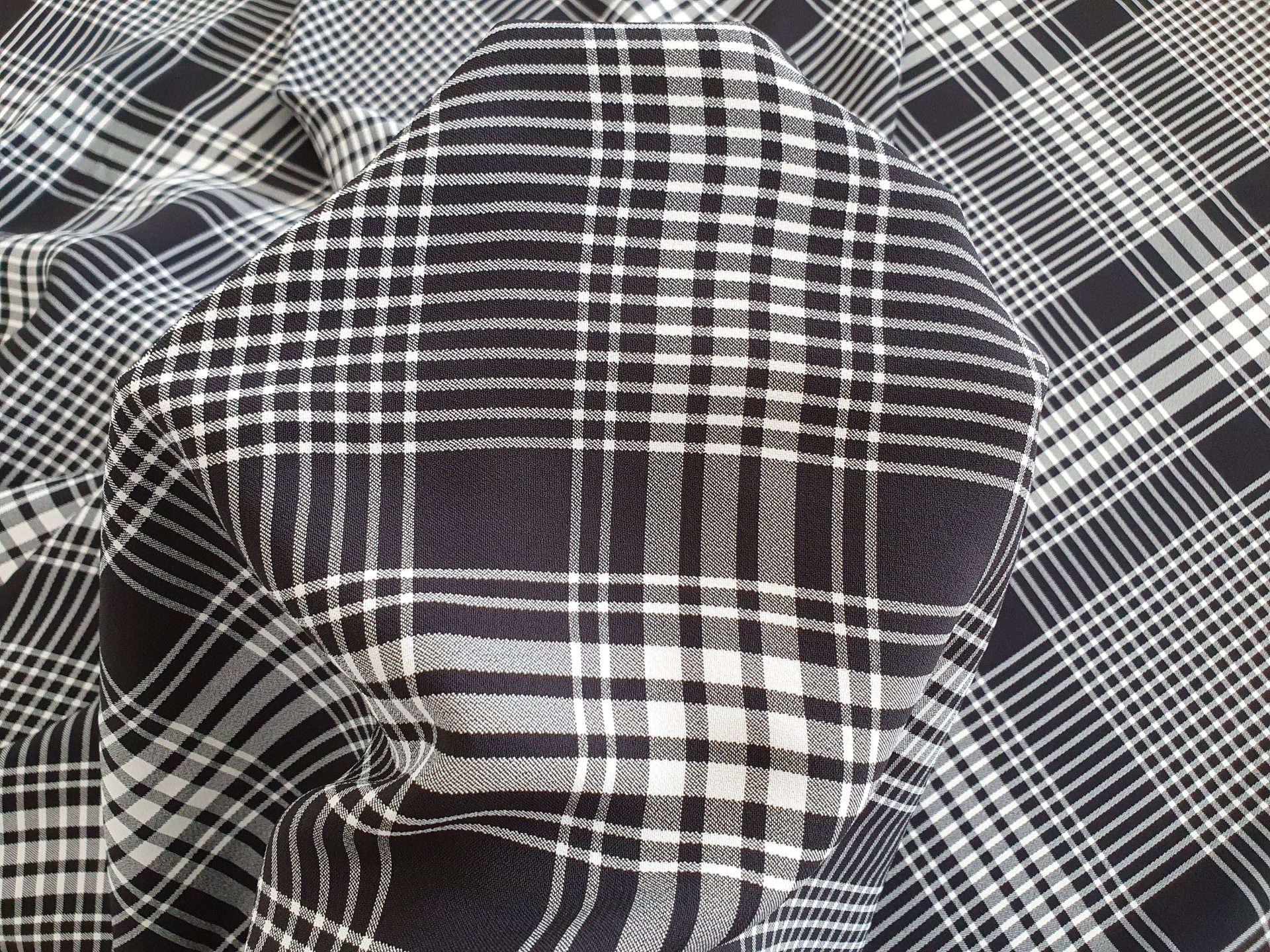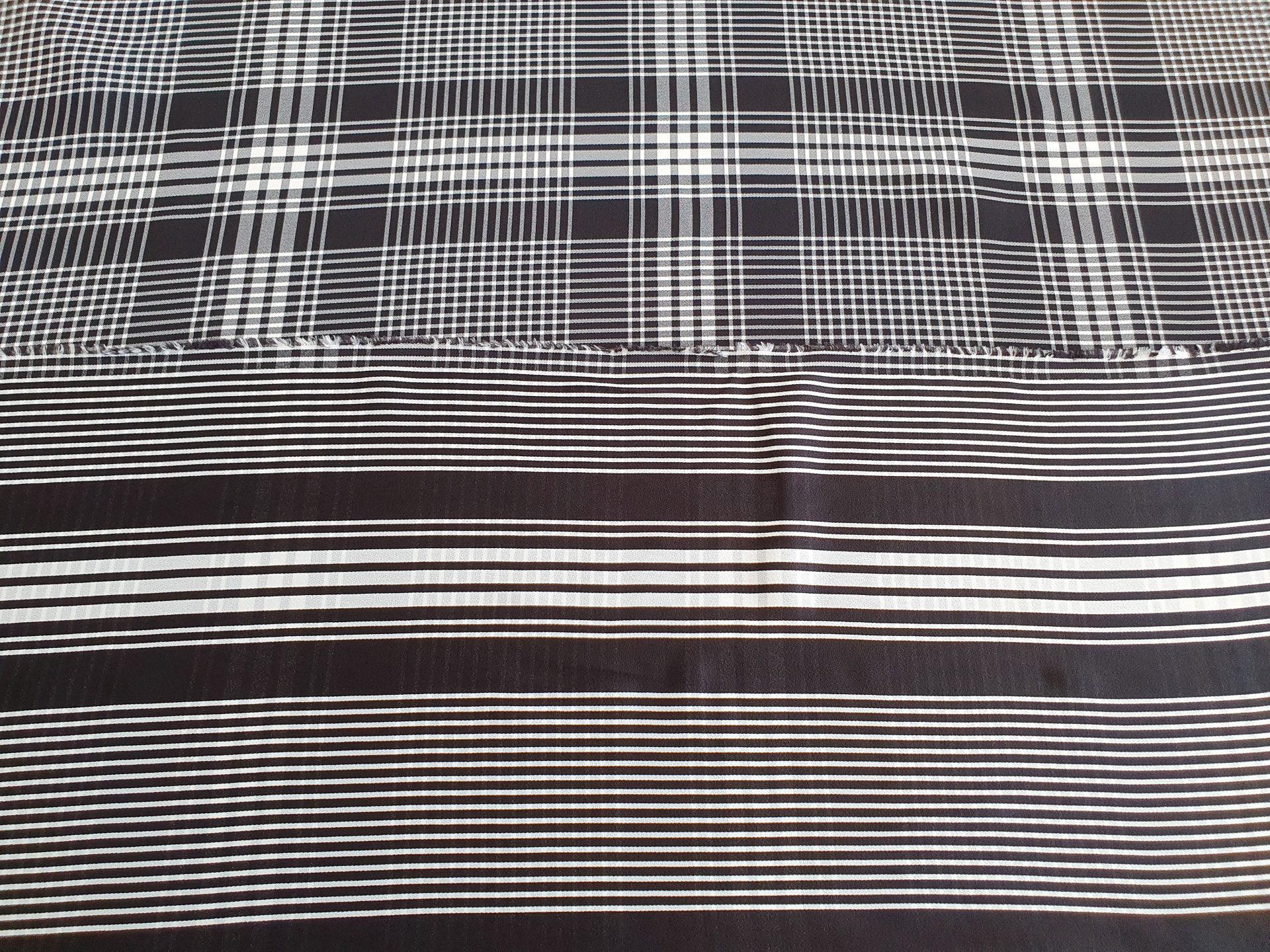 Poplin din bumbac cu doua fete BAL6545 – una in carouri alb-negru, iar cealalta cu dungi alb-negru.