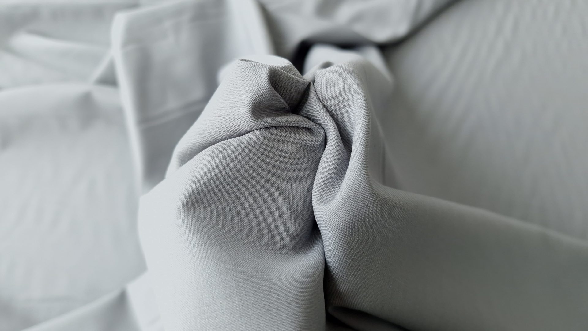 Poplin gri inchis cu lana si bumbac, usor elastic, cu o textura placuta la atingere.