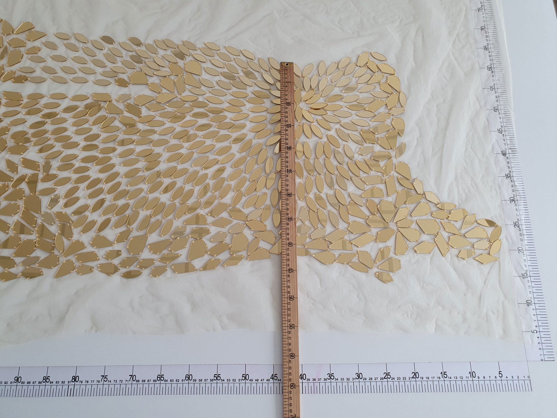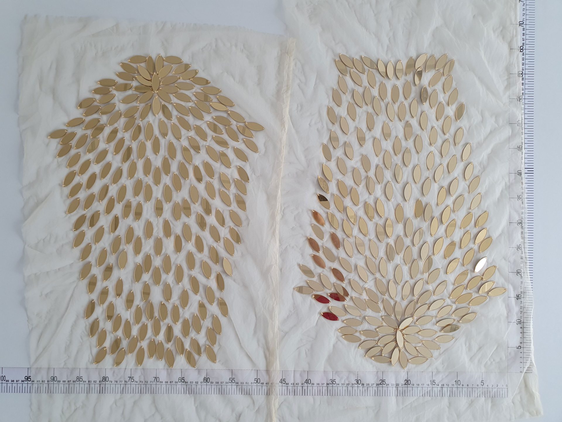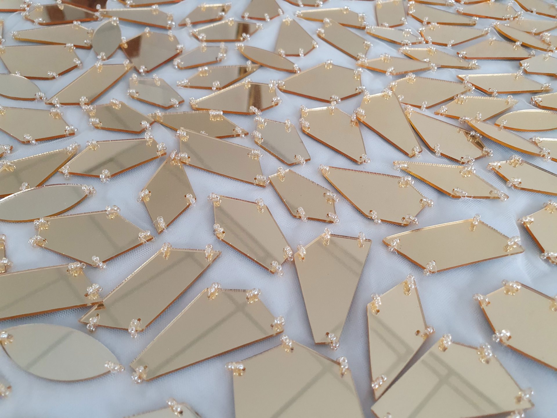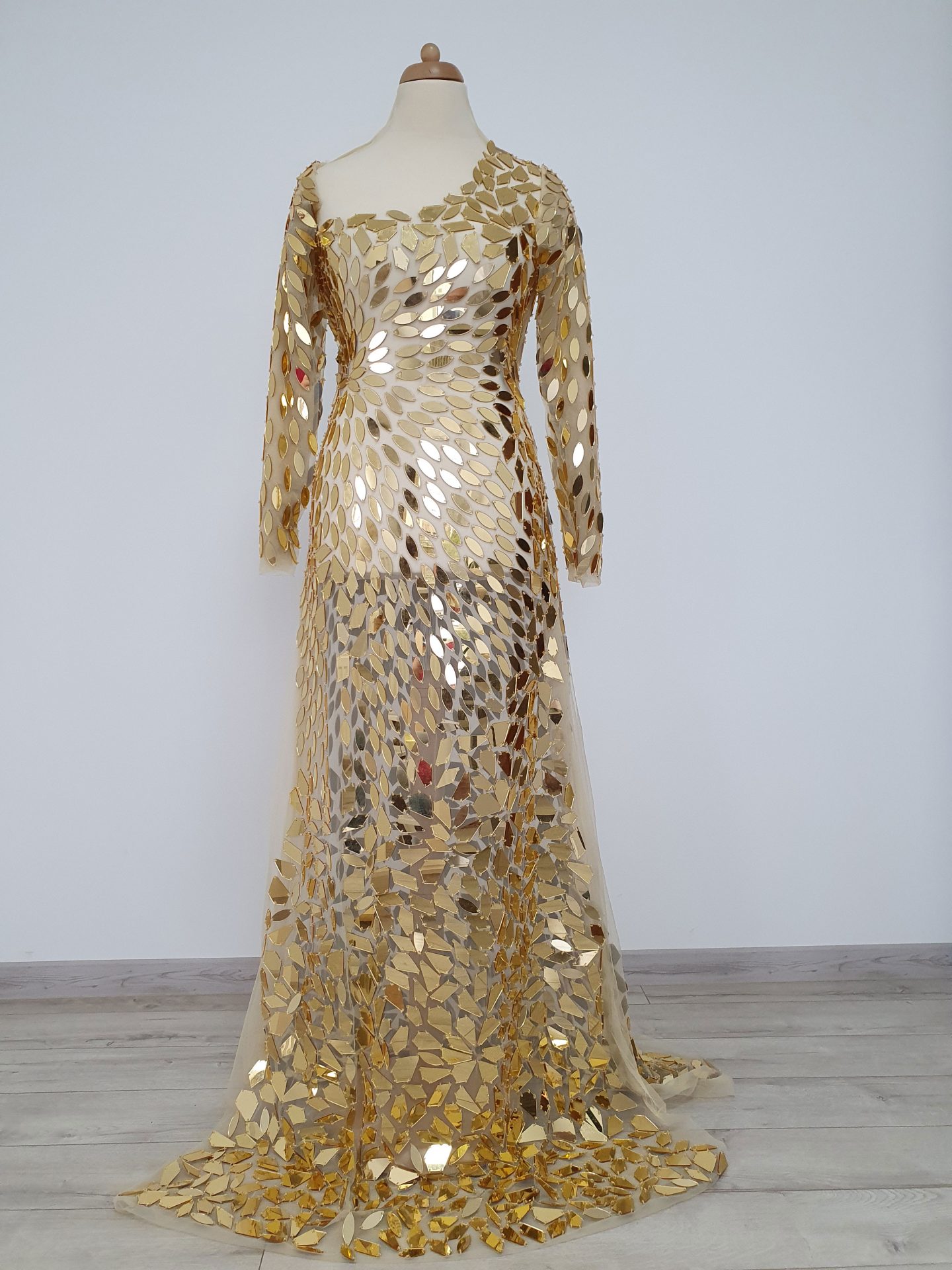 Neith Dress, set din 4 panouri realizate 100% manual din oglinzi aurii pentru a concepe cu usurinta o rochie lunga de gala.