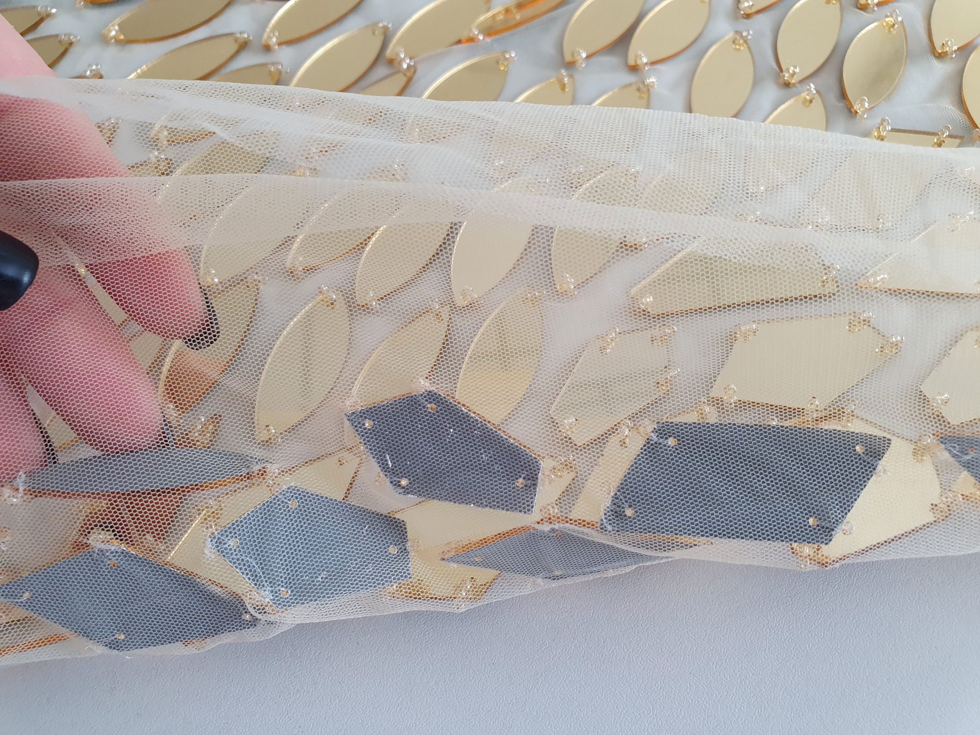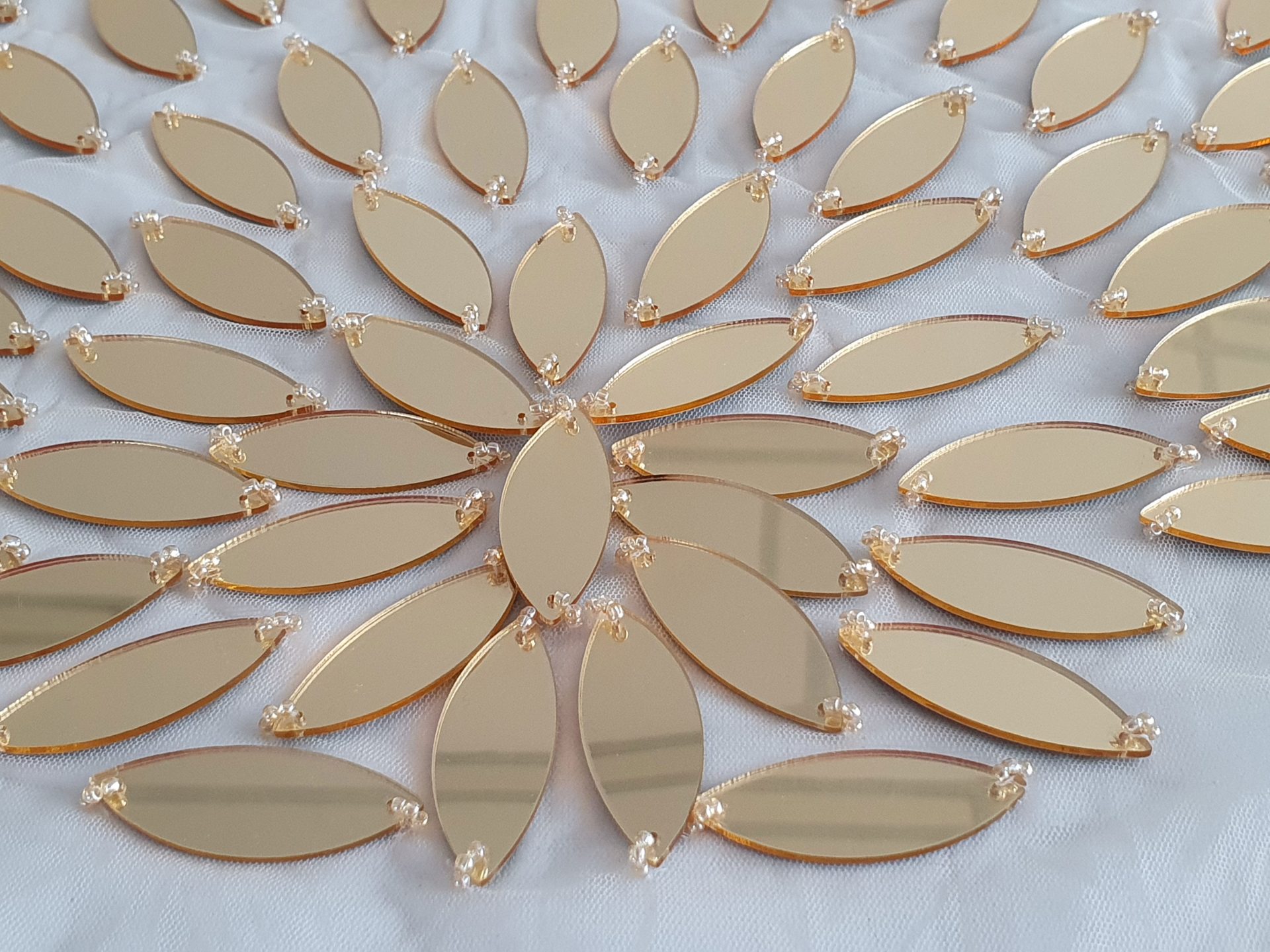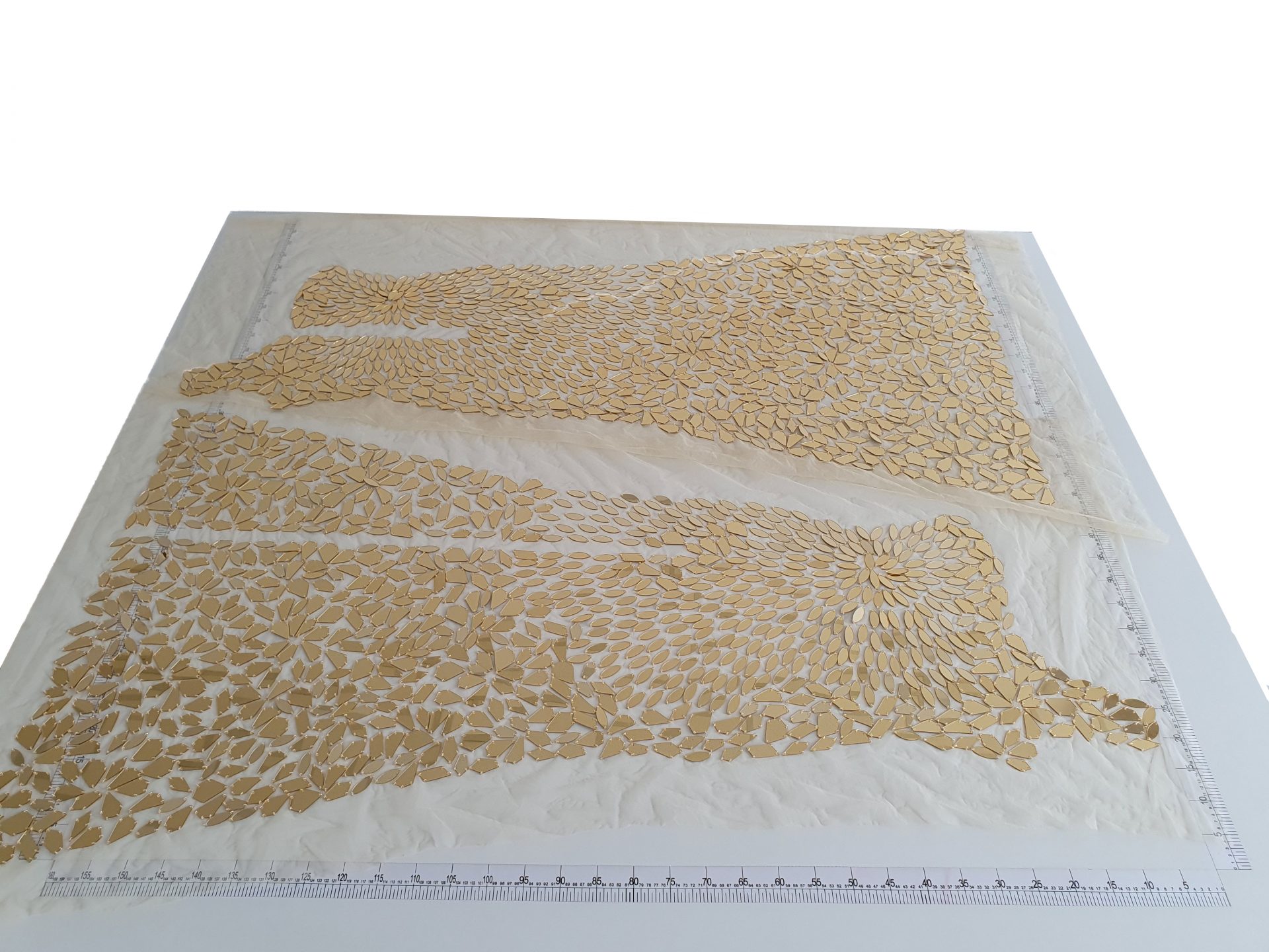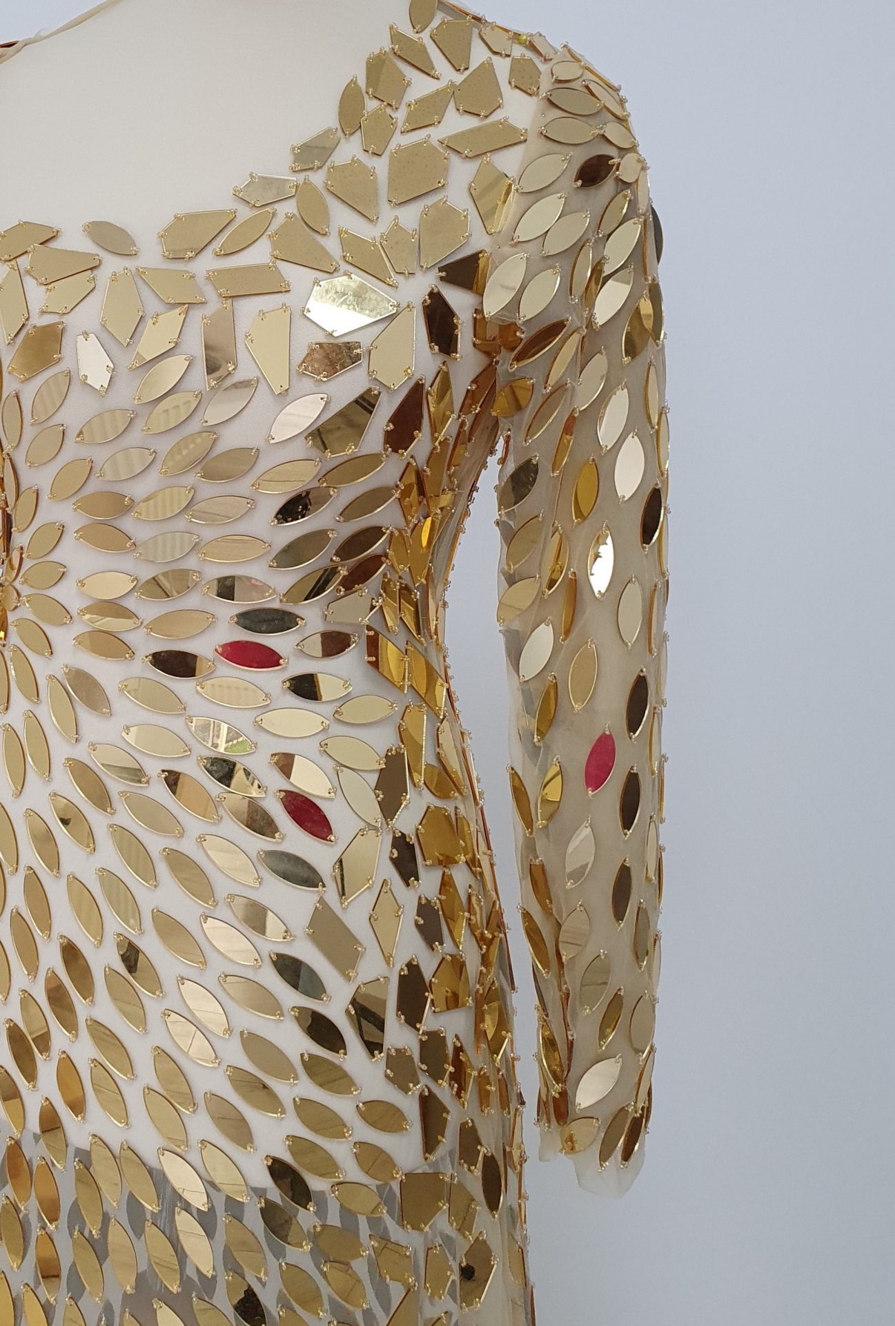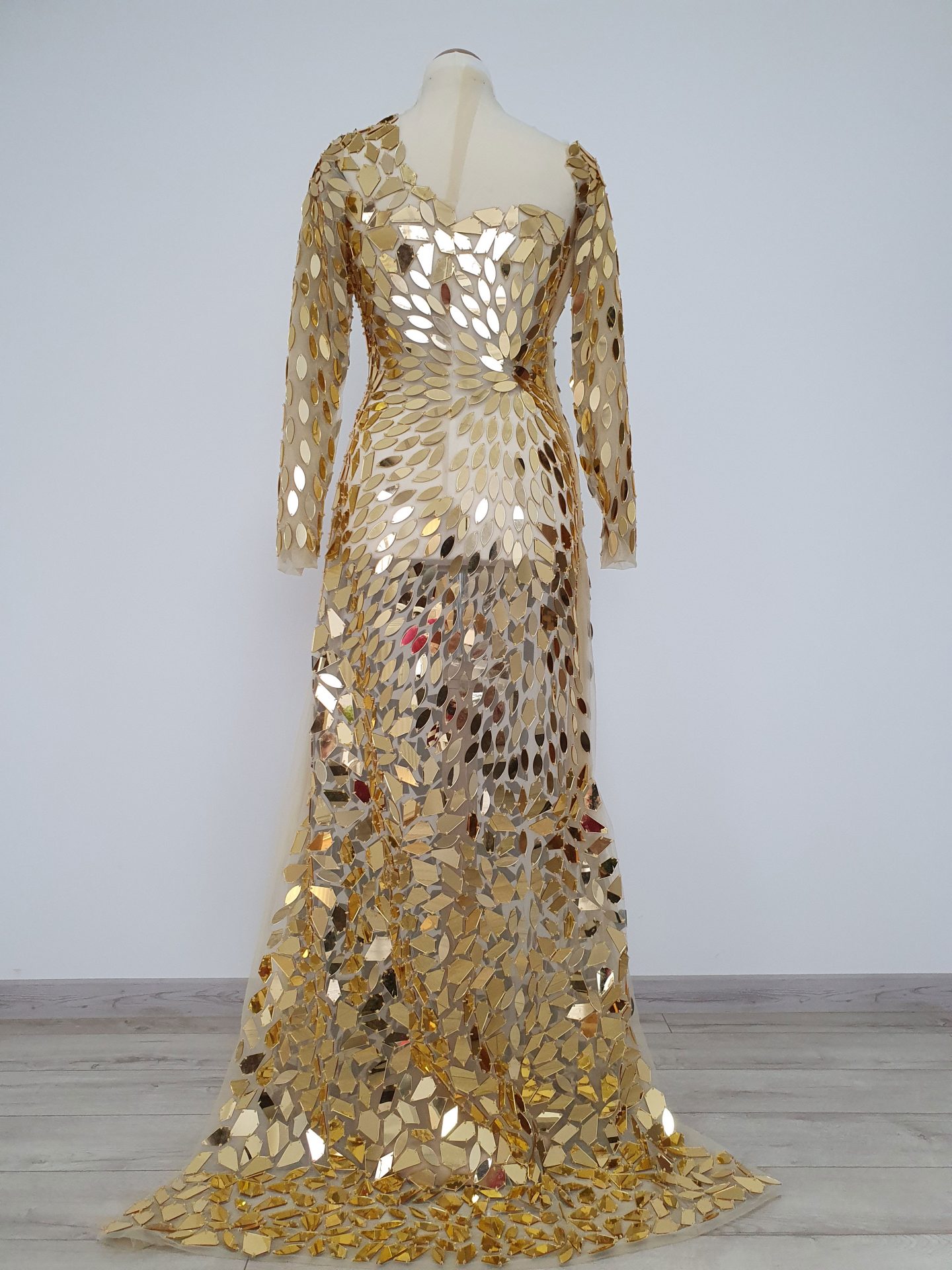 Neith Dress, set din 4 panouri realizate 100% manual din oglinzi aurii pentru a concepe cu usurinta o rochie lunga de gala.