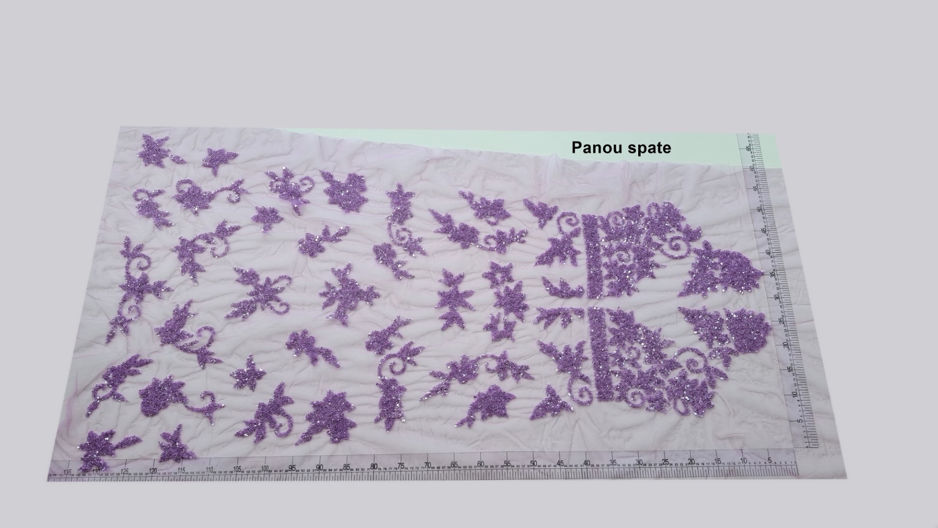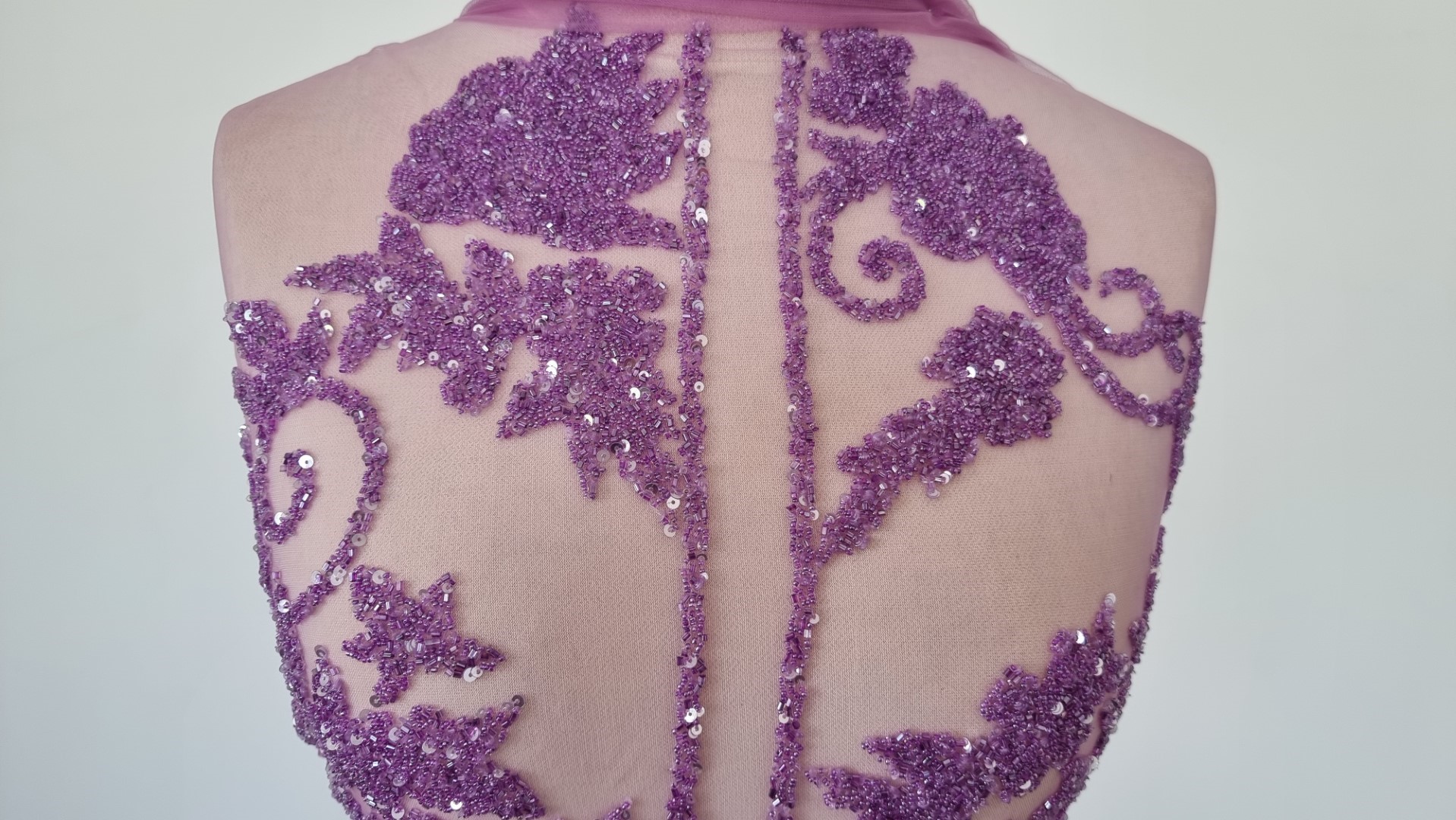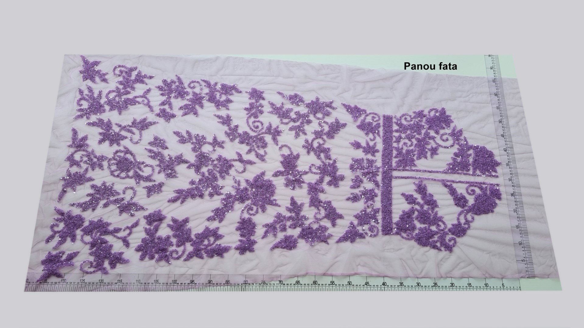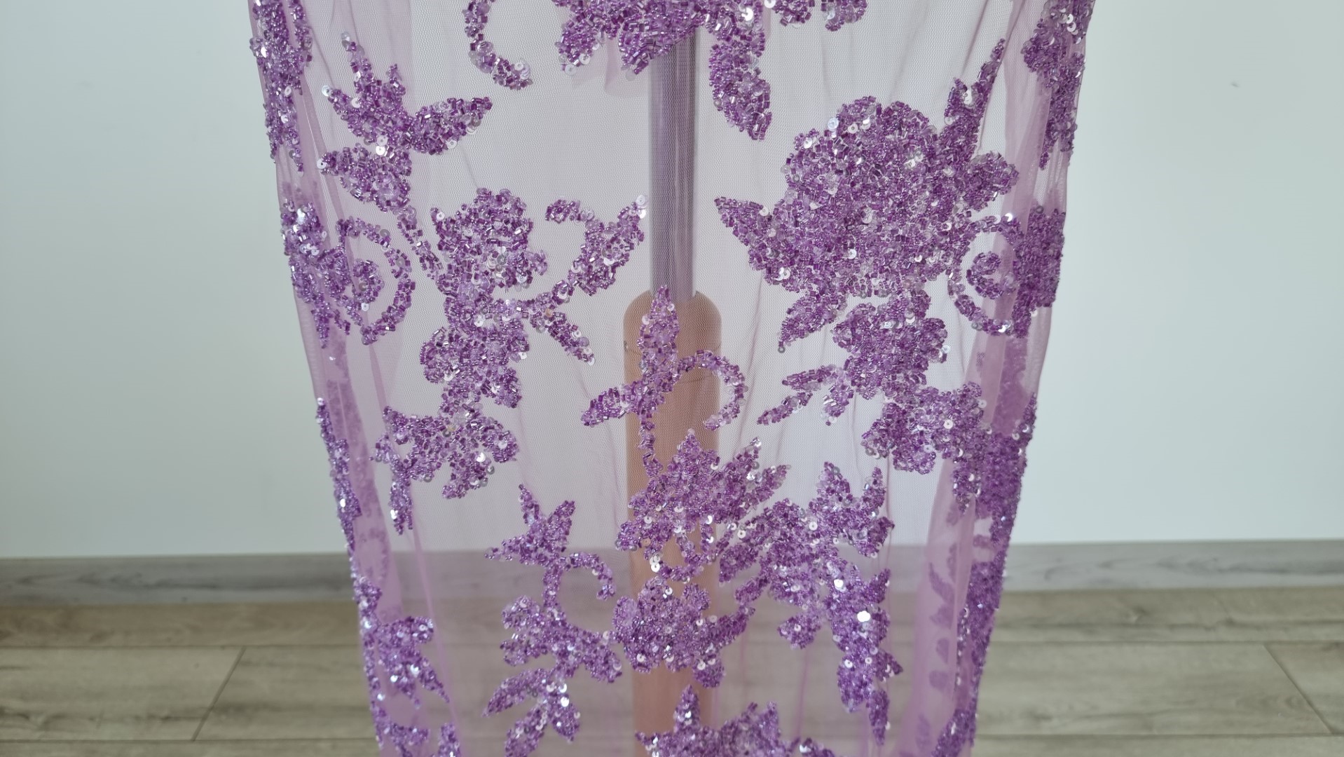 Tulle-ul folosit ca baza pentru broderie este mov, usor elastic.