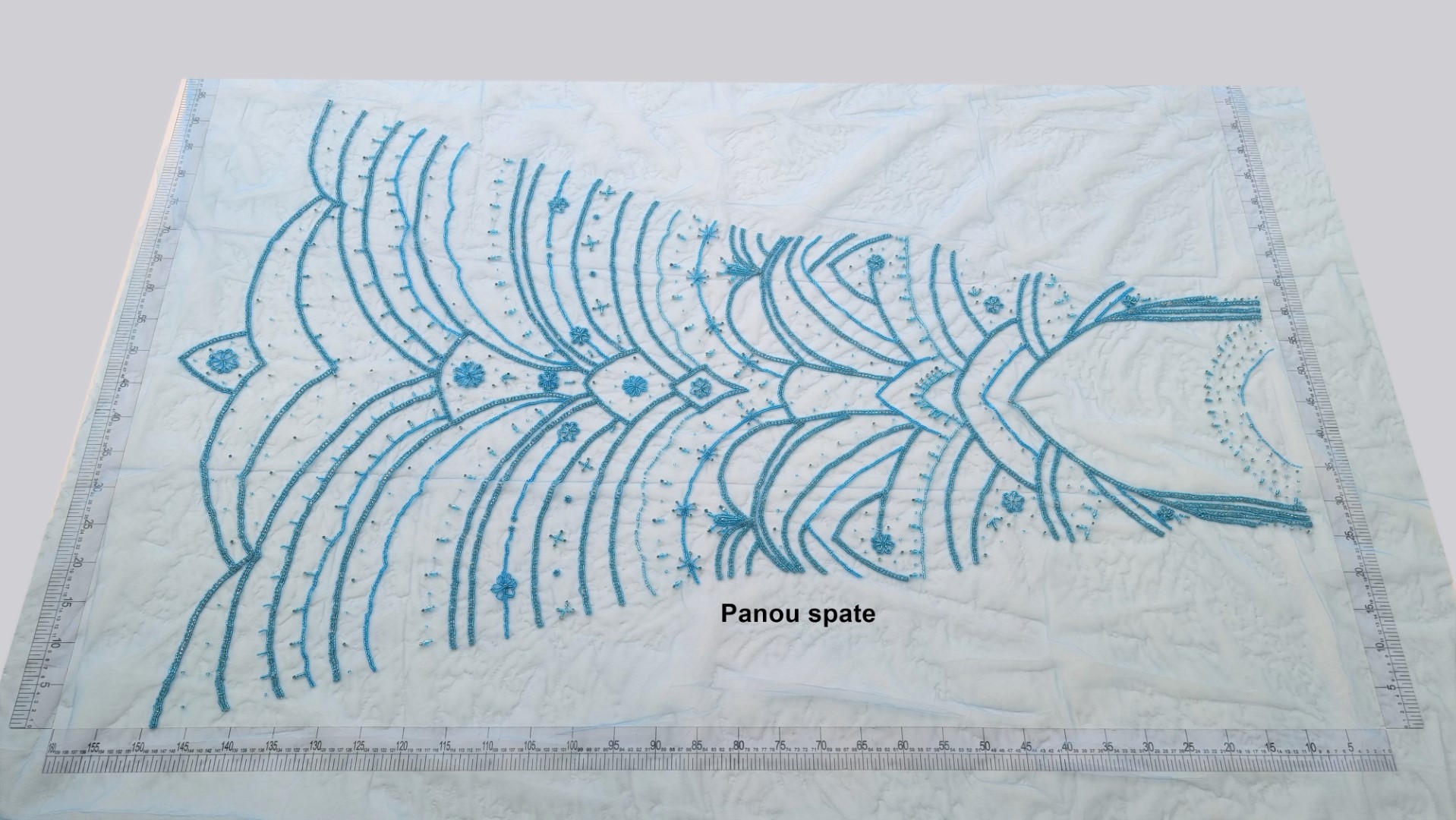 Caracteristici Rochie lunga turquoise lucrata manual – panouri :