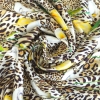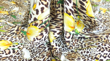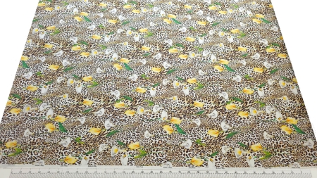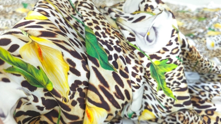 Satin elastic din matase naturala DG1810, model de inspiratie Dolce & Gabbana, cu imprimeu animal print distribuit pe întreaga suprafață, ideal pentru confecționarea rochiilor sau a fustelor mulate, a cămășilor vaporoase sau eșarfe. Satinul imprimat din mătase naturală este cunoscut pentru textura sa fină, moale și lucioasă, fiind perfect pentru creații elegante. Fiind o fibră nobilă, mătasea naturală este respirabilă și delicată pe piele, fiind potrivită pentru purtare în orice sezon.