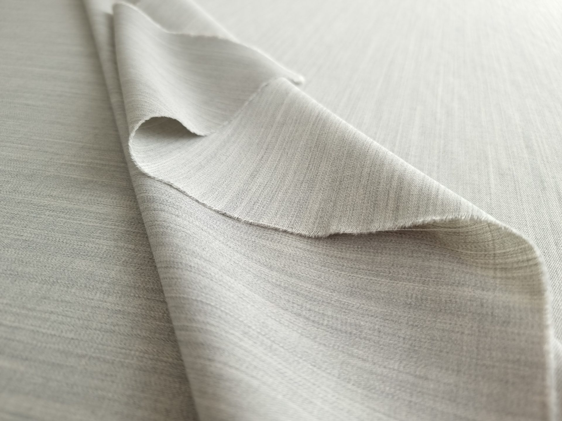 Stofa subtire din lana virgina grej, cu textura placuta la atingere.