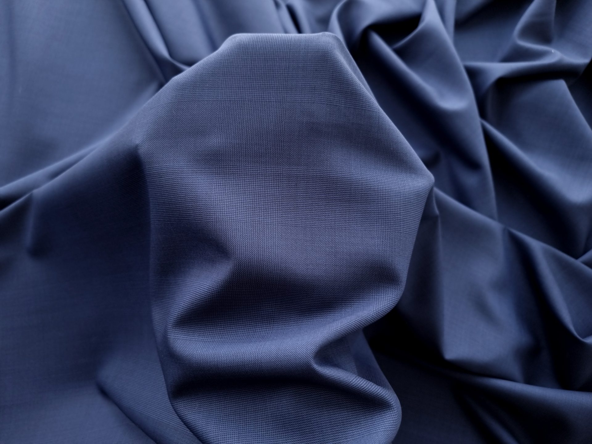 Stofa subtire din lana virgina prussian blue, usor elastica, cu textura placuta la atingere.