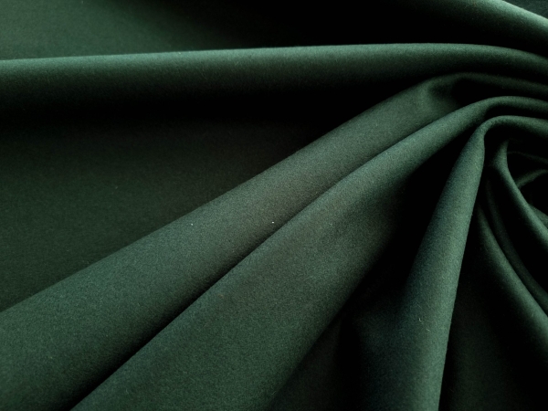 Stofa verde-padure din lana , cu textura plina si placuta la atingere.
