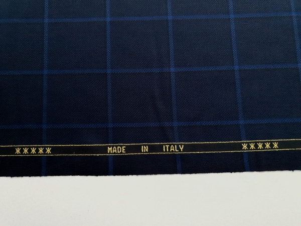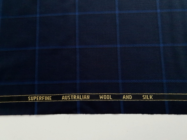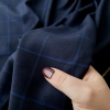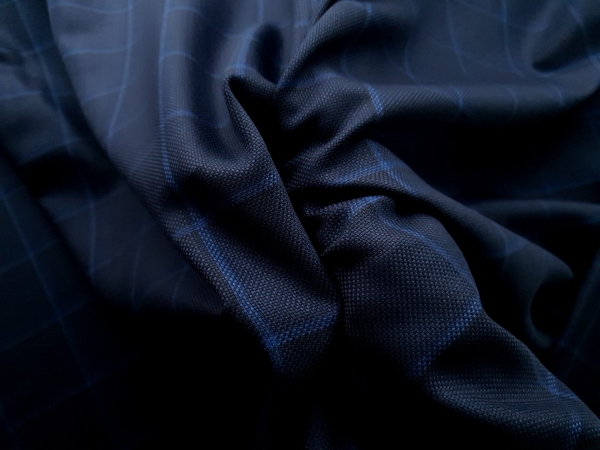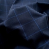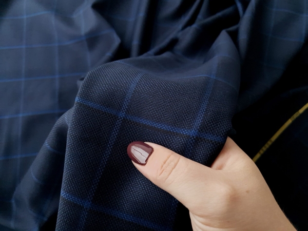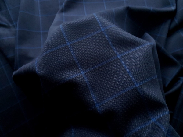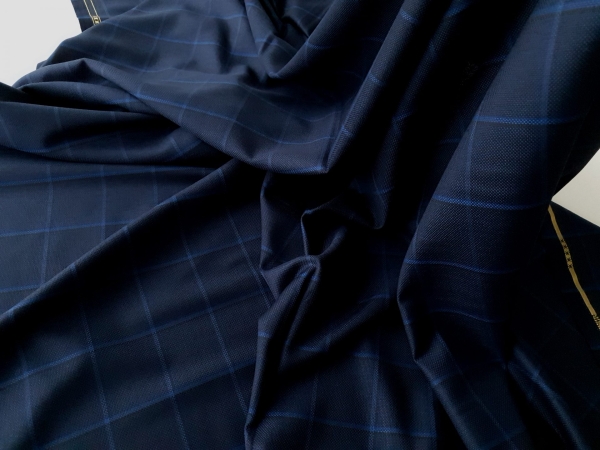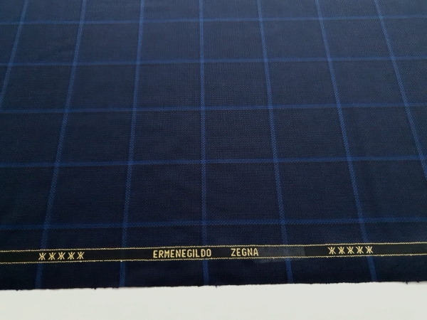 ZGN441 Stofa Ermenegildo Zegna bleumarin in carouri cu lana si matase naturala, subtire, cu textura moale.