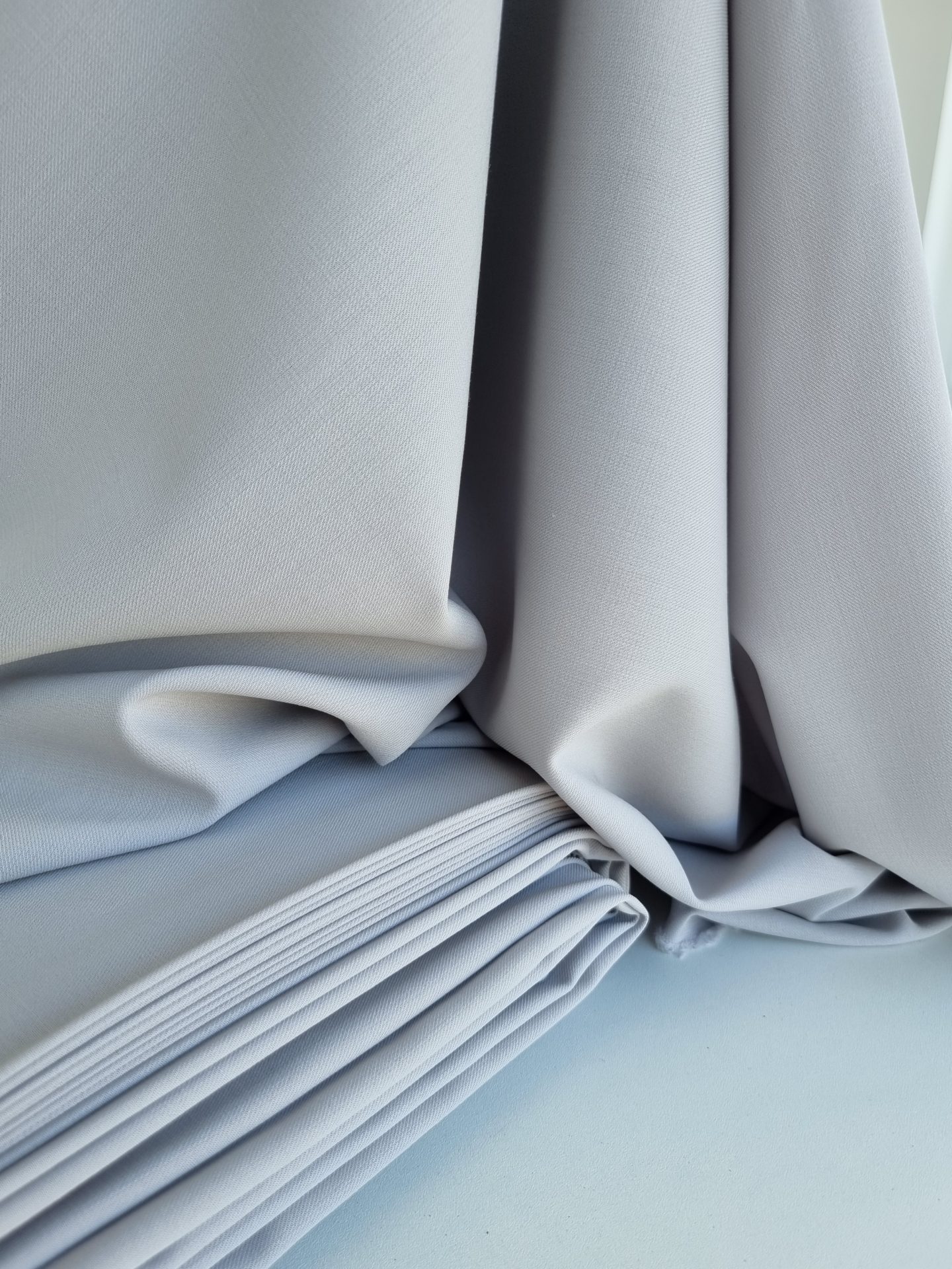 Stofita gri perlat din lana virgina cu elastan, cu textura moale si placuta la atingere.
