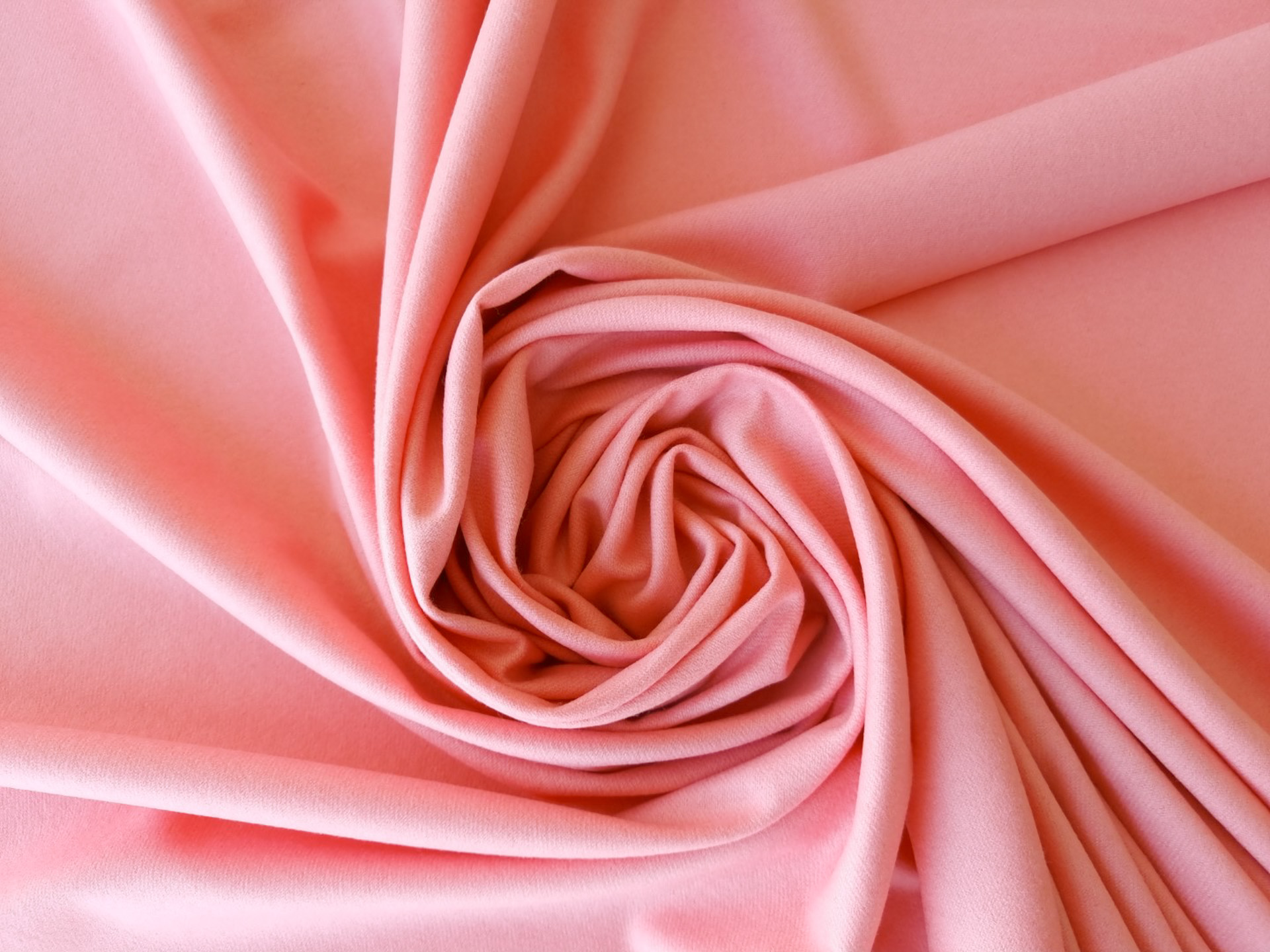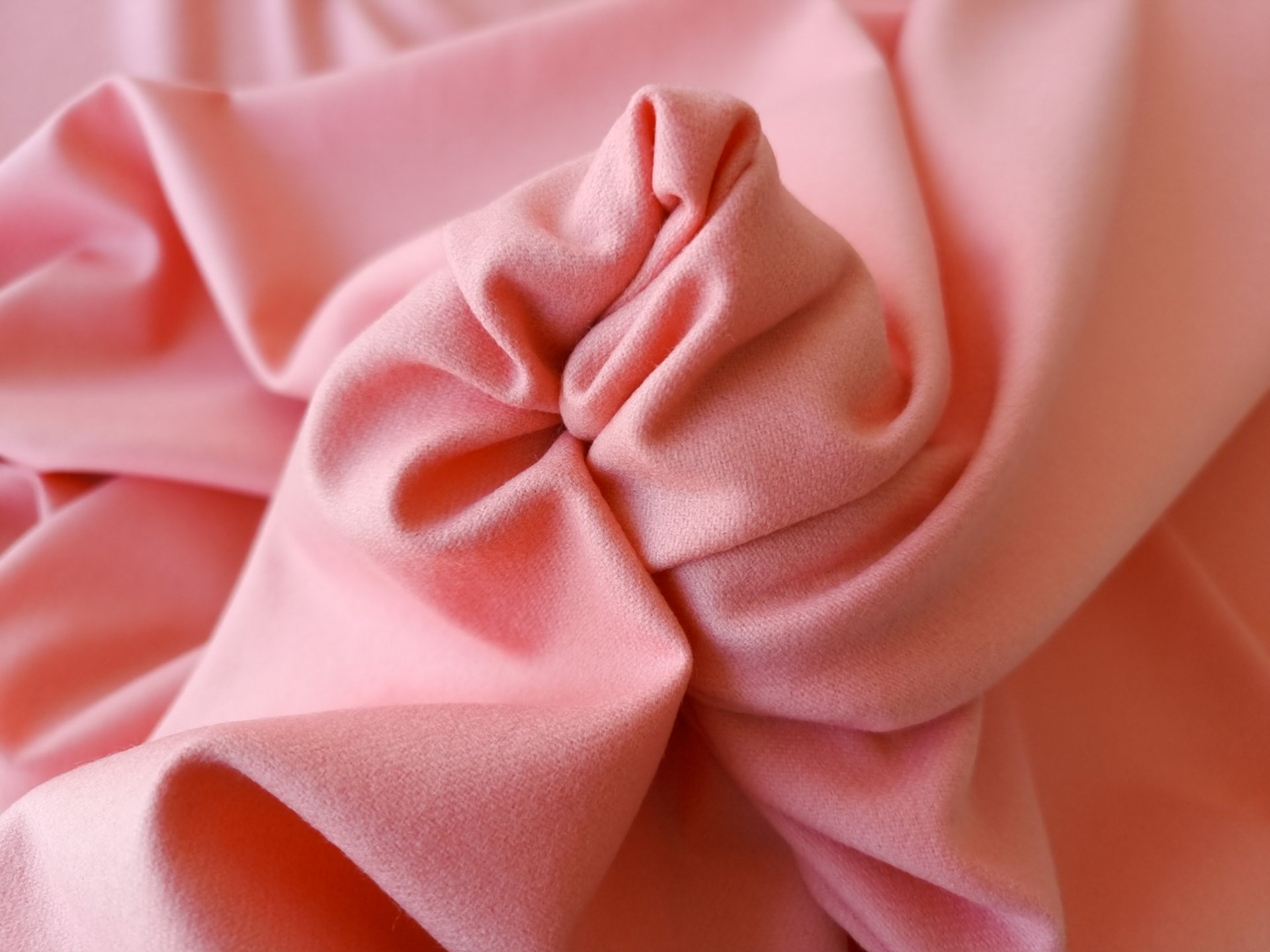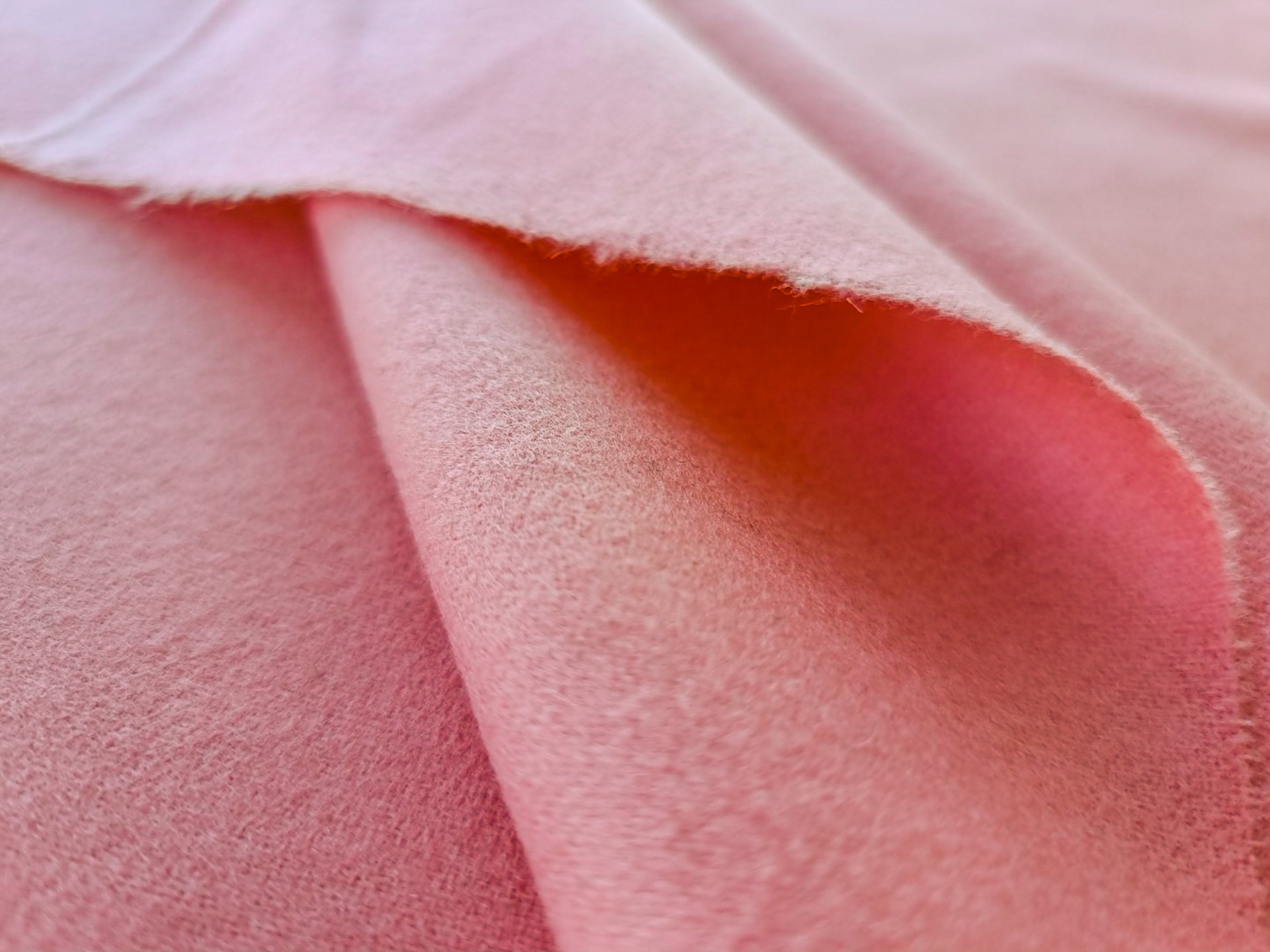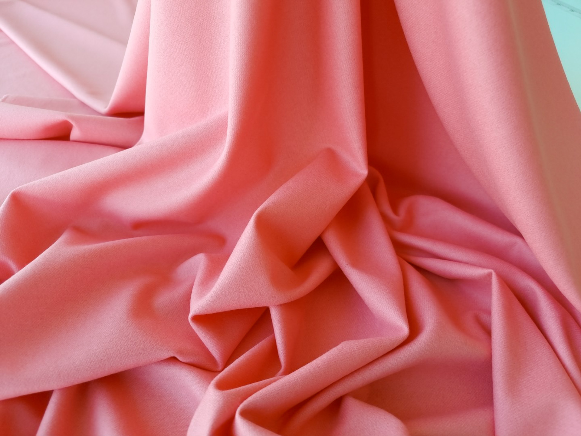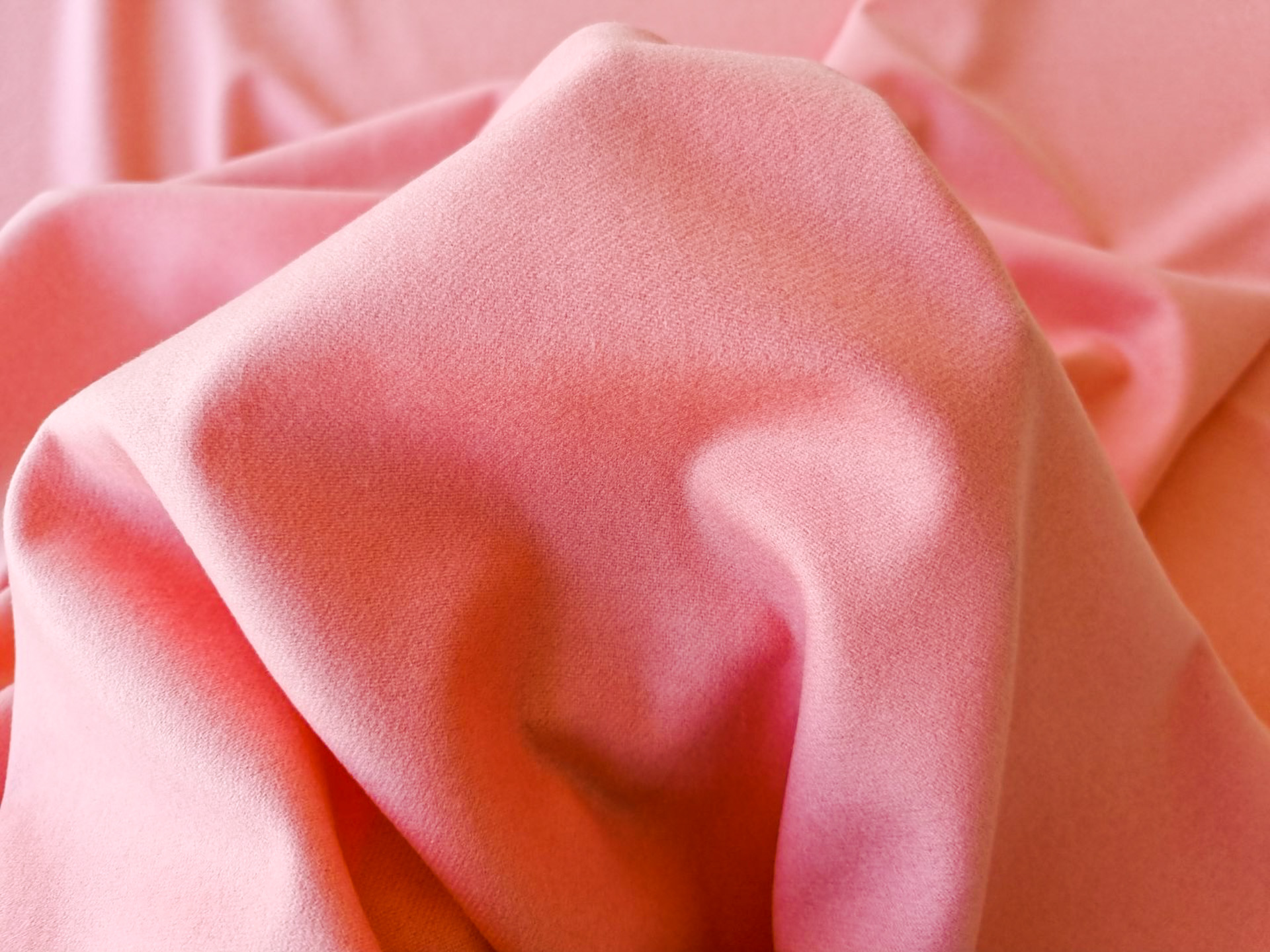 Stofita din lana virgina coral pink, subtire, cu textura moale si placuta la atingere.