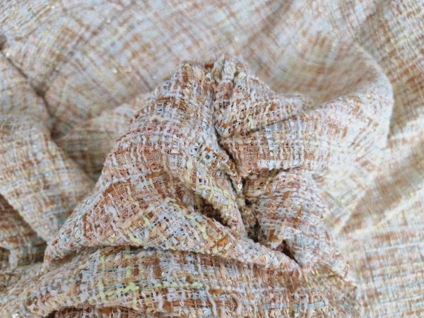 Caracteristici Stofa bej impletita cu insertii de micropaiete aurii: