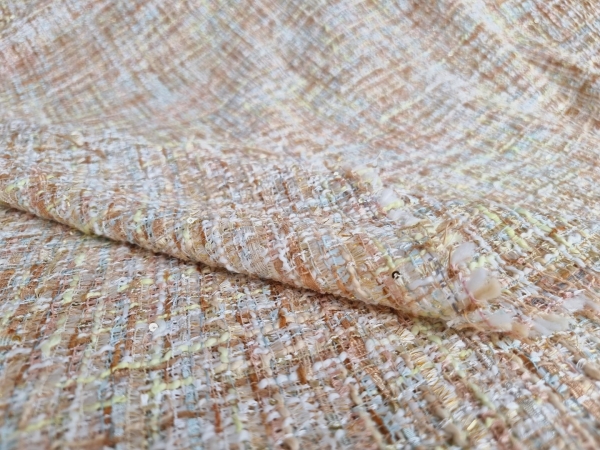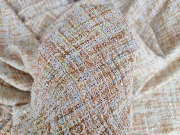 Stofa bej impletita cu insertii de micropaiete aurii, calitate inalta, in tendinte.