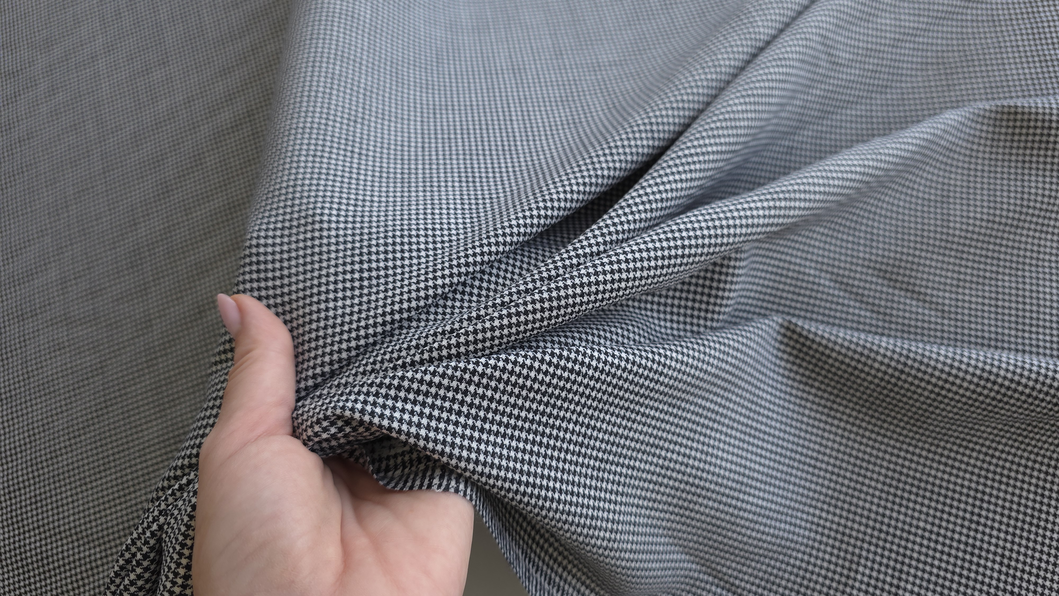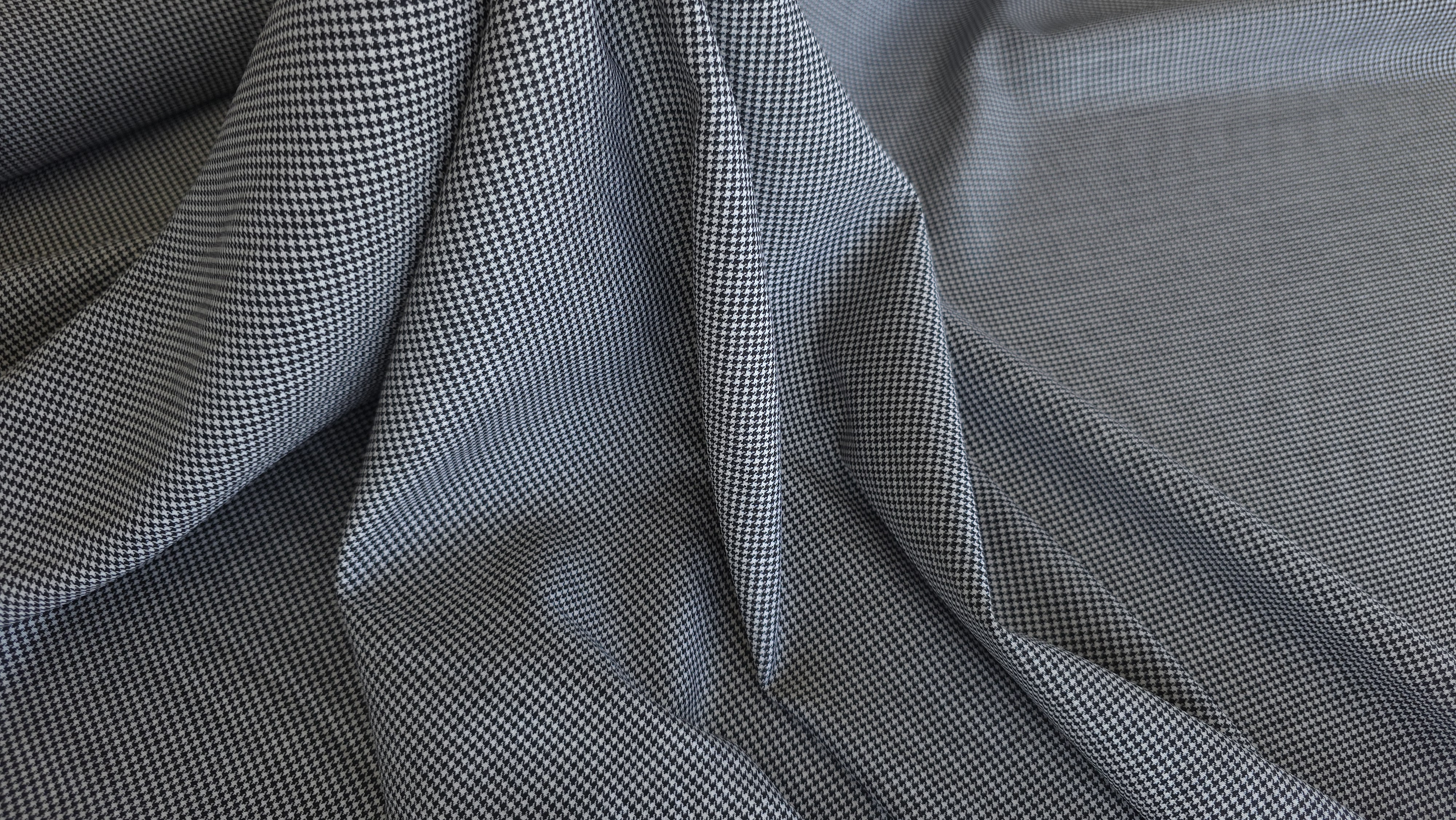 Stofa alb/negru din lana virgina usor elastica, ideală pentru a confecționa articole vestimentare confortabile, elegante și rezistente ce combină rafinamentul estetic cu performanțele practice, oferind un finisaj perfect și o utilizare ușoară. Fabricată dintr-o compoziție premium, această țesătură oferă confort și durabilitate de neegalat. Perfecta pentru confecționarea de costume, sacouri, fuste sau pantaloni, această stofă de înaltă calitate este perfectă pentru orice sezon. Cu un design clasic și o nuanță elegantă, aceasta este alegerea perfectă pentru o garderobă modernă.