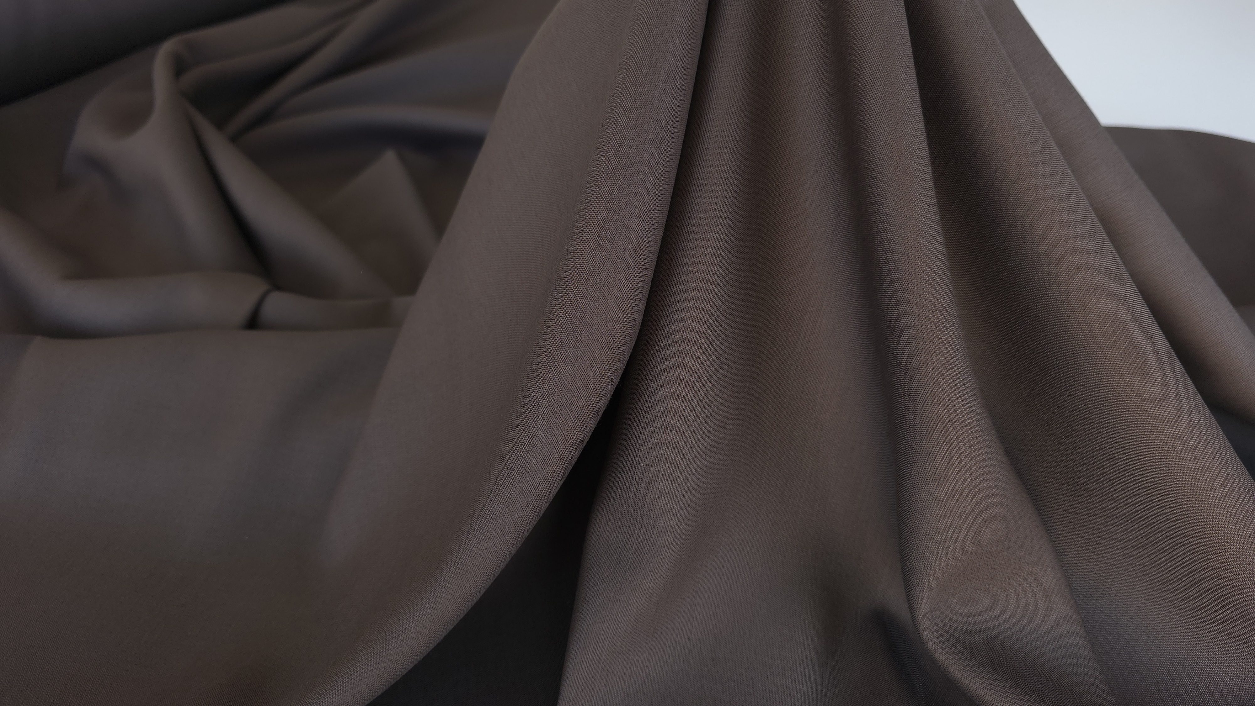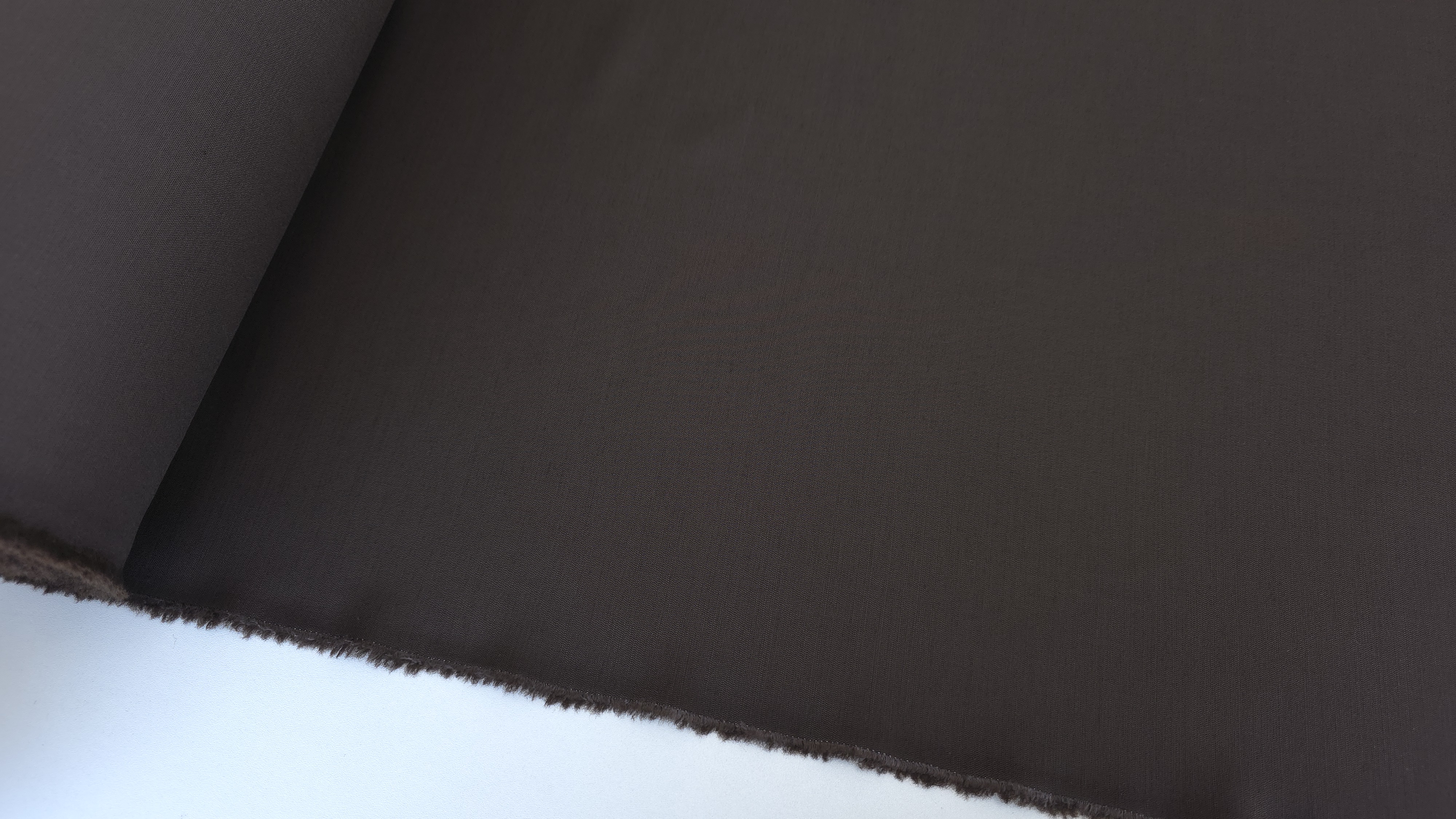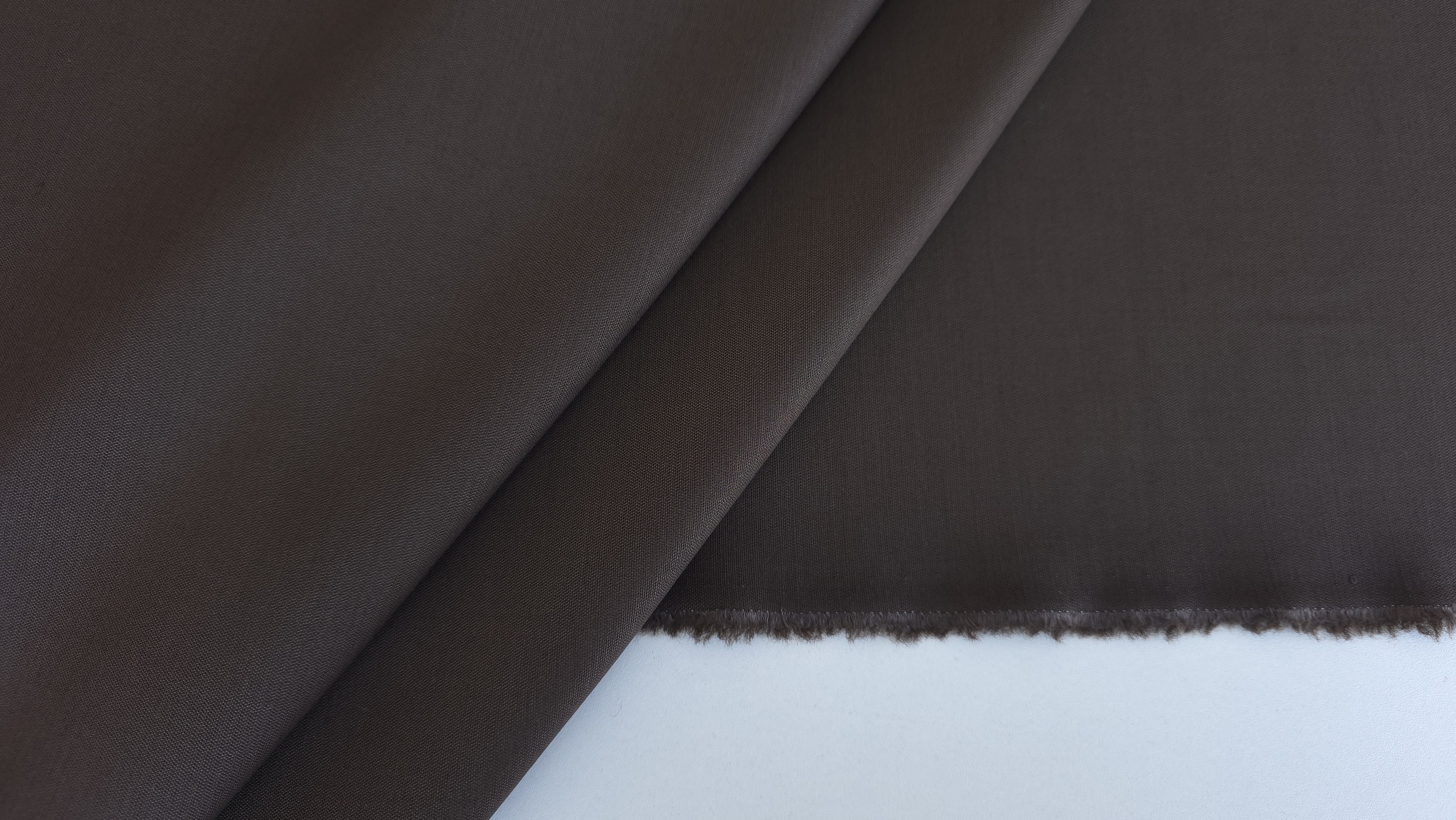 Culoarea maro închis este constantă și bine definită. Această nuanță este potrivită pentru ținute formale și business. Stofa se diferențiază clar de materialele uzuale prin greutate, construcție și compoziție.