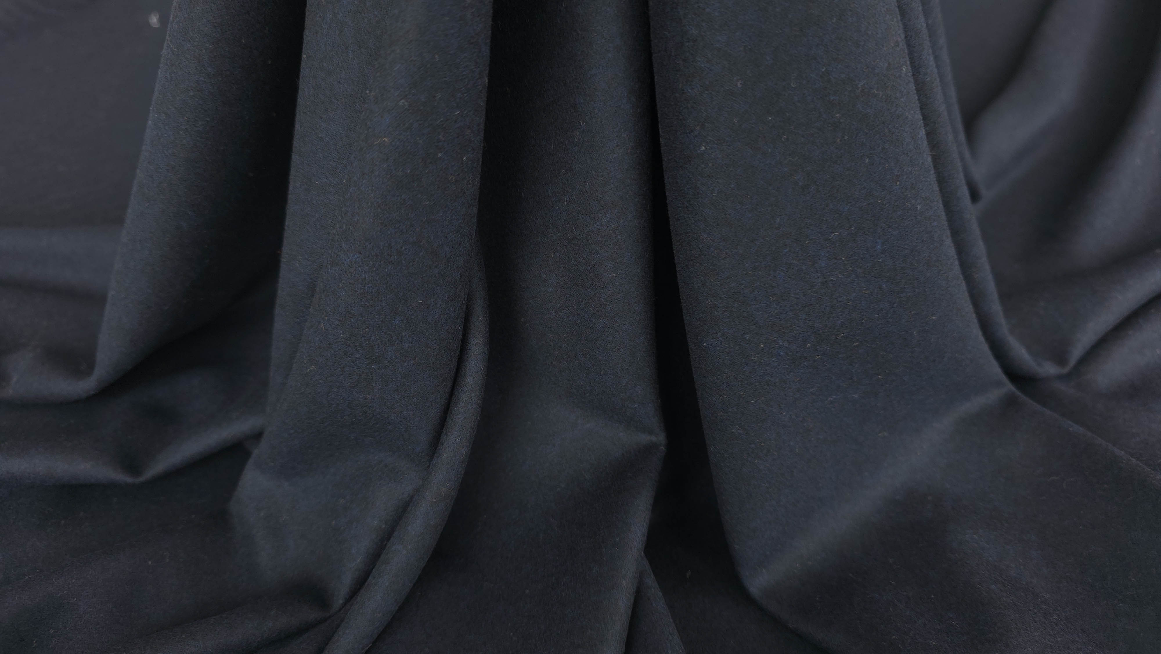 Stofa din lana virgina cu casmir in nuanța Bleumarin Intens, cu o textură fină și plăcută la atingere. Țesătura are densitate medie, cădere naturală și o suprafață mată cu un luciu discret, specific amestecului de lână și cașmir. Lâna virgină asigură rezistență și termoreglare, iar cașmirul adaugă un plus de moliciune și confort. Această combinație creează un material premium, ideal pentru articole vestimentare de înaltă clasă, cu o eleganță sobră și atemporală.