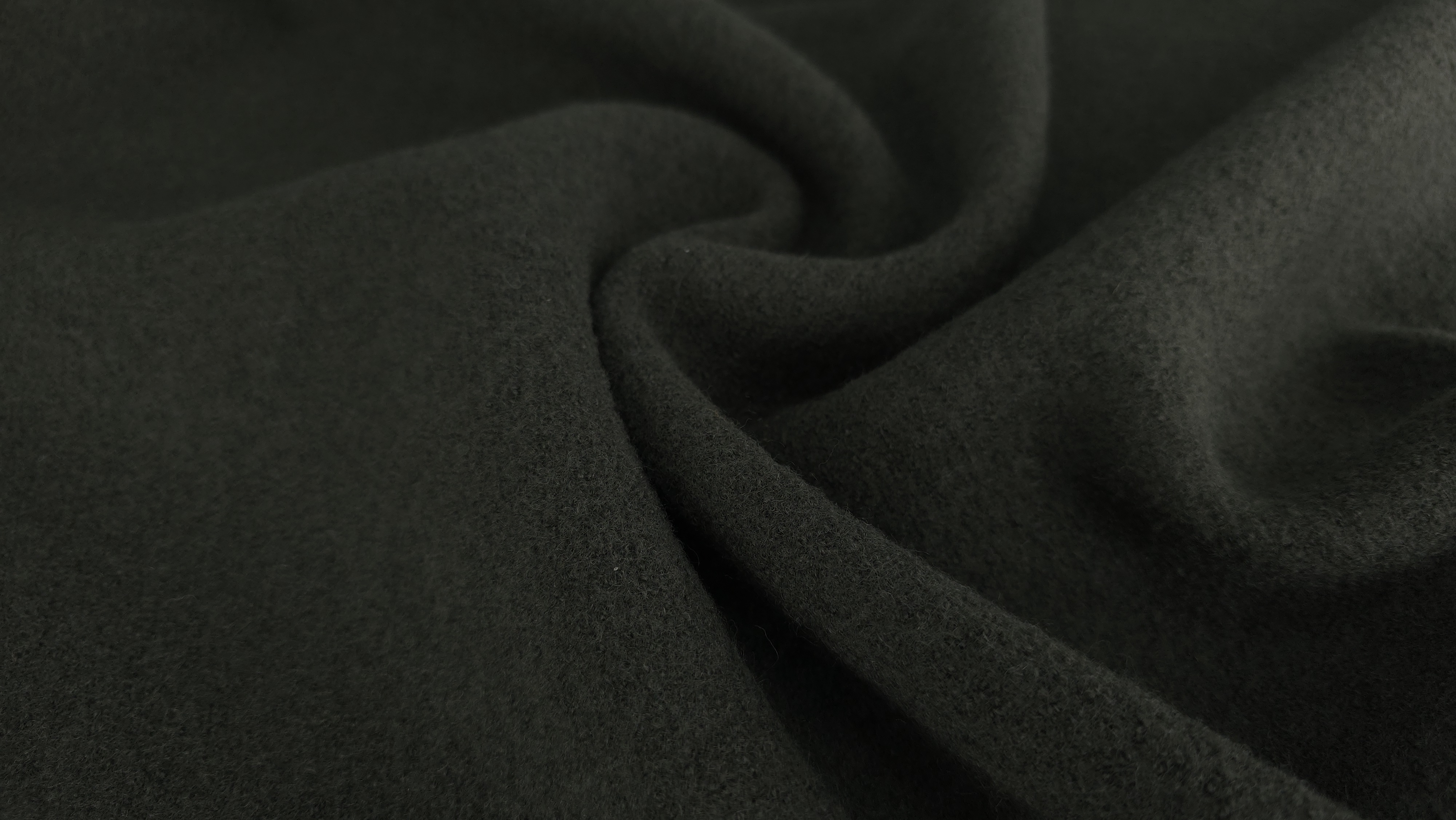 Stofa din lână virgină fiartă cod 891D este un material premium, cu aspect compact și foarte dens, potrivit pentru piese groase și călduroase. Tehnica de fierbere a lânii creează o structură stabilă, închisă și rezistentă, cu o textură ușor buretoasă și o senzație termoizolantă excelentă. Materialul oferă confort ridicat și protecție eficientă împotriva frigului.