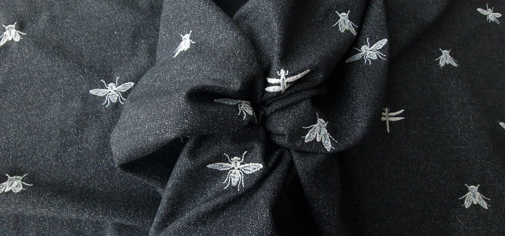 1 recenzie pentru Stofa neagra din lana brodata model Dragonflies