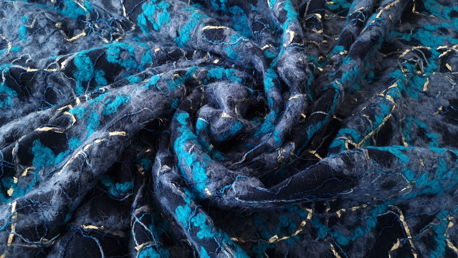 Caracteristici Stofa groasa impletita cu lana si insertii fir metalizat: