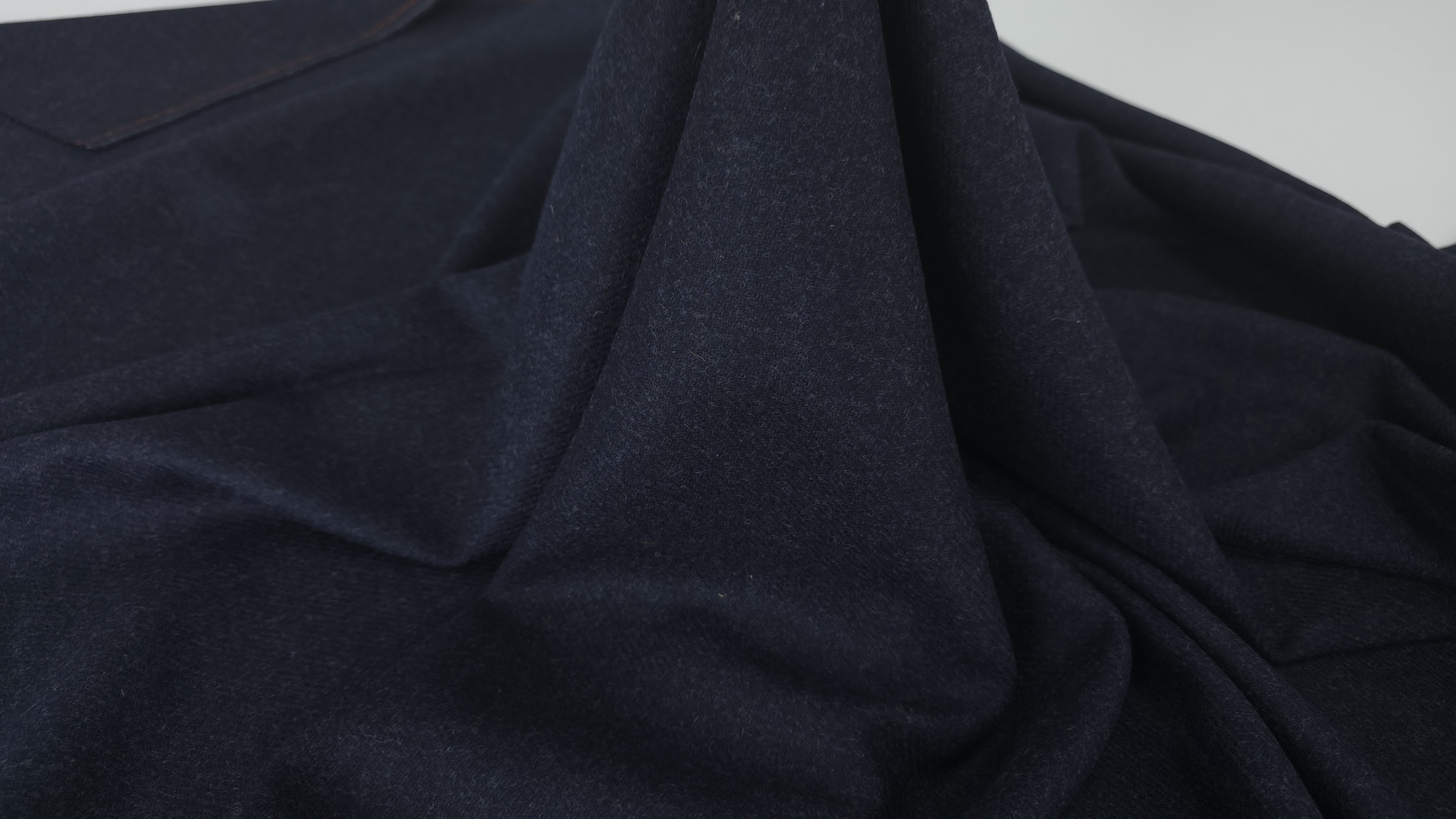 Stofa medie bleumarin din lână, realizată integral din fibre naturale, destinată confecțiilor vestimentare care necesită stabilitate, coerență și comportament tehnic constant.