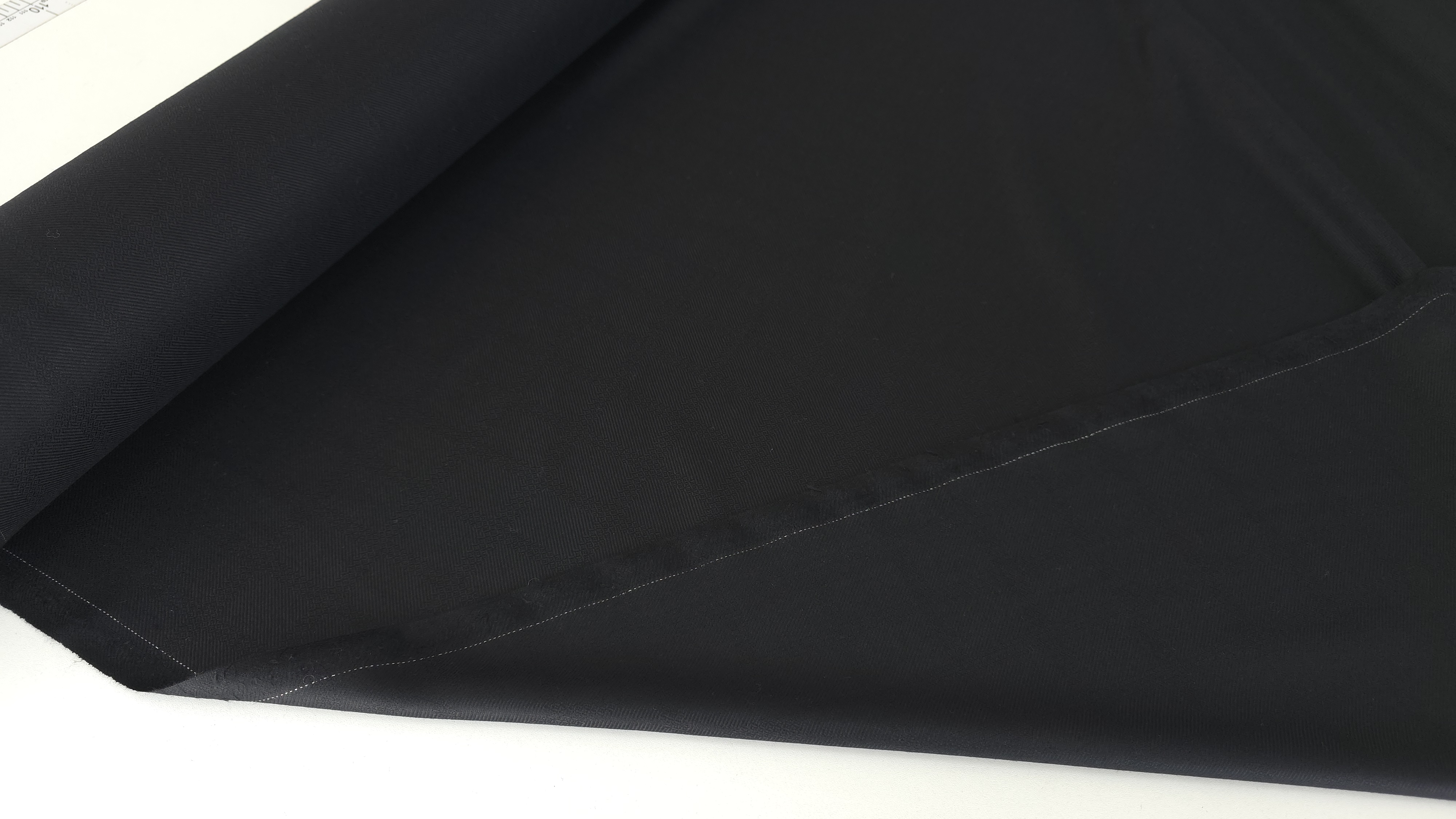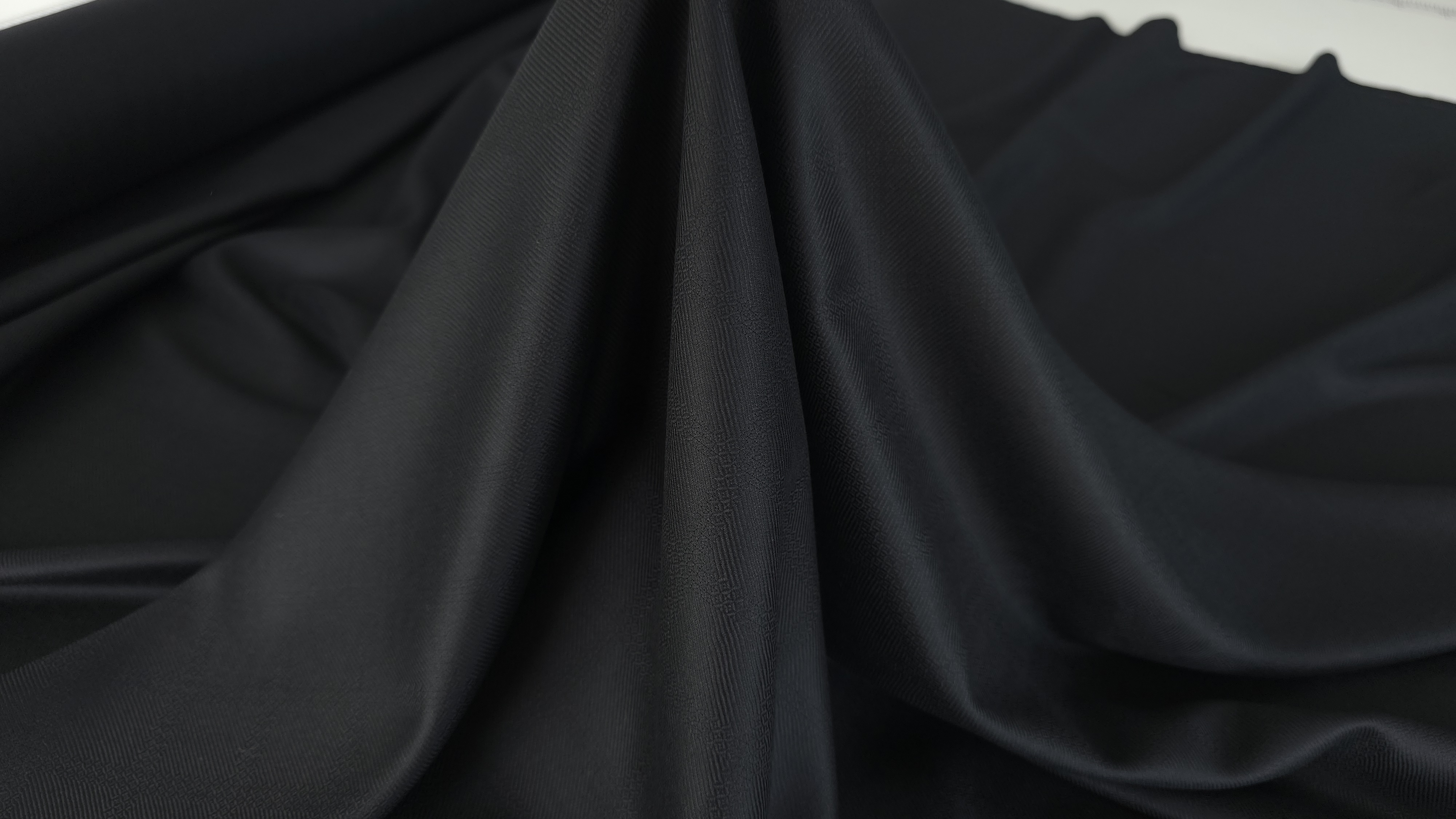 Stofă neagră subțire din cașmir 100%, cu textură fină și elegantă, ideală pentru costume premium, sacouri ușoare sau piese rafinate de sezon. Material moale, catifelat și extrem de fluid, perfect pentru croiuri impecabile.