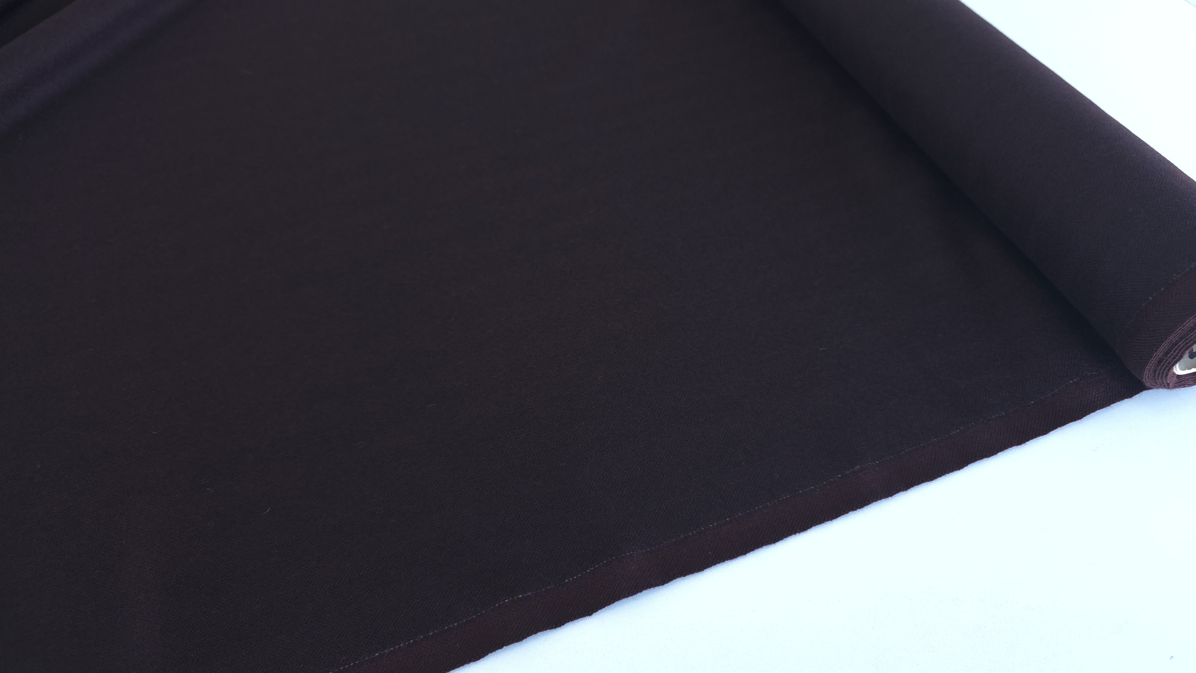 Nuanța burgundy este intensă, profundă și sofisticată, potrivită pentru garderobe elegante și croieli moderne. Materialul are o textură compactă care oferă confort termic ridicat, fiind ideal pentru paltoane, mantouri și sacouri de iarnă. Firele naturale creează o structură foarte stabilă, dar în același timp flexibilă. Stofa permite cusături fine și linii curate, specifice produselor de lux.