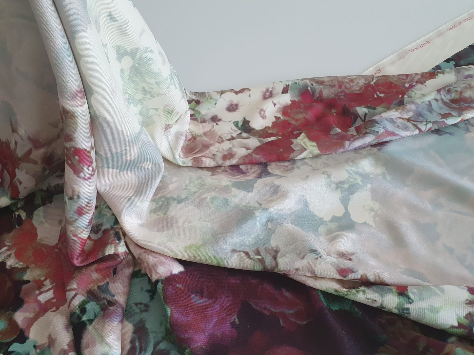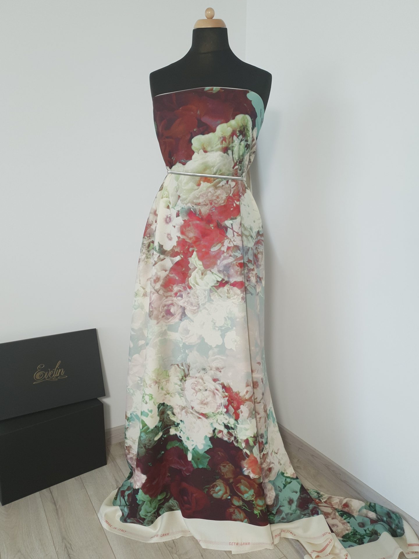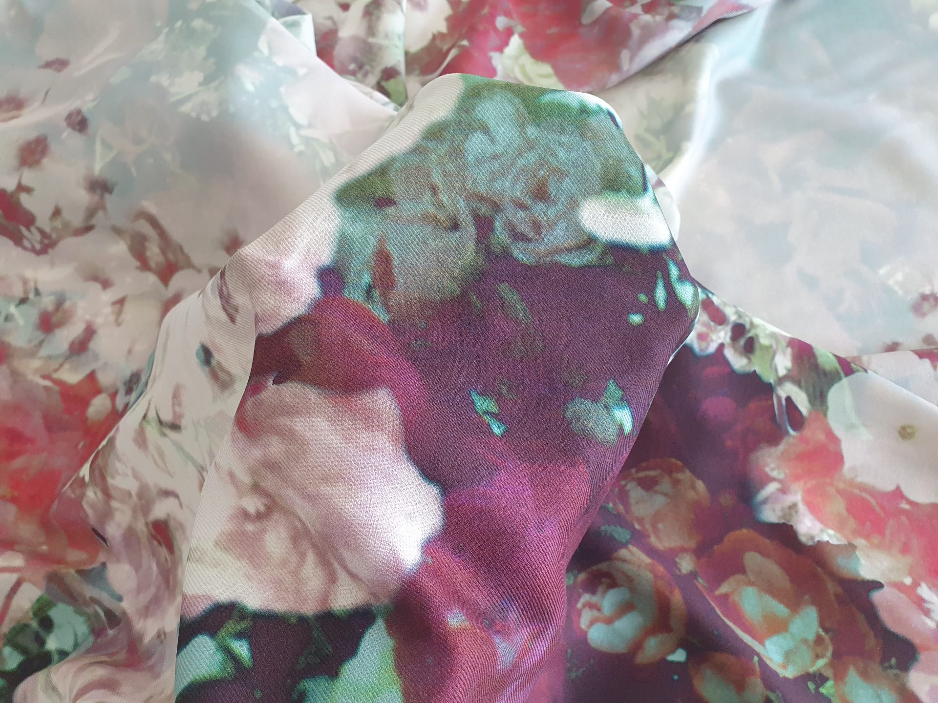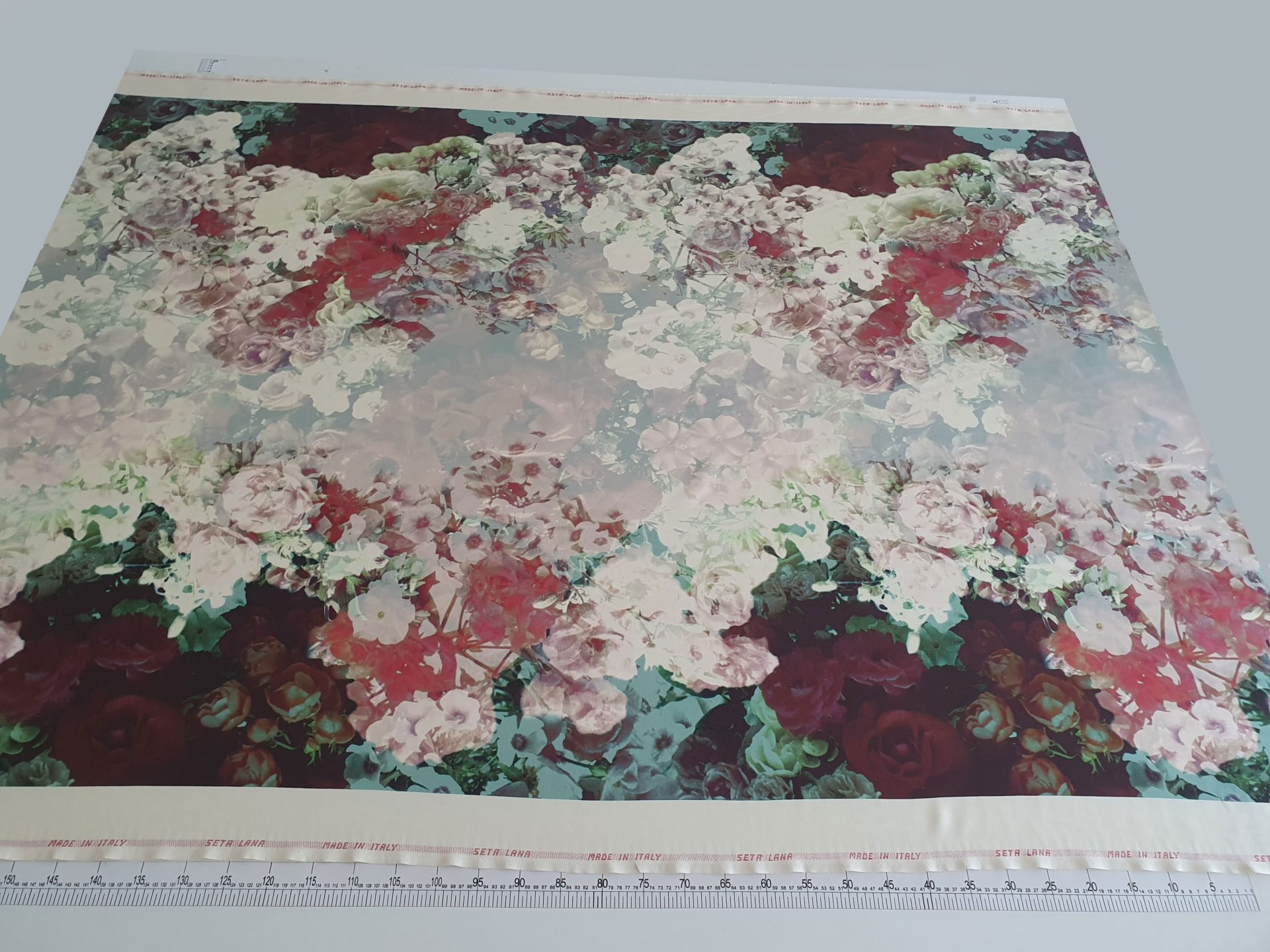 Stofita imprimata din matase naturala si lana AM03, cu model floral multicolor.