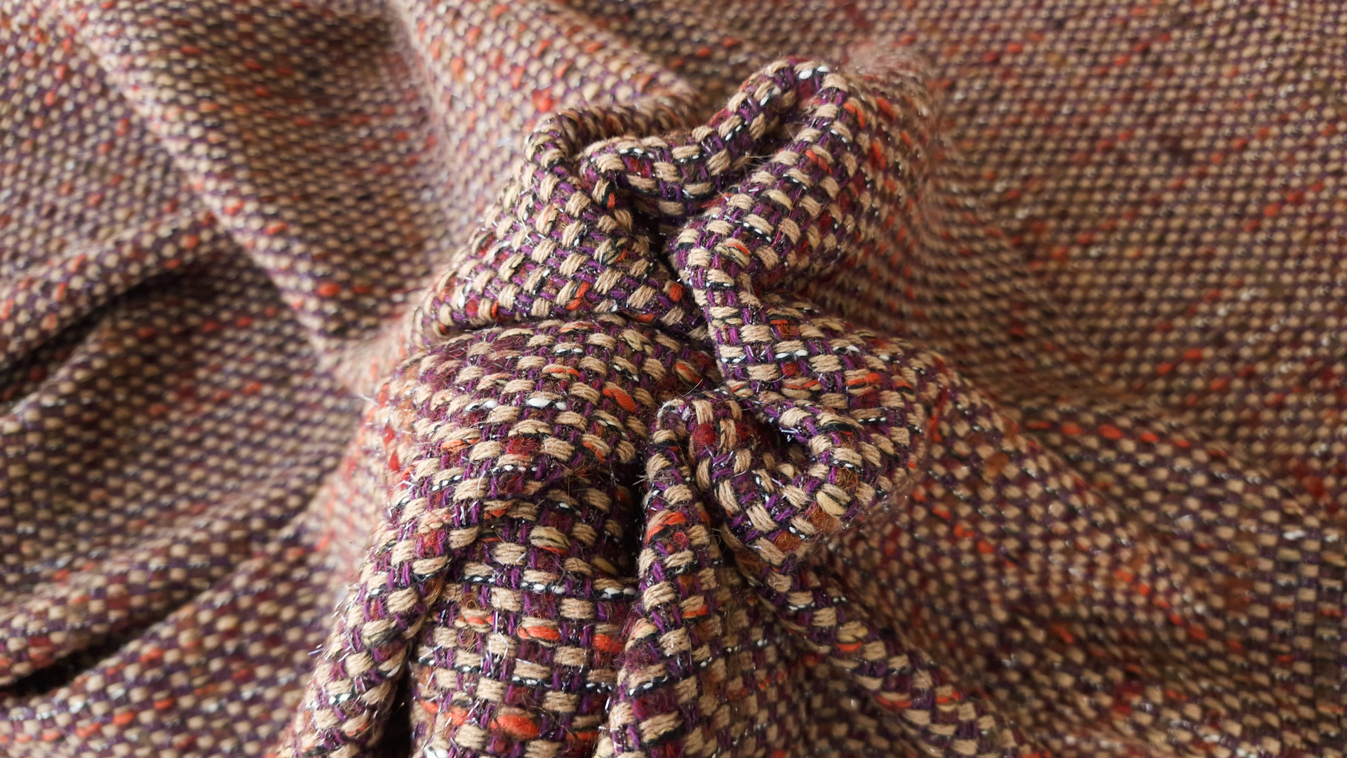 Stofa groasa impletita din lana si fir metalizat, foarte placuta la atingere, pentru jachete tip chanel.