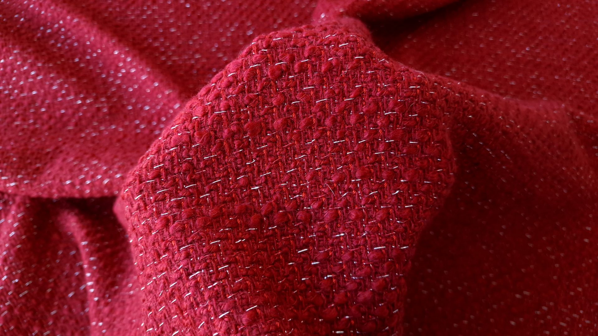 1 recenzie pentru Stofa impletita grena din lana si bumbac cu fir metalizat