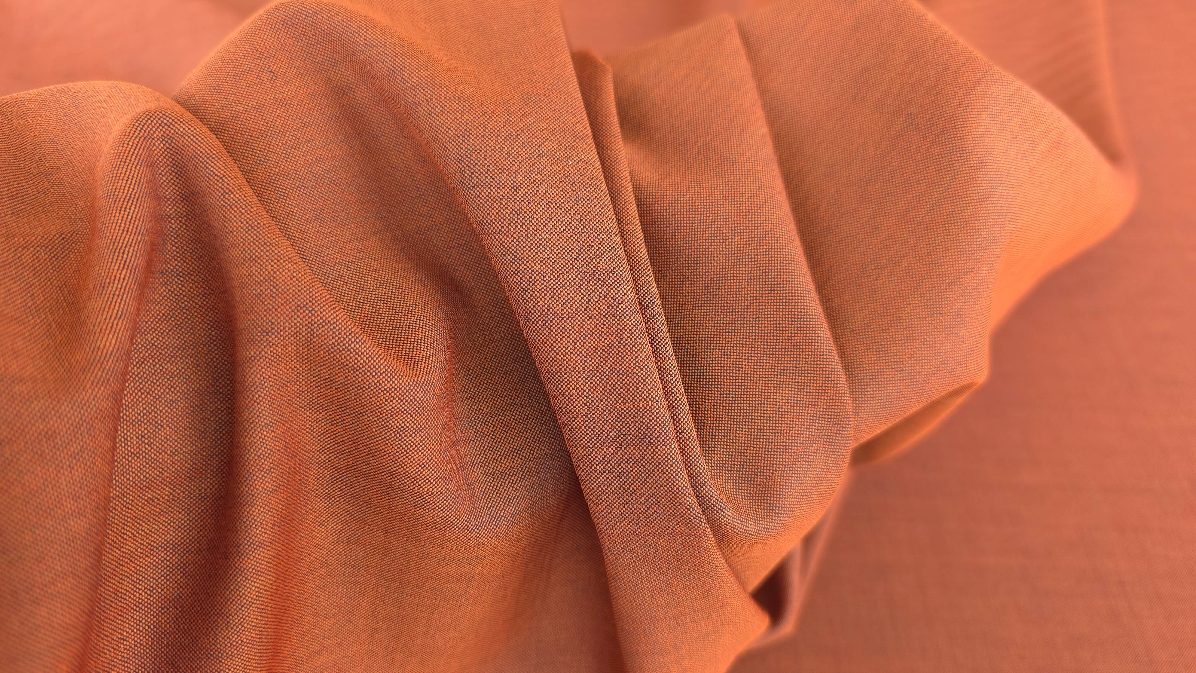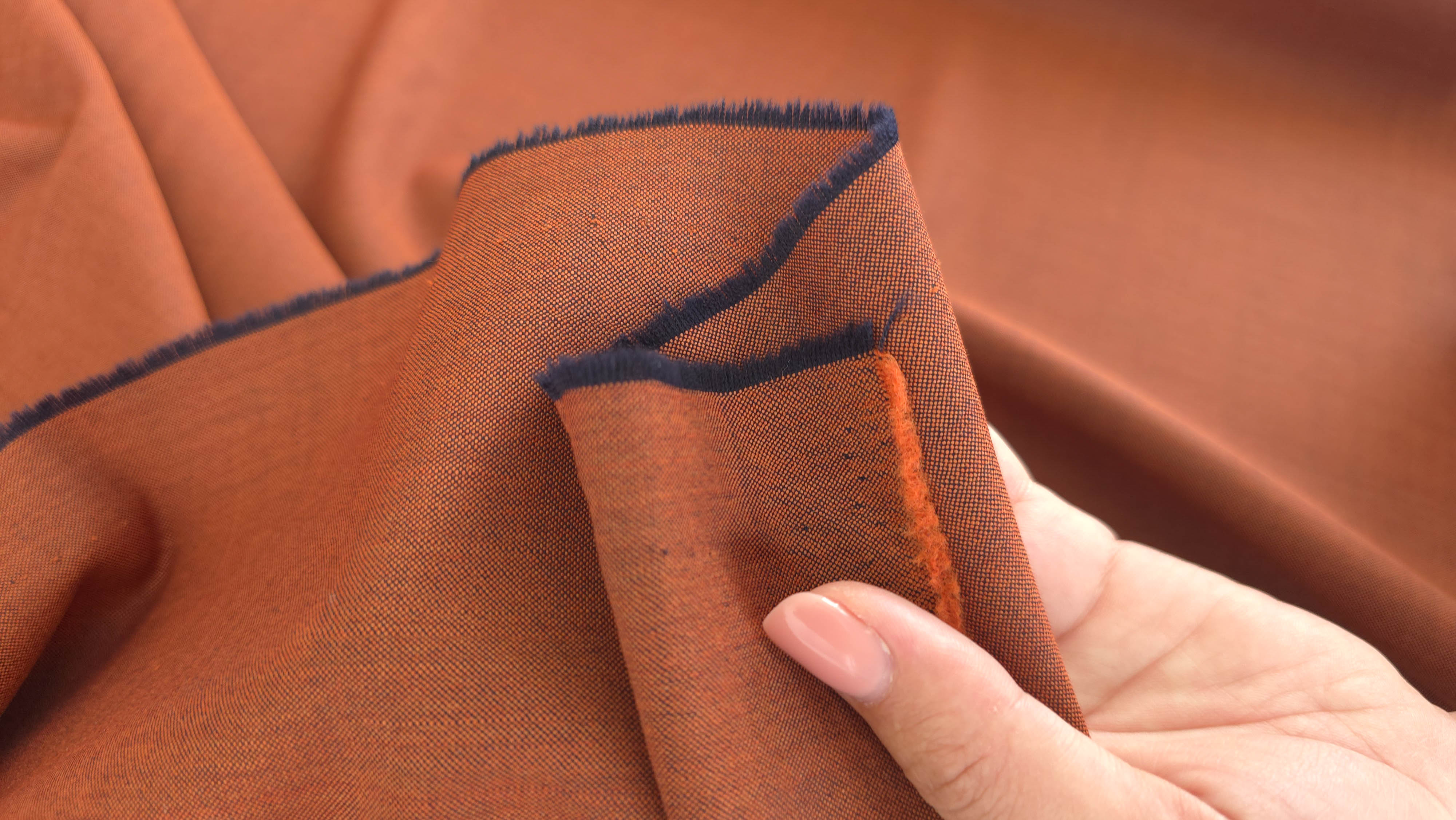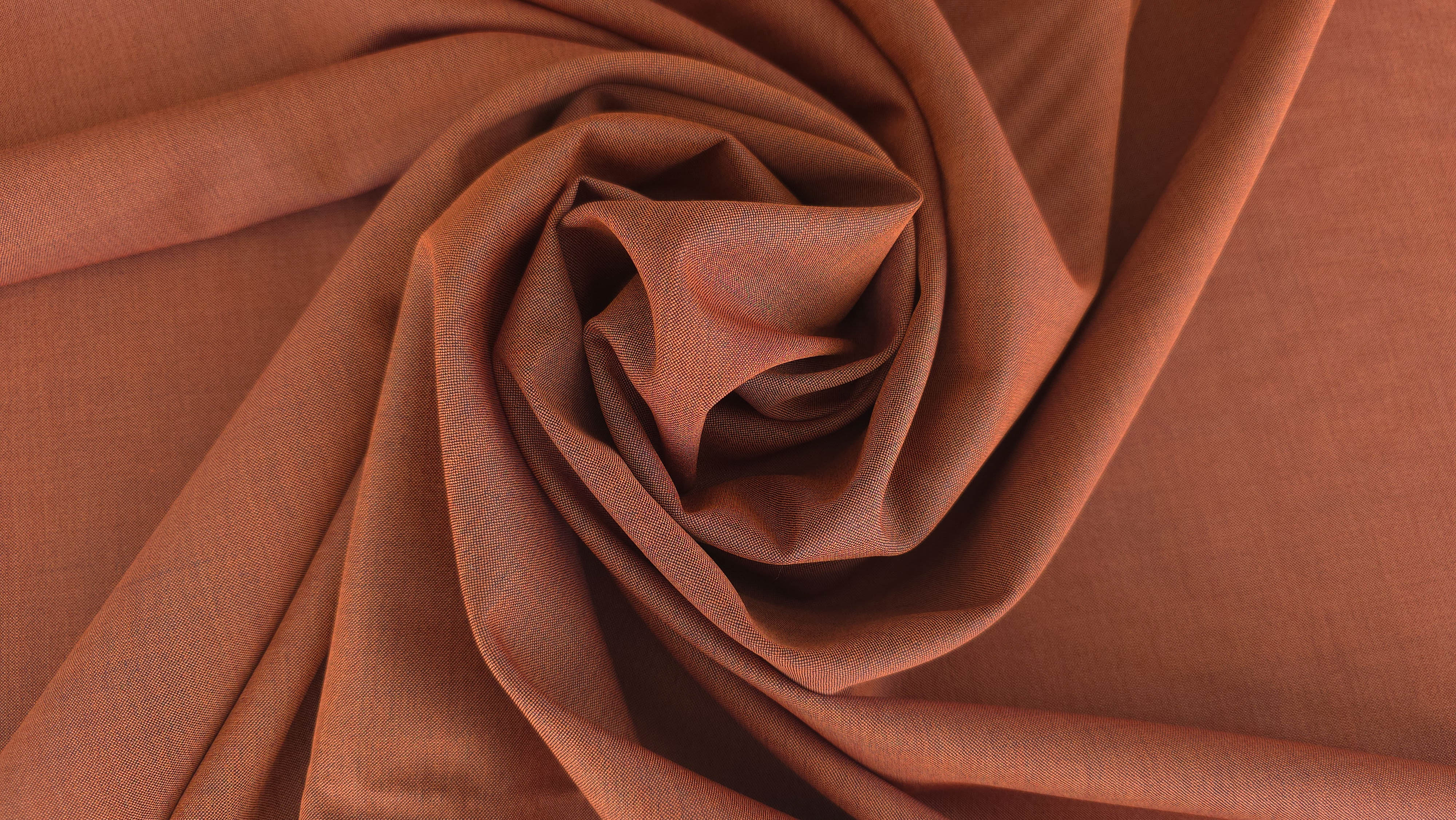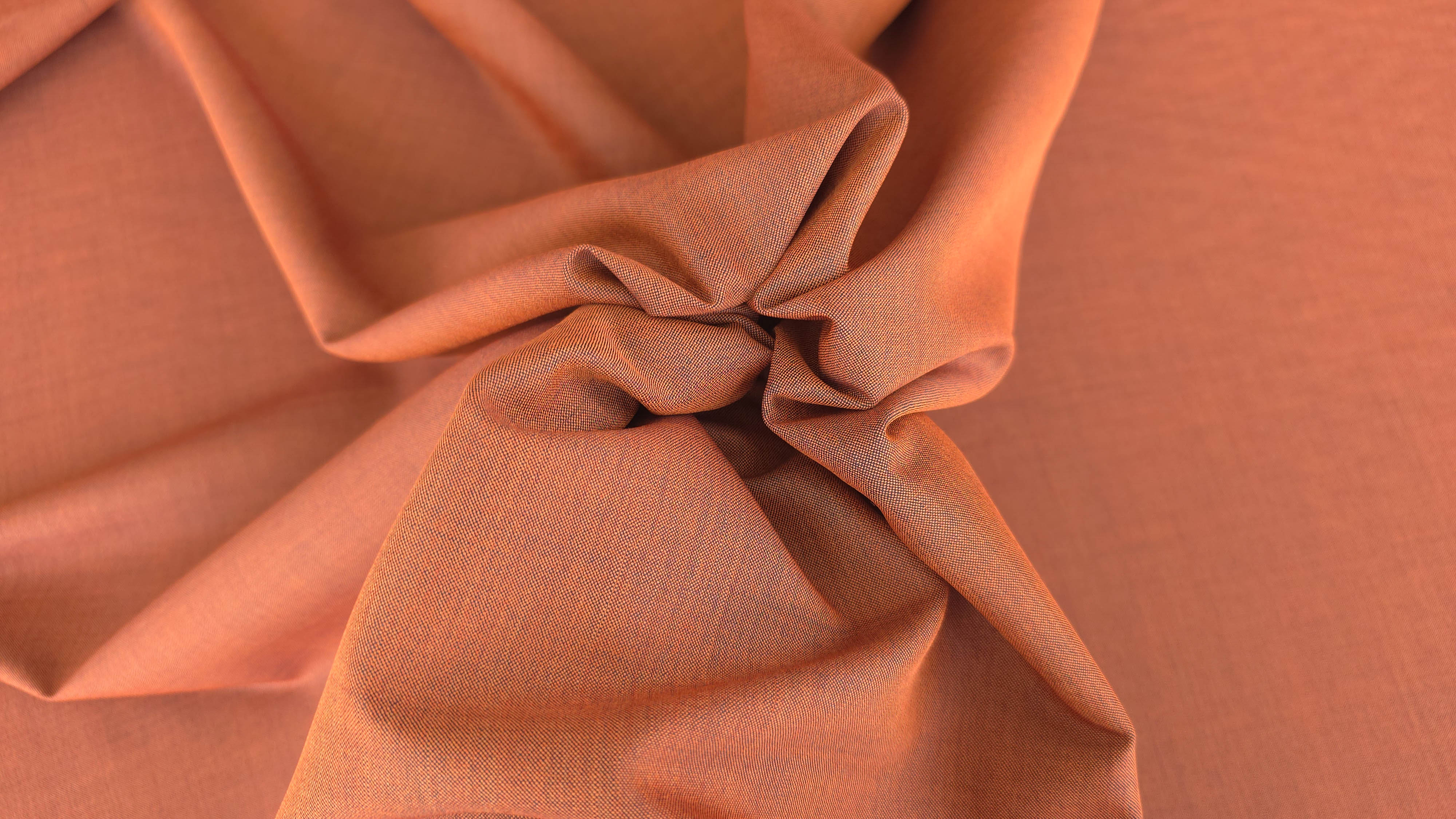 Culoarea clay brown se încadrează într-o gamă de teracotă caldă, cu subton brun-portocaliu, oferind profunzime cromatică și versatilitate. Accentele vizibile pe margine, în bleumarin închis, evidențiază caracterul textilului și confirmă finisajul atent al materialului.